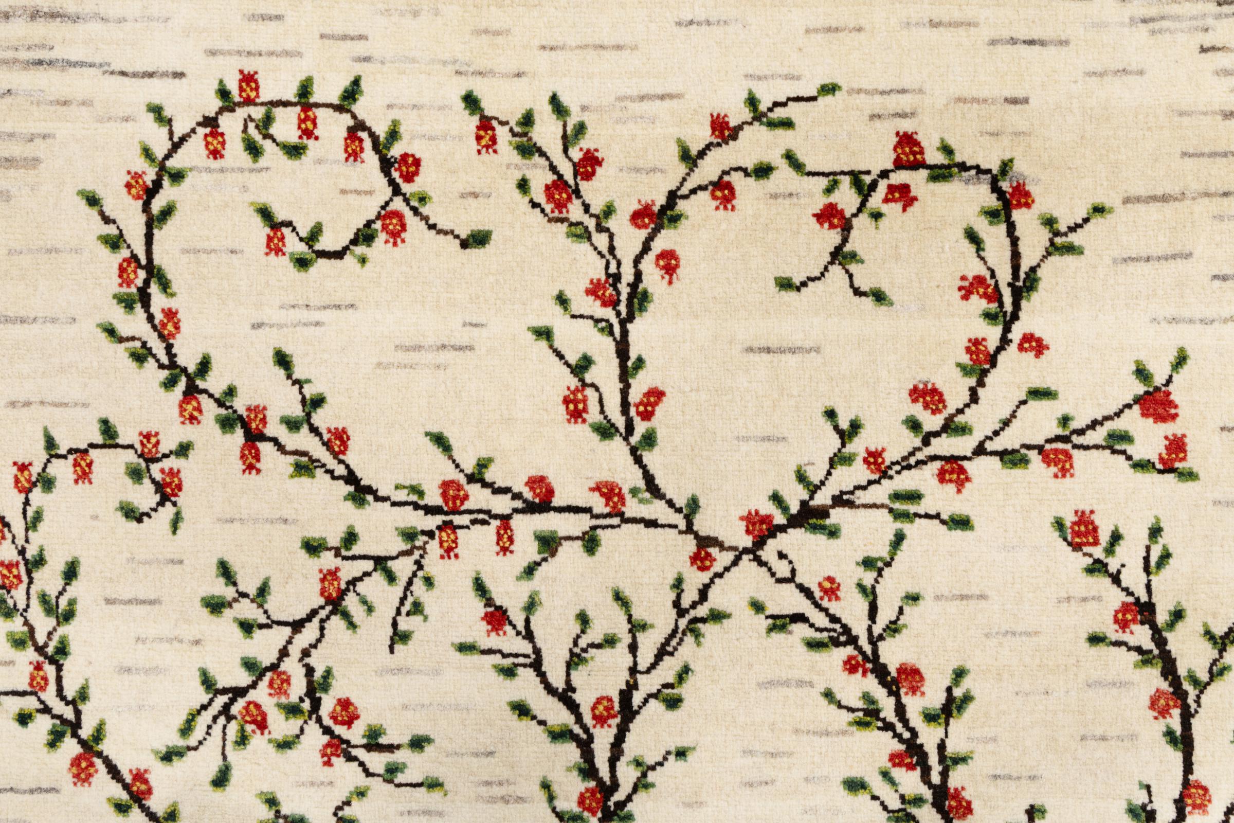Un refinamiento de las ya conocidas alfombras Gabbeh: Esta es esta persa Gabbeh Loribaft. Con su anudado más fino y su hermoso diseño, sabe cómo impresionar. Loren lo anudó a mano en el sur de Persia con la mejor lana de oveja hilada a mano. Solo se utilizan tintes vegetales puros para teñir la lana. Con esta alfombra obtienes el estándar más alto de una alfombra Gabbeh para tu hogar.