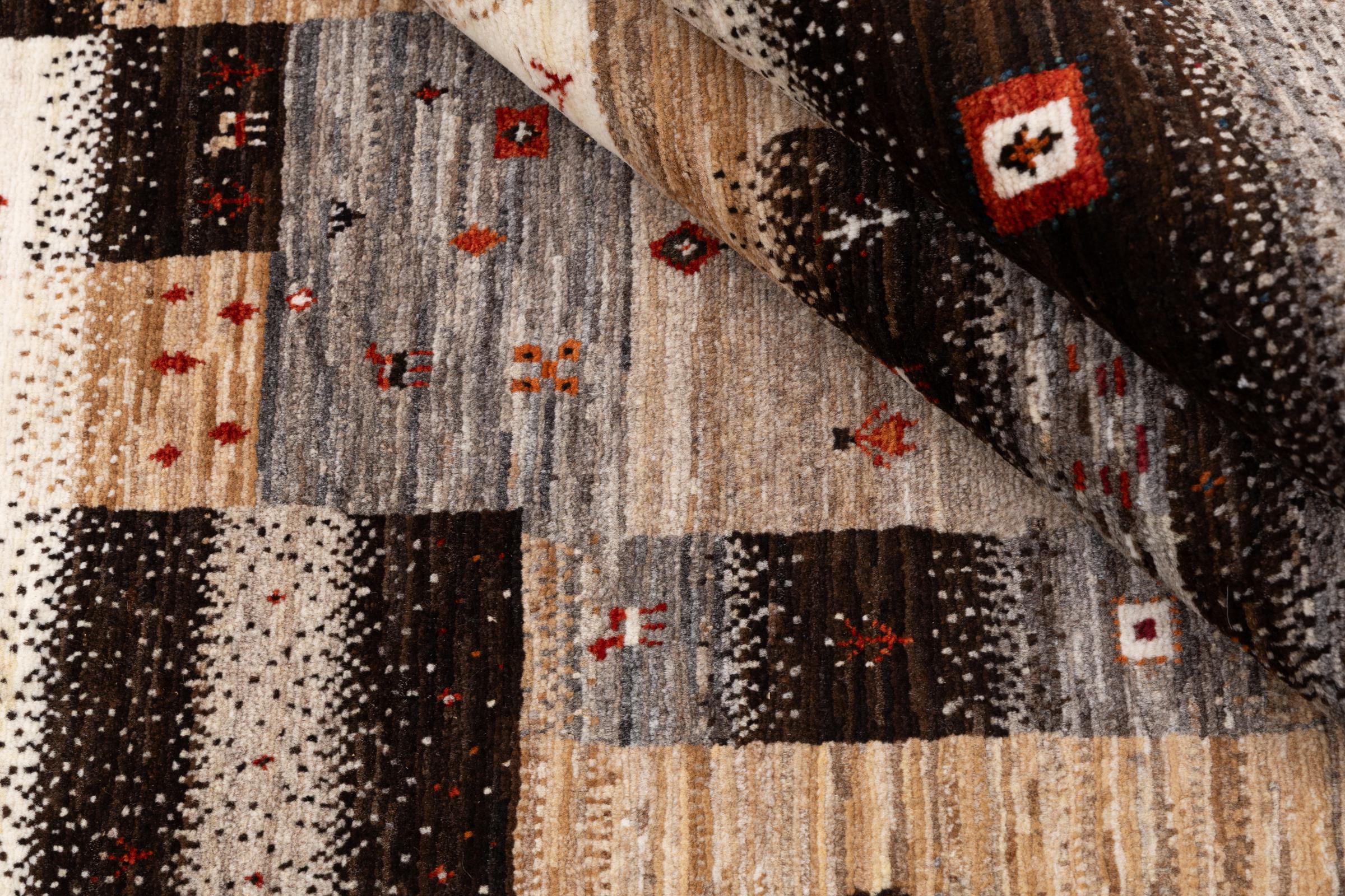 Un refinamiento de las ya conocidas alfombras Gabbeh: Esta es esta persa Gabbeh Loribaft. Con su anudado más fino y su hermoso diseño, sabe cómo impresionar. Loren lo anudó a mano en el sur de Persia con la mejor lana de oveja hilada a mano. Solo se utilizan tintes vegetales puros para teñir la lana. Con esta alfombra obtienes el estándar más alto de una alfombra Gabbeh para tu hogar.
