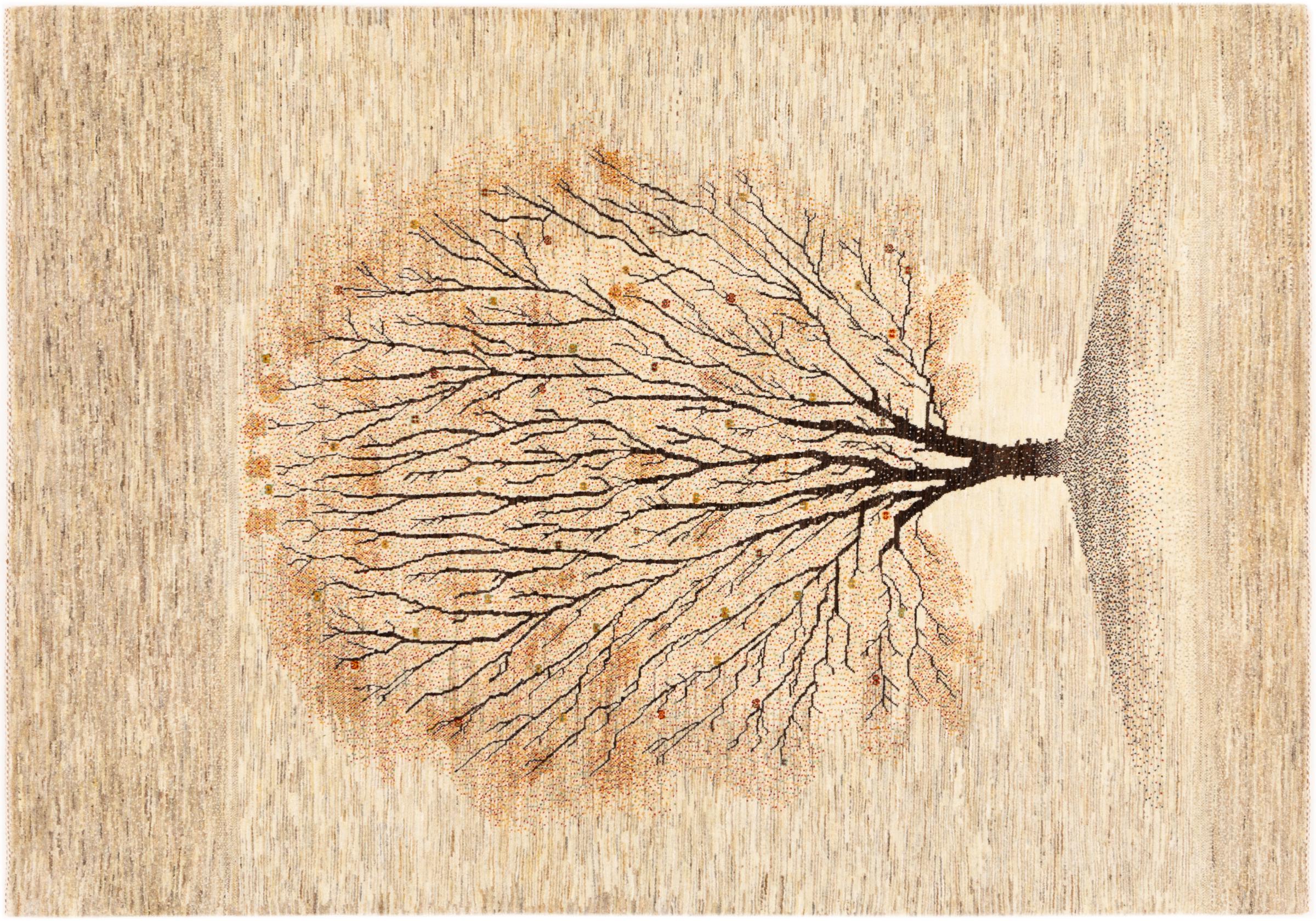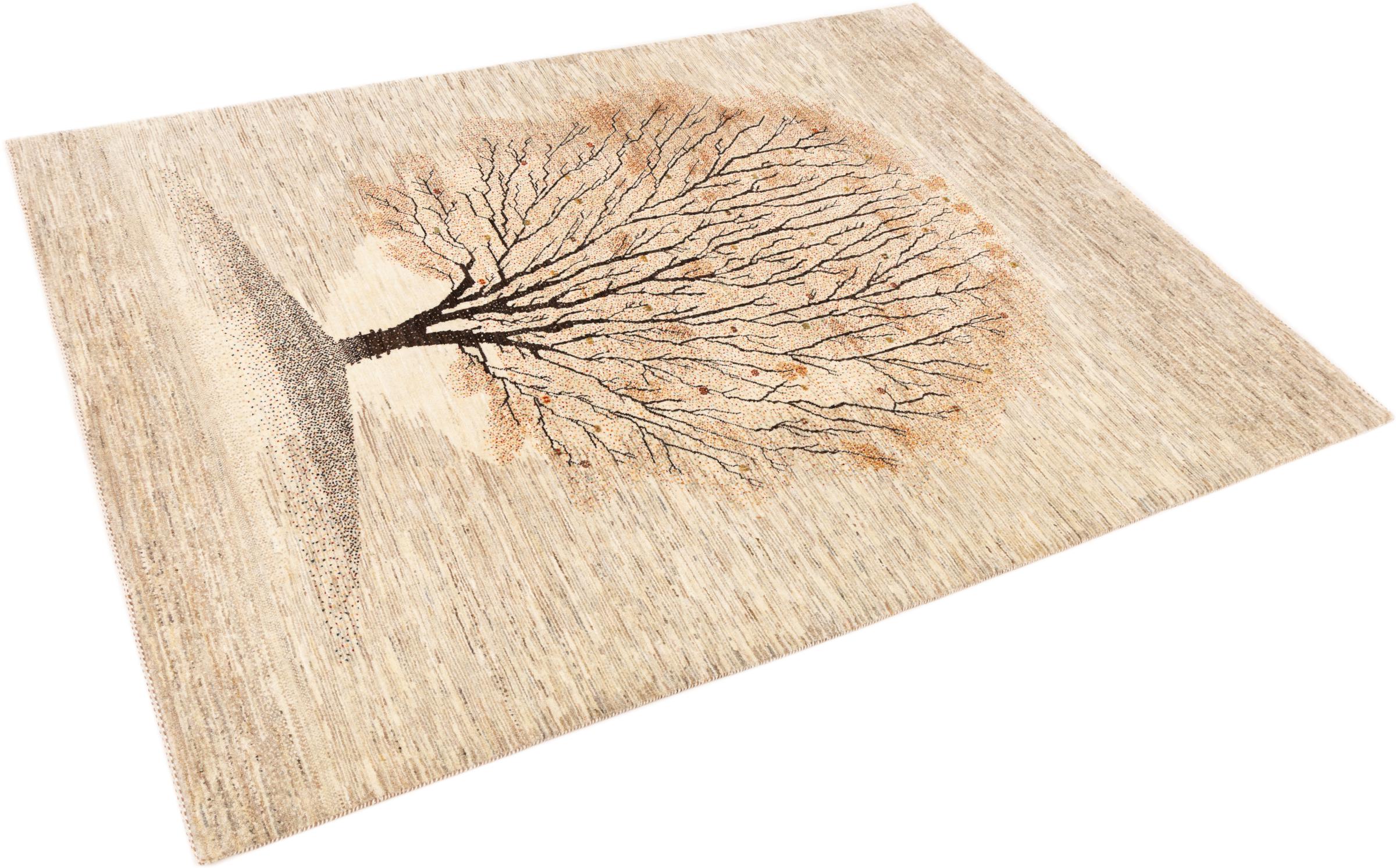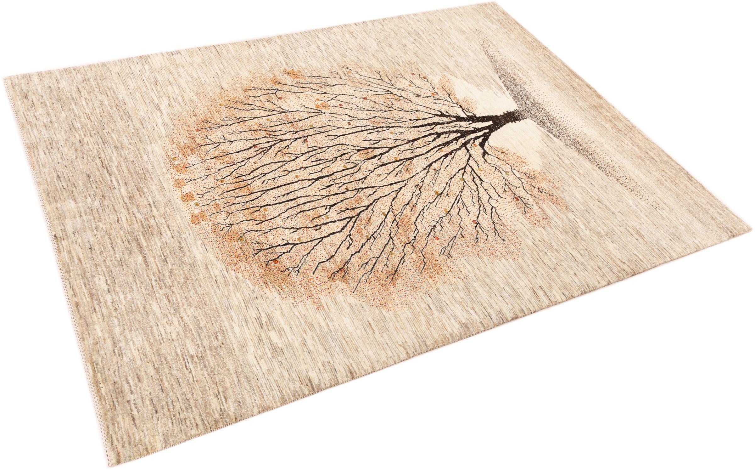 Esta hermosa alfombra es una Gabbeh persa y por lo tanto pertenece a las alfombras Gabbeh de mayor calidad. Las alfombras son anudadas por nómadas o seminómadas en Irán según la artesanía tradicional. Los motivos y patrones simples están inspirados en su mayoría por el entorno inmediato de los nómadas. Por ejemplo, los camellos, árboles o arbustos se pueden encontrar en las alfombras tradicionales. Las alfombras gabbeh persas están hechas de lana de rebaños de ovejas criados localmente. Por lo tanto, la lana se sigue hilando a mano. Así, cada una de estas alfombras orientales encarna un carácter único de la cultura de siglos de antigüedad.