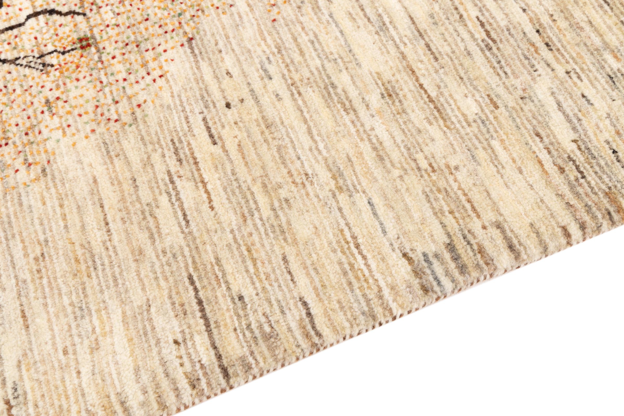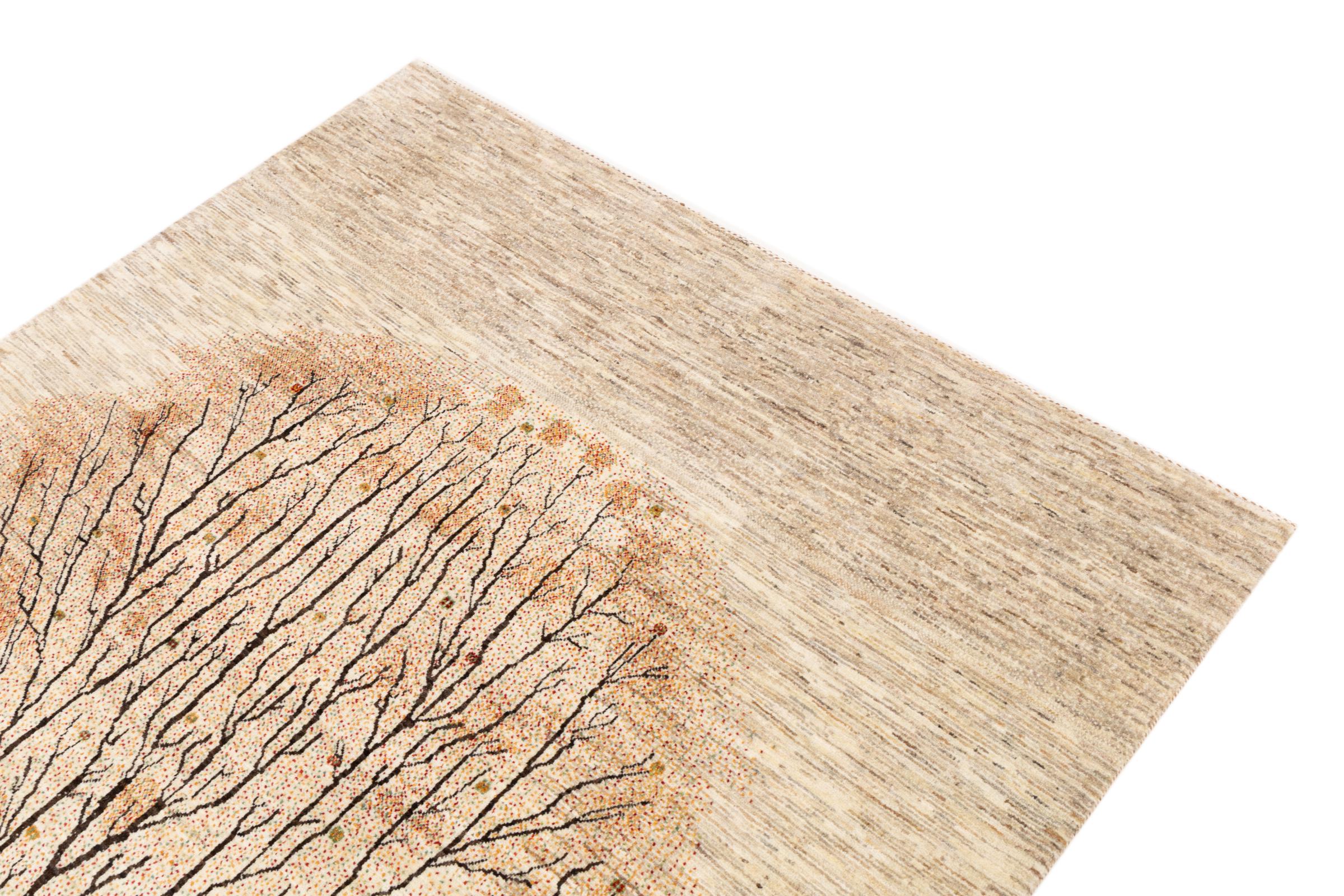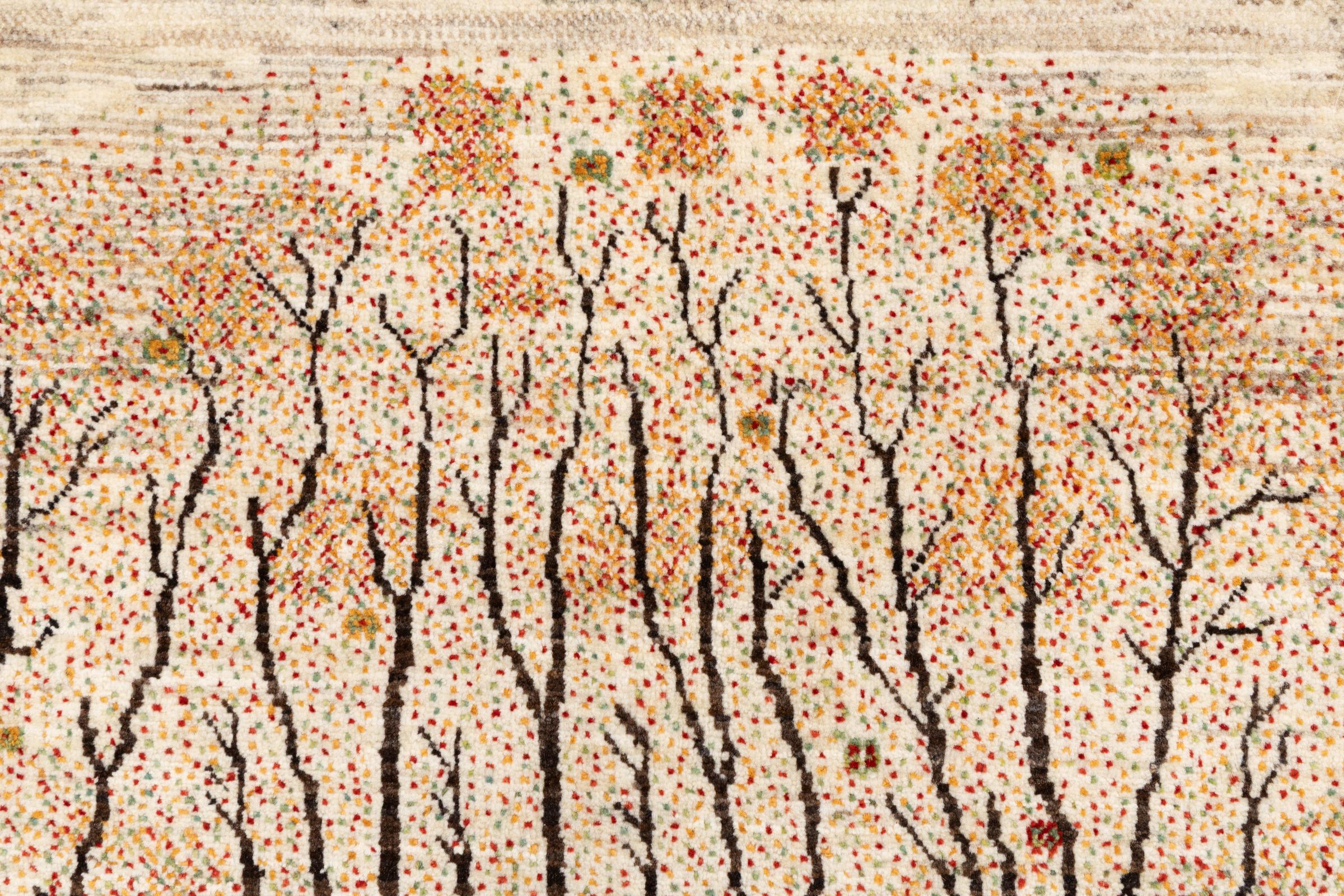 Esta hermosa alfombra es una Gabbeh persa y por lo tanto pertenece a las alfombras Gabbeh de mayor calidad. Las alfombras son anudadas por nómadas o seminómadas en Irán según la artesanía tradicional. Los motivos y patrones simples están inspirados en su mayoría por el entorno inmediato de los nómadas. Por ejemplo, los camellos, árboles o arbustos se pueden encontrar en las alfombras tradicionales. Las alfombras gabbeh persas están hechas de lana de rebaños de ovejas criados localmente. Por lo tanto, la lana se sigue hilando a mano. Así, cada una de estas alfombras orientales encarna un carácter único de la cultura de siglos de antigüedad.