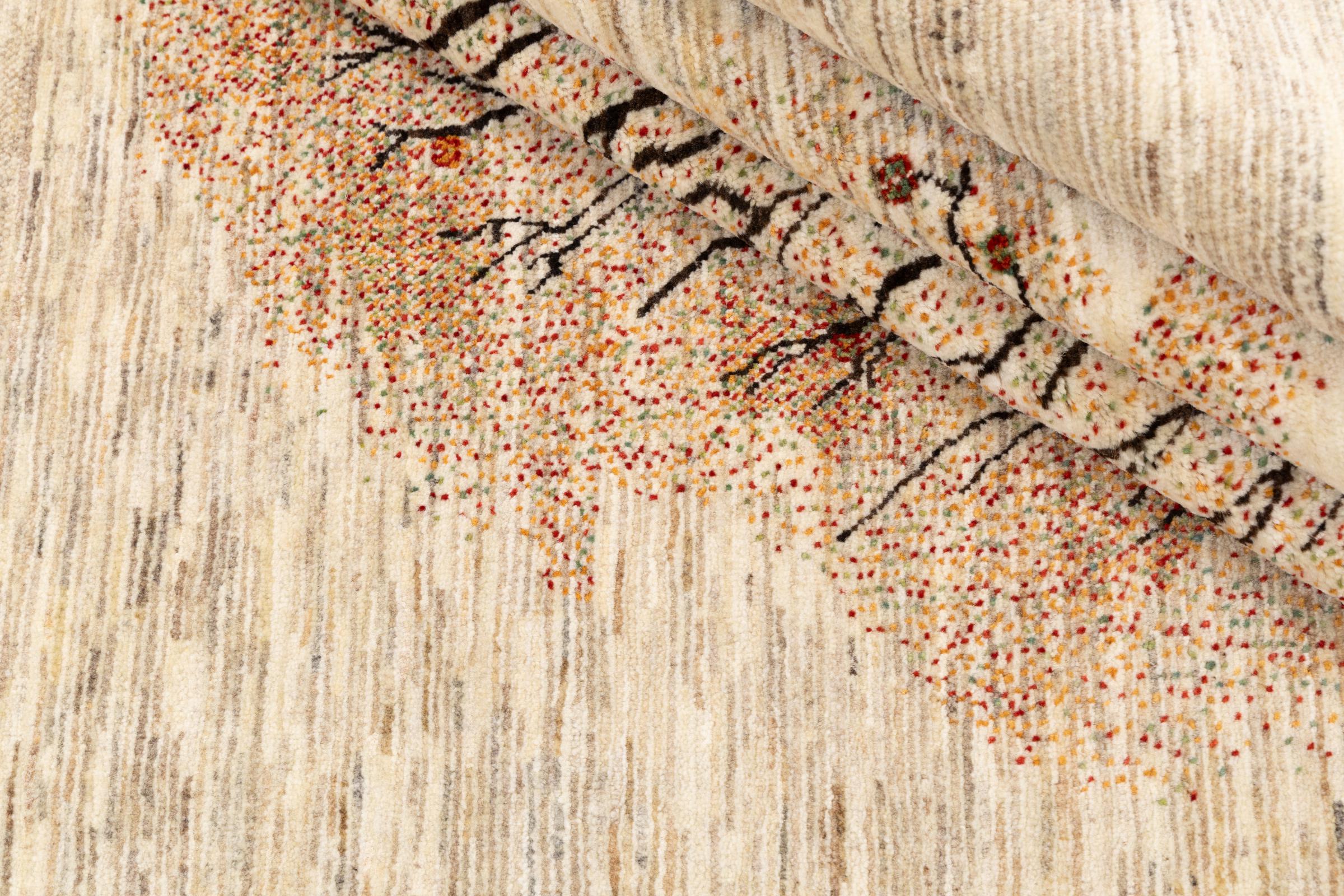 Un refinamiento de las ya conocidas alfombras Gabbeh: Esta es esta persa Gabbeh Loribaft. Con su anudado más fino y su hermoso diseño, sabe cómo impresionar. Loren lo anudó a mano en el sur de Persia con la mejor lana de oveja hilada a mano. Solo se utilizan tintes vegetales puros para teñir la lana. Con esta alfombra obtienes el estándar más alto de una alfombra Gabbeh para tu hogar.