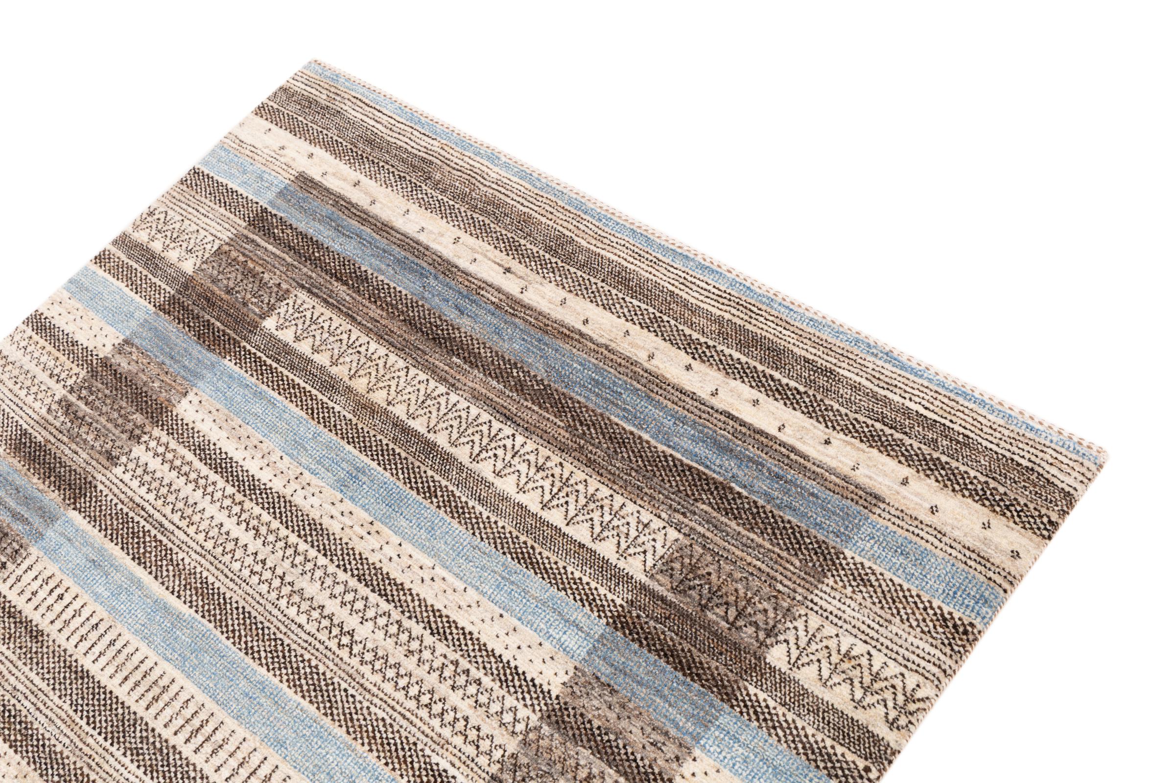 Un refinamiento de las ya conocidas alfombras Gabbeh: Esta es esta persa Gabbeh Loribaft. Con su anudado más fino y su hermoso diseño, sabe cómo impresionar. Loren lo anudó a mano en el sur de Persia con la mejor lana de oveja hilada a mano. Solo se utilizan tintes vegetales puros para teñir la lana. Con esta alfombra obtienes el estándar más alto de una alfombra Gabbeh para tu hogar.