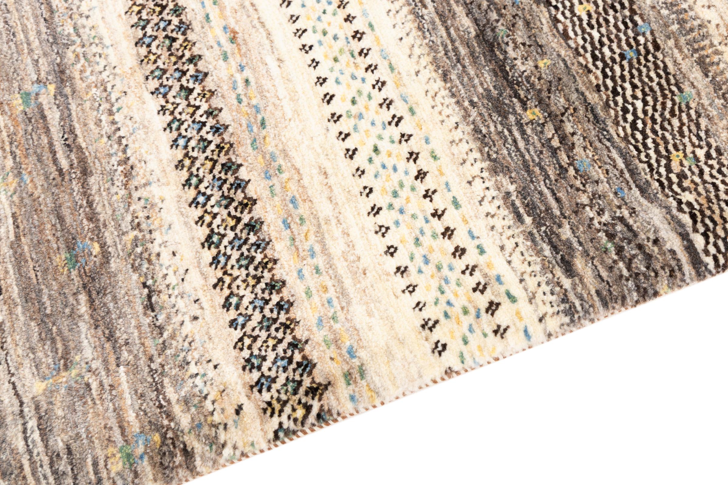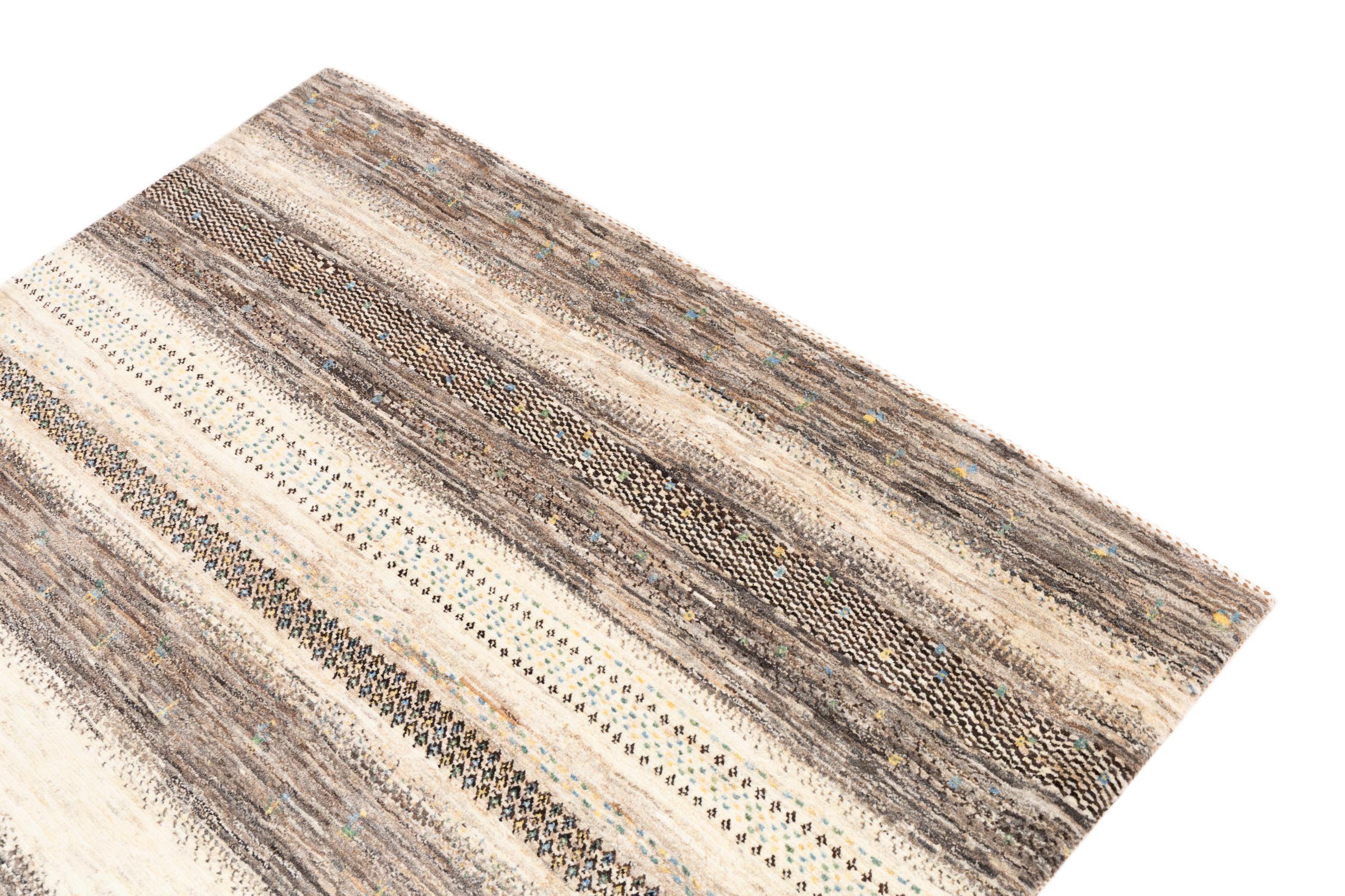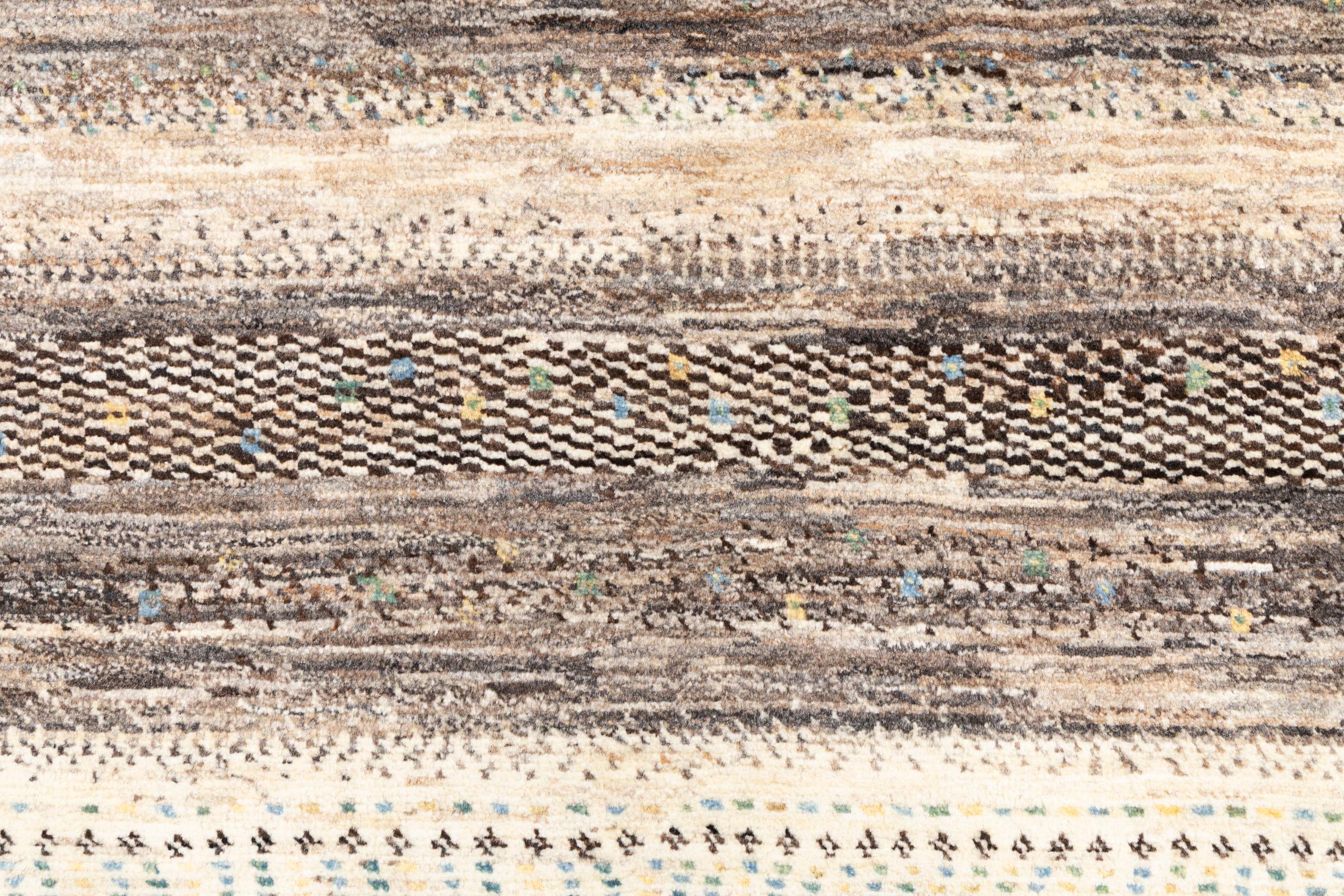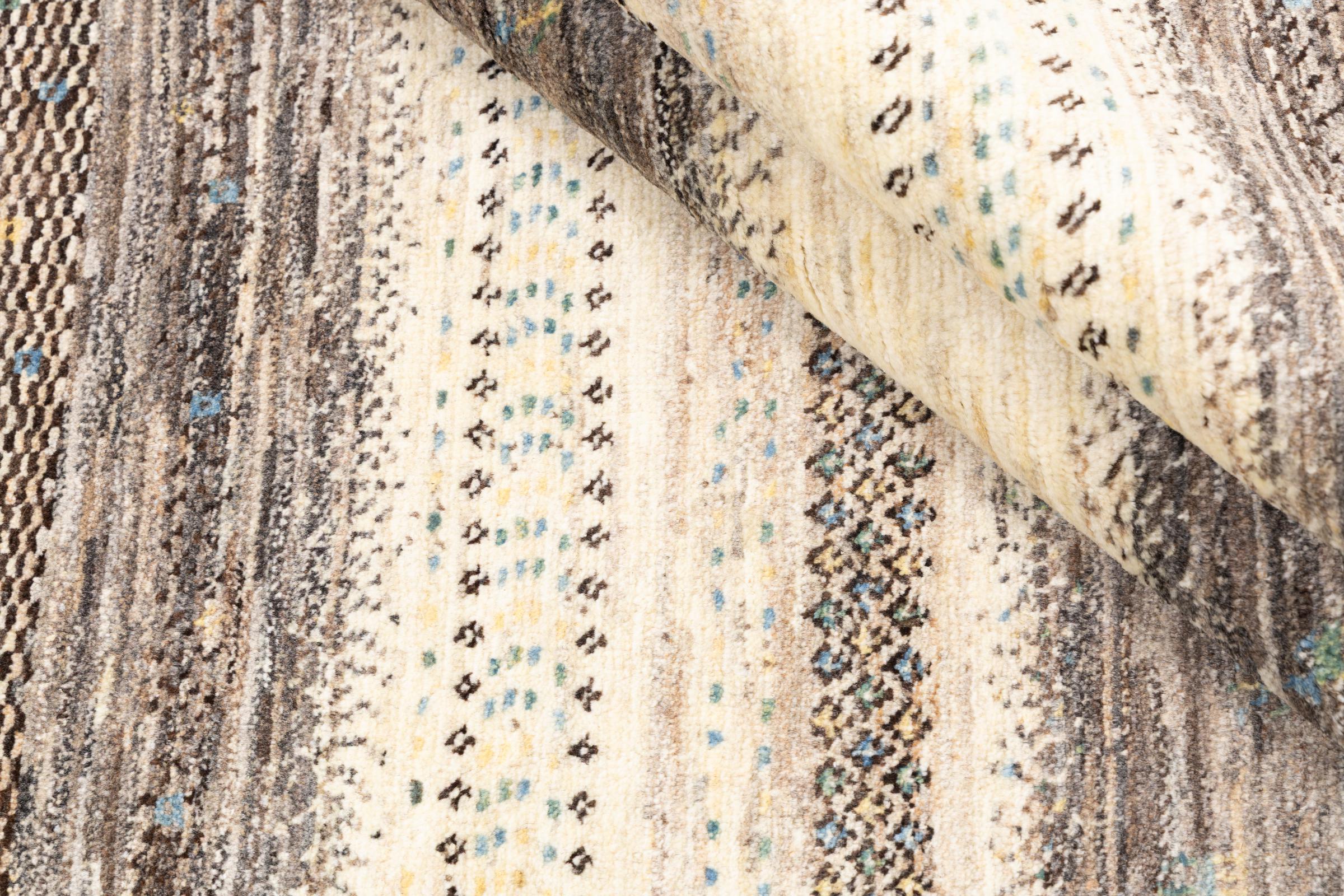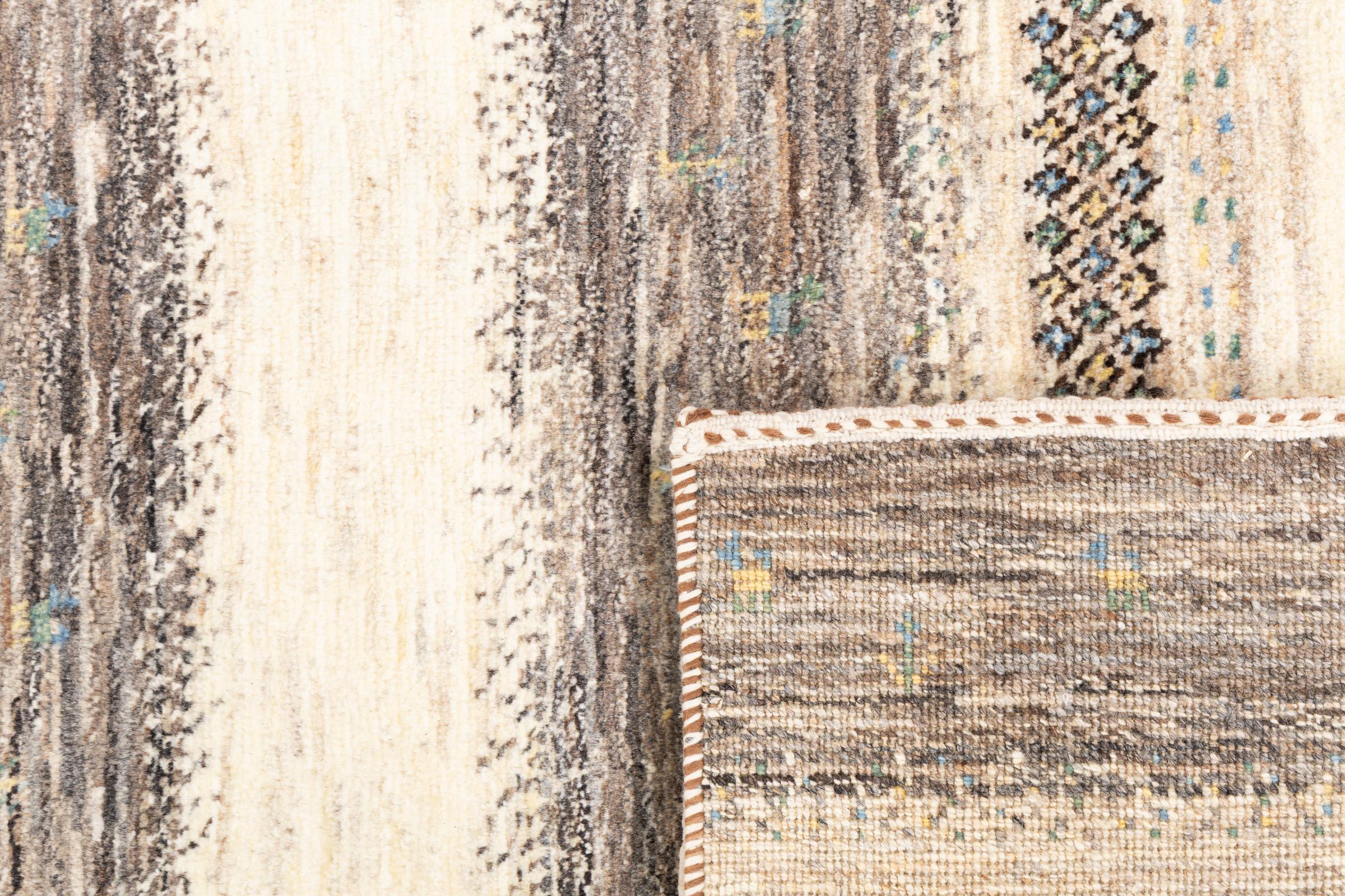 Un refinamiento de las ya conocidas alfombras Gabbeh: Esta es esta persa Gabbeh Loribaft. Con su anudado más fino y su hermoso diseño, sabe cómo impresionar. Loren lo anudó a mano en el sur de Persia con la mejor lana de oveja hilada a mano. Solo se utilizan tintes vegetales puros para teñir la lana. Con esta alfombra obtienes el estándar más alto de una alfombra Gabbeh para tu hogar.