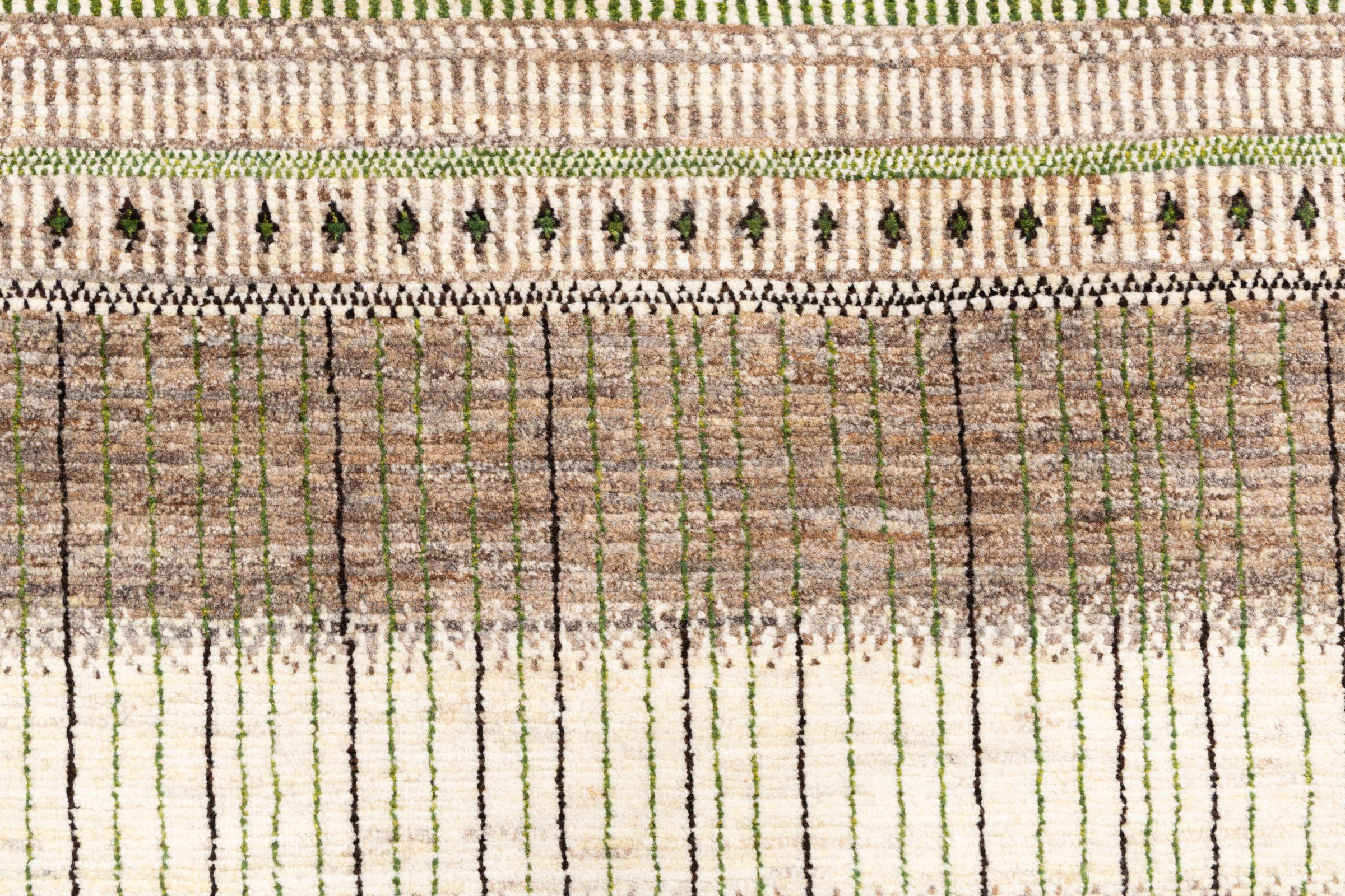 Un refinamiento de las ya conocidas alfombras Gabbeh: Esta es esta persa Gabbeh Loribaft. Con su anudado más fino y su hermoso diseño, sabe cómo impresionar. Loren lo anudó a mano en el sur de Persia con la mejor lana de oveja hilada a mano. Solo se utilizan tintes vegetales puros para teñir la lana. Con esta alfombra obtienes el estándar más alto de una alfombra Gabbeh para tu hogar.