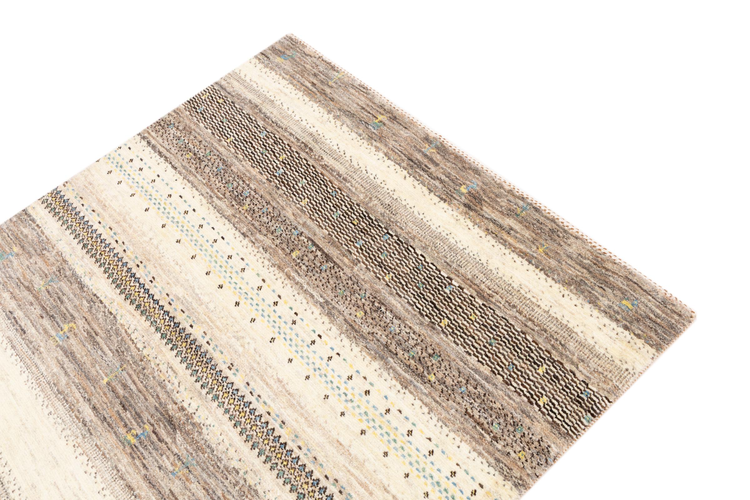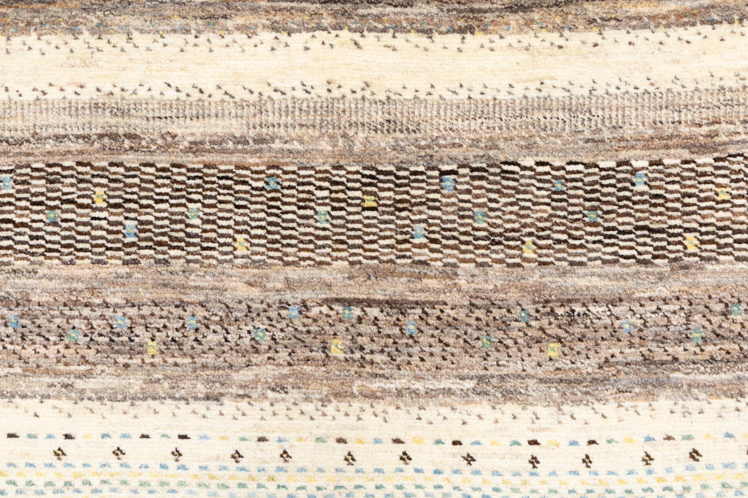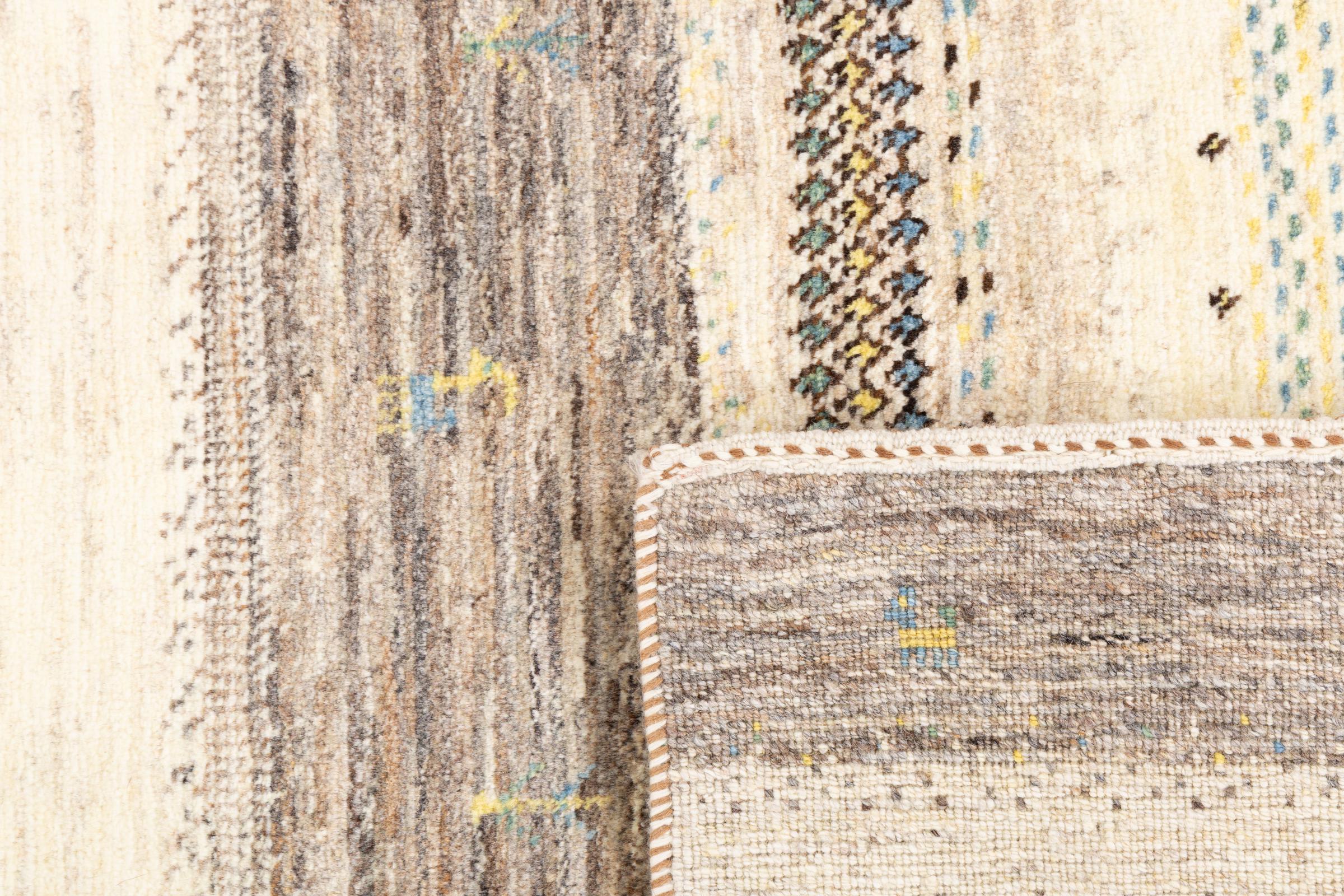 Un refinamiento de las ya conocidas alfombras Gabbeh: Esta es esta persa Gabbeh Loribaft. Con su anudado más fino y su hermoso diseño, sabe cómo impresionar. Loren lo anudó a mano en el sur de Persia con la mejor lana de oveja hilada a mano. Solo se utilizan tintes vegetales puros para teñir la lana. Con esta alfombra obtienes el estándar más alto de una alfombra Gabbeh para tu hogar.