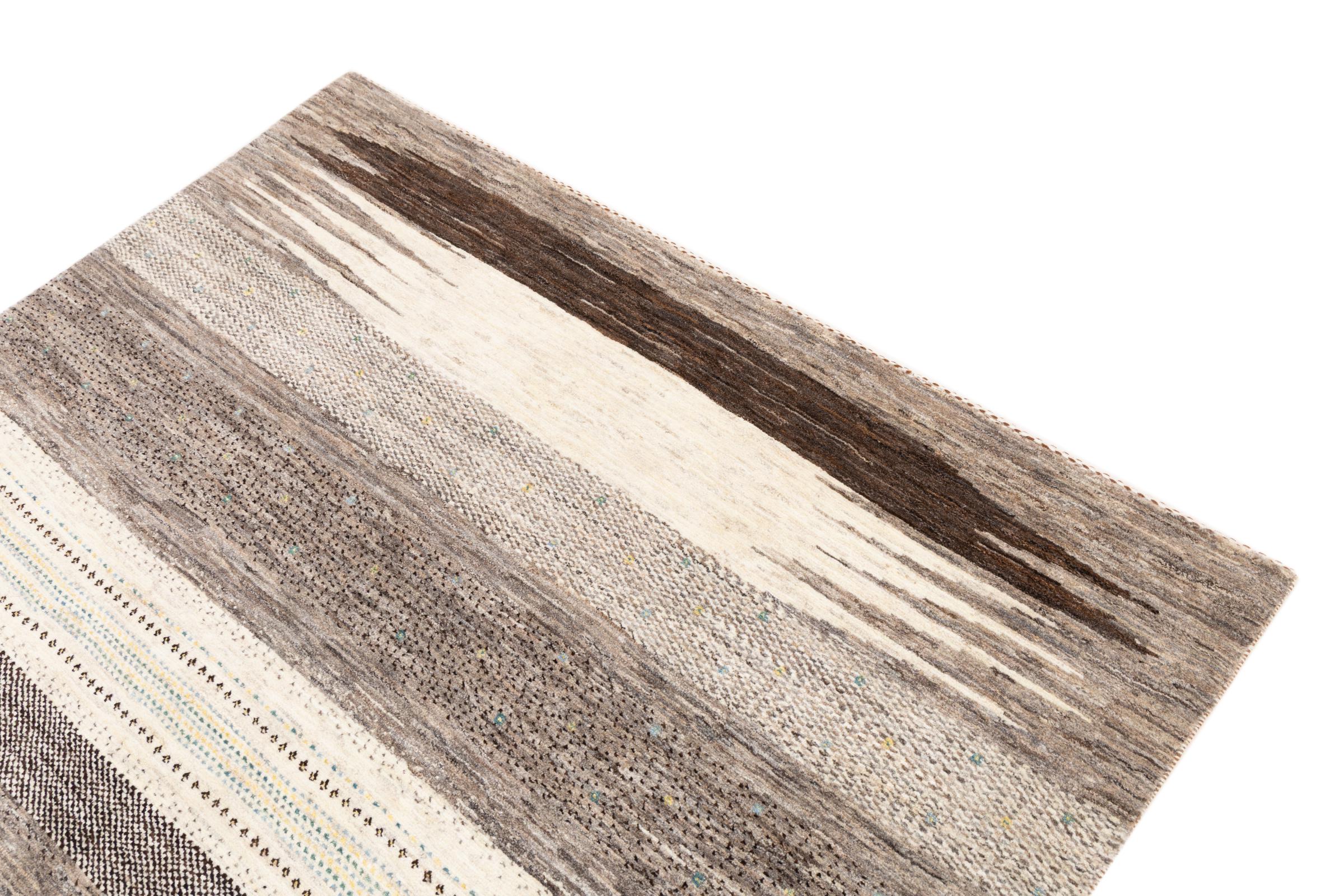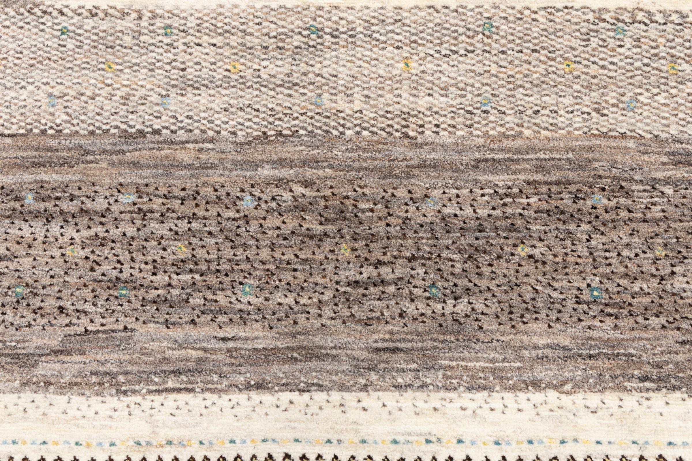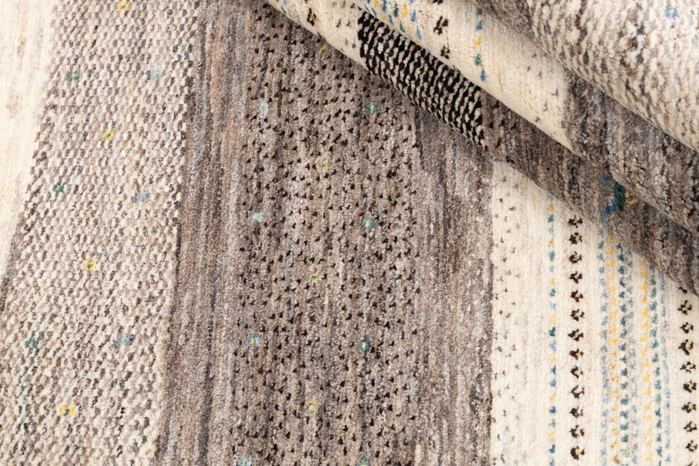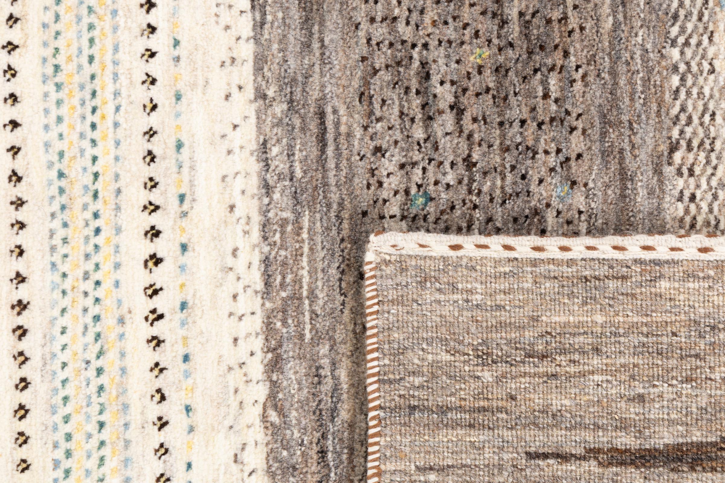 Un refinamiento de las ya conocidas alfombras Gabbeh: Esta es esta persa Gabbeh Loribaft. Con su anudado más fino y su hermoso diseño, sabe cómo impresionar. Loren lo anudó a mano en el sur de Persia con la mejor lana de oveja hilada a mano. Solo se utilizan tintes vegetales puros para teñir la lana. Con esta alfombra obtienes el estándar más alto de una alfombra Gabbeh para tu hogar.