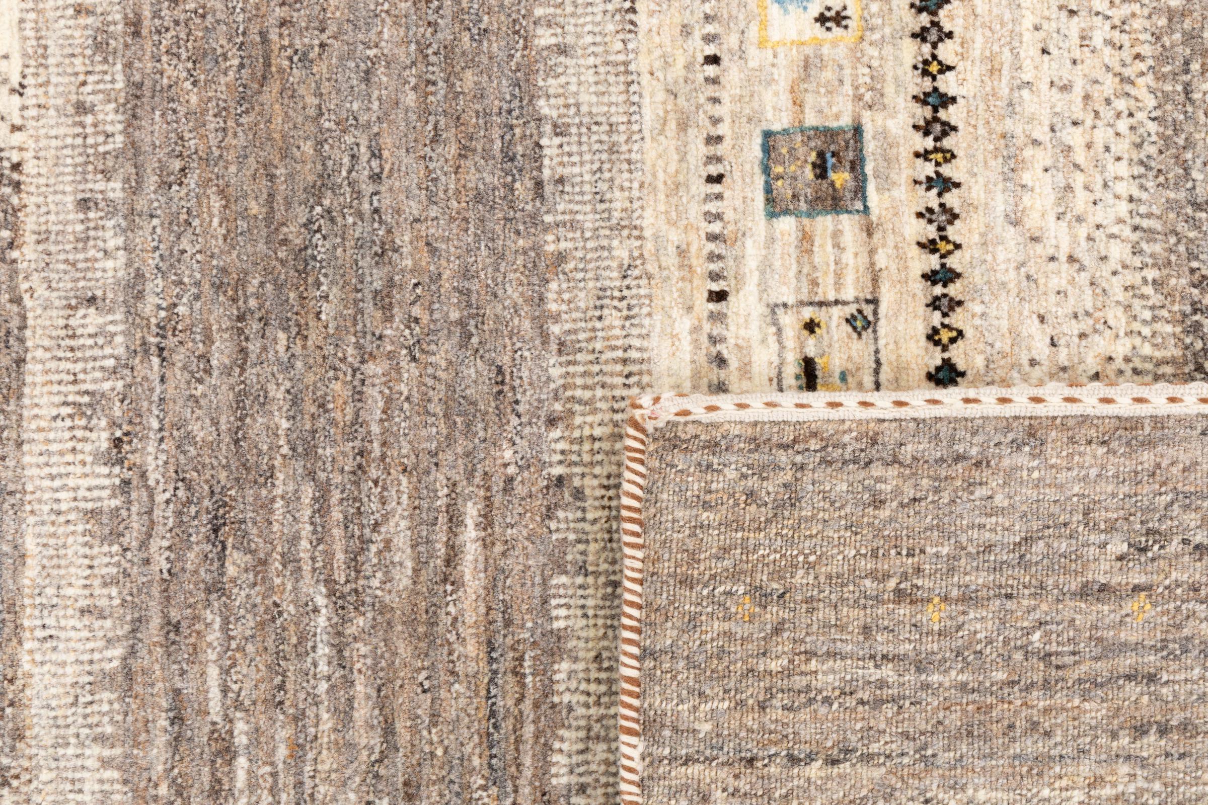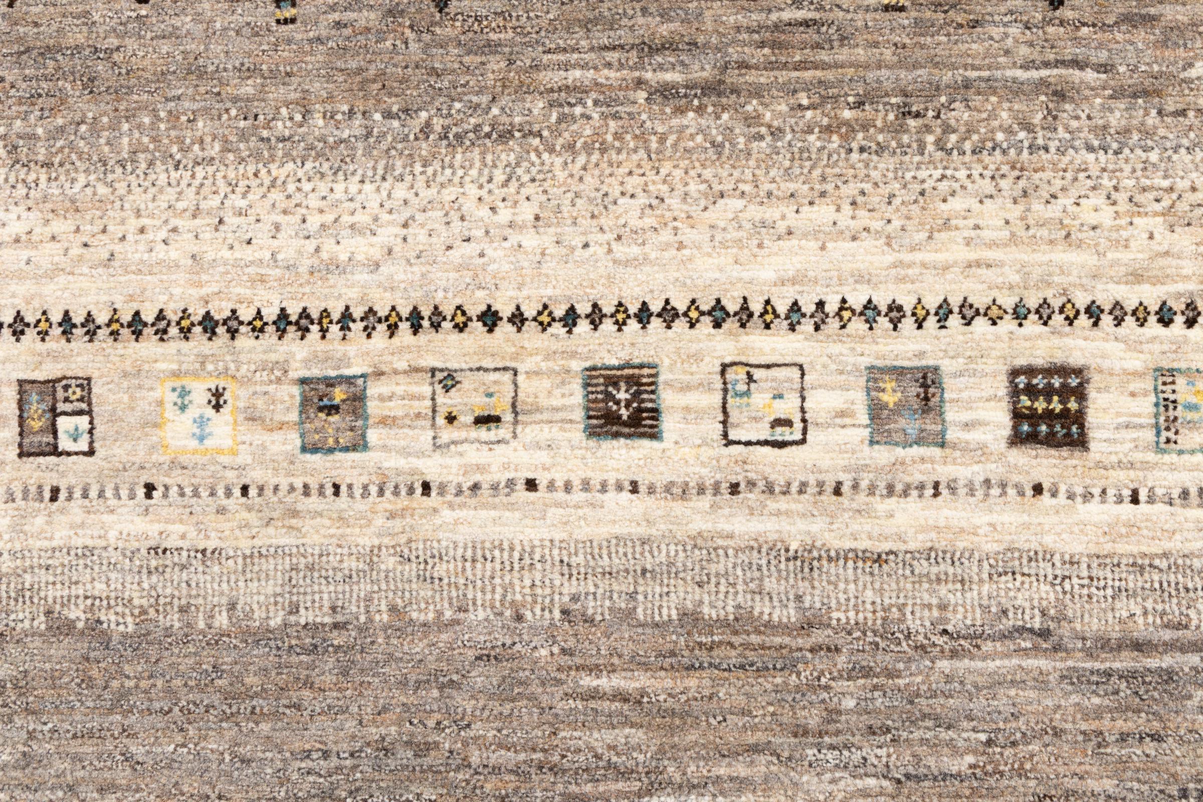 Un refinamiento de las ya conocidas alfombras Gabbeh: Esta es esta persa Gabbeh Loribaft. Con su anudado más fino y su hermoso diseño, sabe cómo impresionar. Loren lo anudó a mano en el sur de Persia con la mejor lana de oveja hilada a mano. Solo se utilizan tintes vegetales puros para teñir la lana. Con esta alfombra obtienes el estándar más alto de una alfombra Gabbeh para tu hogar.