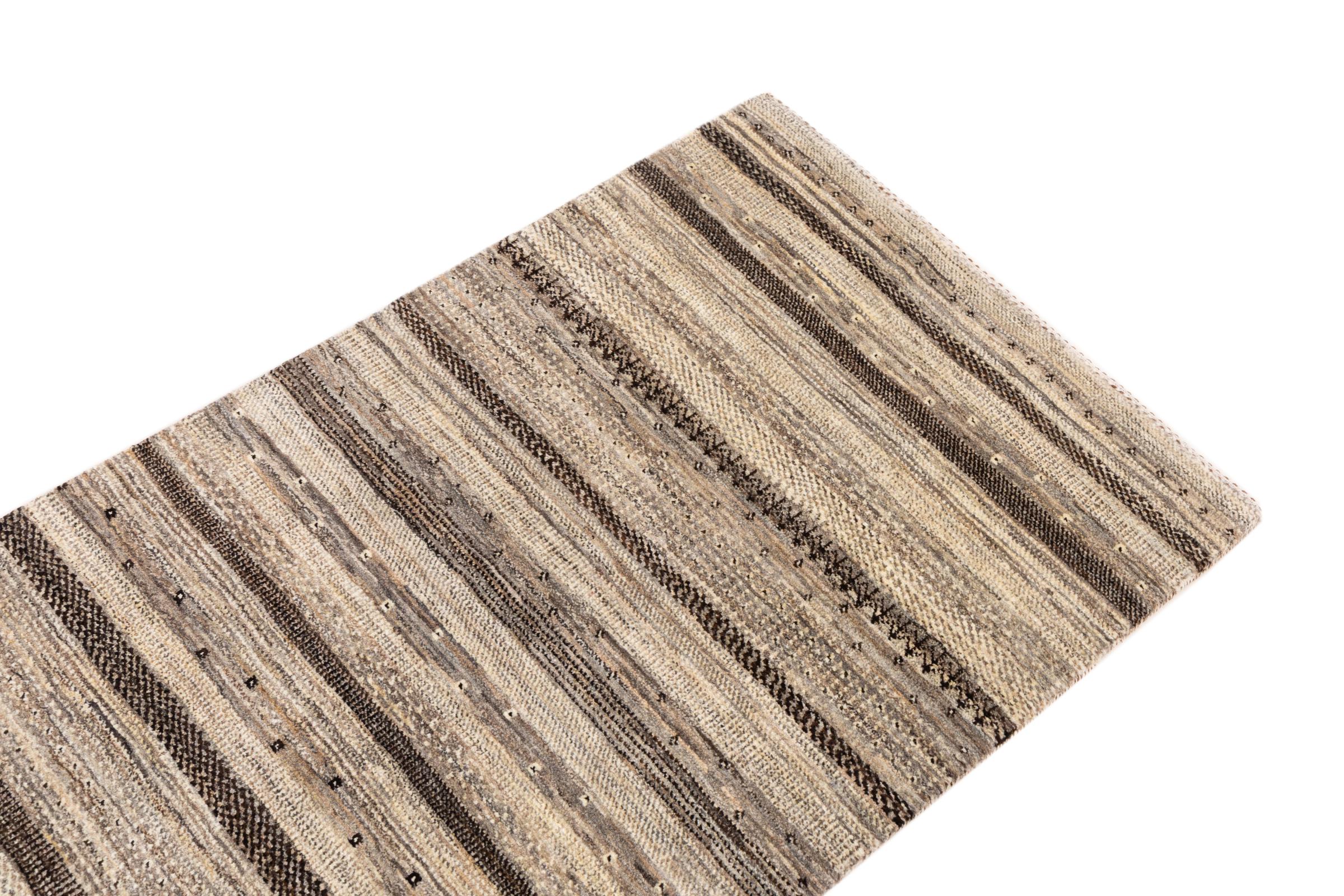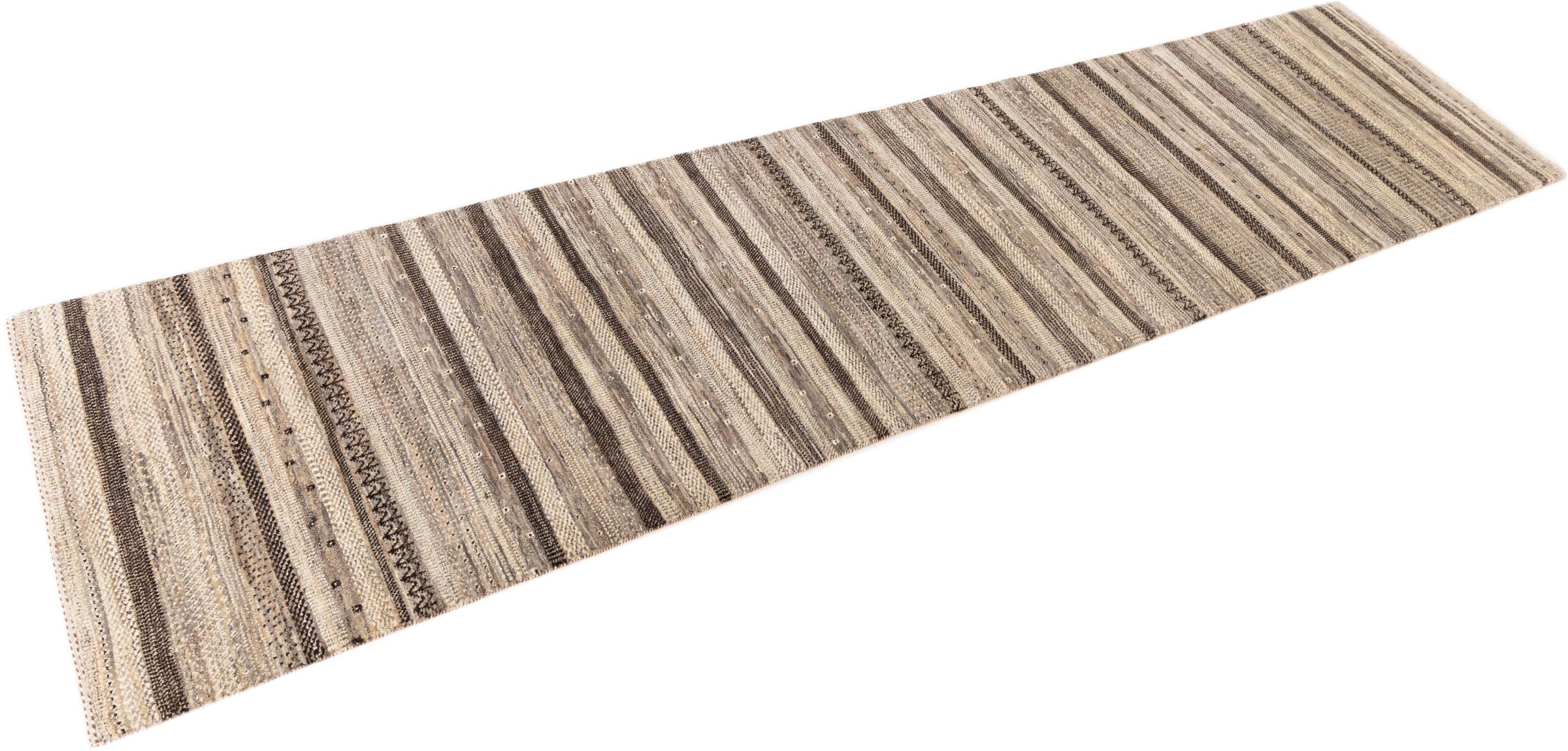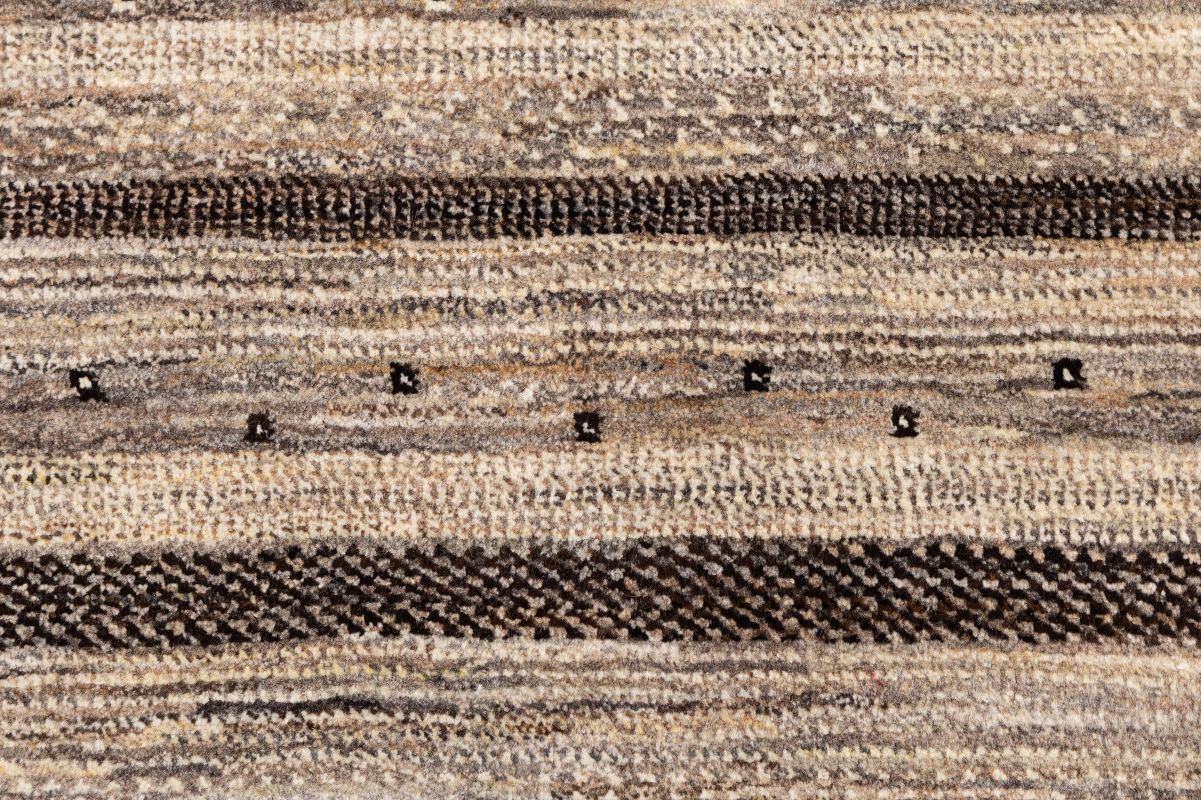 Un refinamiento de las ya conocidas alfombras Gabbeh: Esta es esta persa Gabbeh Loribaft. Con su anudado más fino y su hermoso diseño, sabe cómo impresionar. Loren lo anudó a mano en el sur de Persia con la mejor lana de oveja hilada a mano. Solo se utilizan tintes vegetales puros para teñir la lana. Con esta alfombra obtienes el estándar más alto de una alfombra Gabbeh para tu hogar.