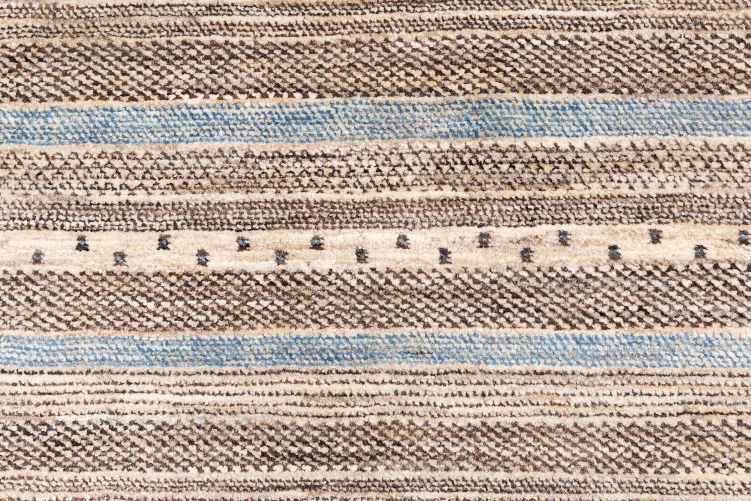 Un refinamiento de las ya conocidas alfombras Gabbeh: Esta es esta persa Gabbeh Loribaft. Con su anudado más fino y su hermoso diseño, sabe cómo impresionar. Loren lo anudó a mano en el sur de Persia con la mejor lana de oveja hilada a mano. Solo se utilizan tintes vegetales puros para teñir la lana. Con esta alfombra obtienes el estándar más alto de una alfombra Gabbeh para tu hogar.
