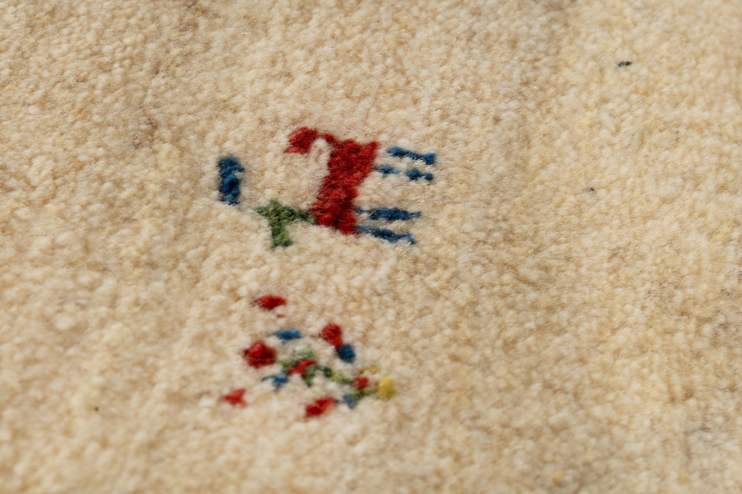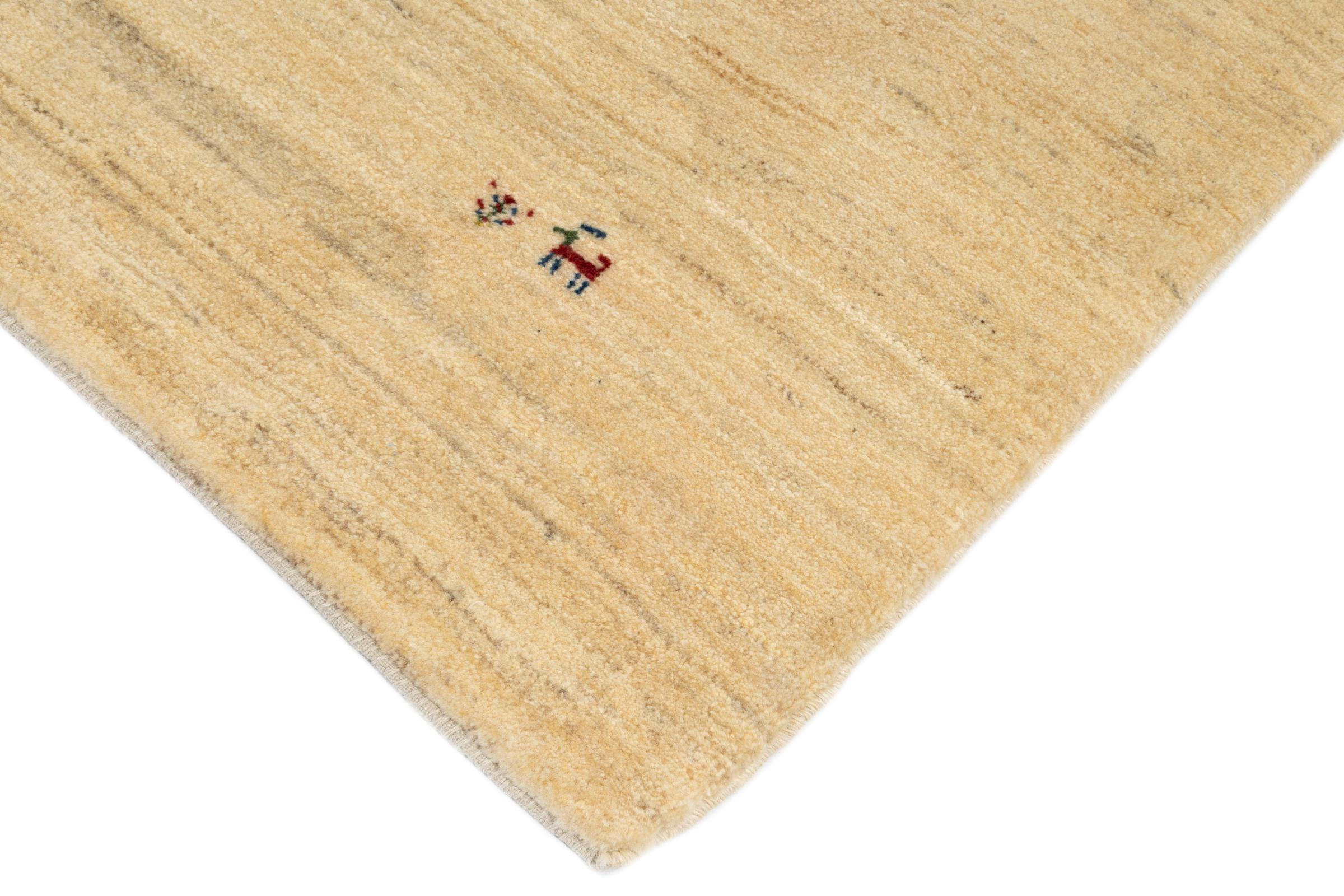 Esta hermosa alfombra es una Gabbeh persa y por lo tanto pertenece a las alfombras Gabbeh de mayor calidad. Las alfombras son anudadas por nómadas o seminómadas en Irán según la artesanía tradicional. Los motivos y patrones simples están inspirados en su mayoría por el entorno inmediato de los nómadas. Por ejemplo, los camellos, árboles o arbustos se pueden encontrar en las alfombras tradicionales. Las alfombras gabbeh persas están hechas de lana de rebaños de ovejas criados localmente. Por lo tanto, la lana se sigue hilando a mano. Así, cada una de estas alfombras orientales encarna un carácter único de la cultura de siglos de antigüedad.
