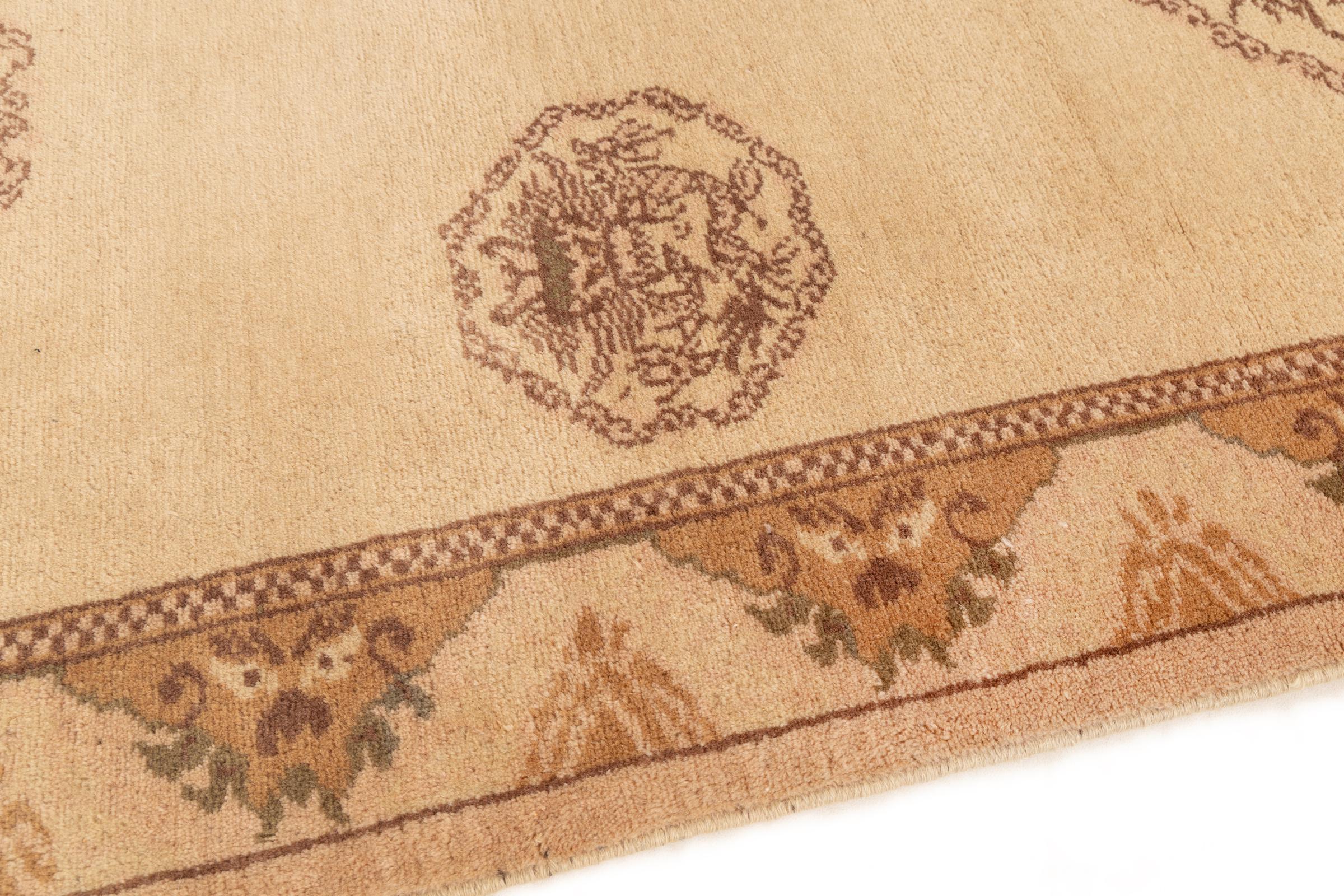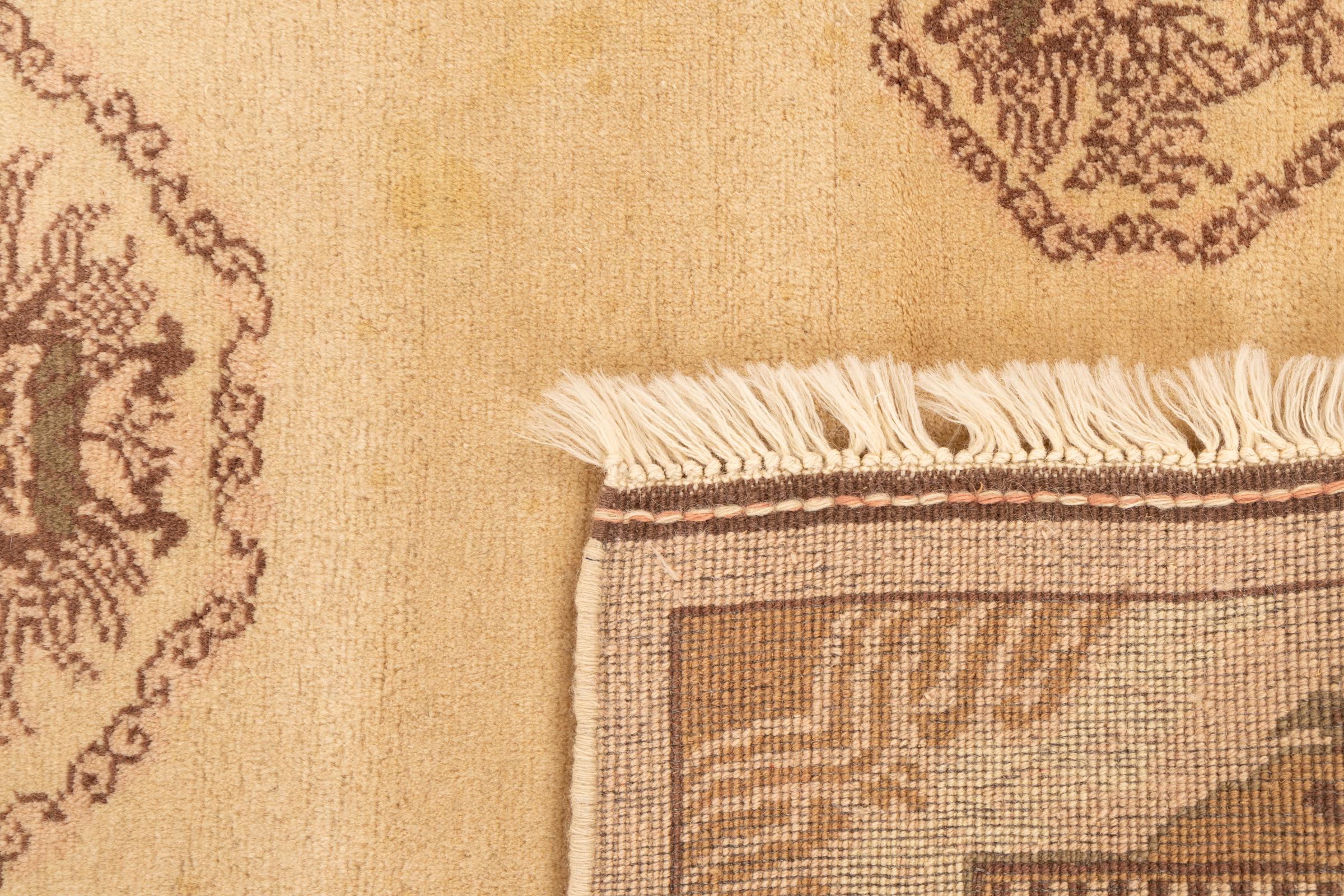 Esta alfombra procede de Rusia y se anudó con la antigua artesanía tradicional. Se utilizó lana de alta calidad procedente de ovejas criadas en la zona. La alfombra tiene motivos y adornos típicos rusos que recuerdan la época zarista.