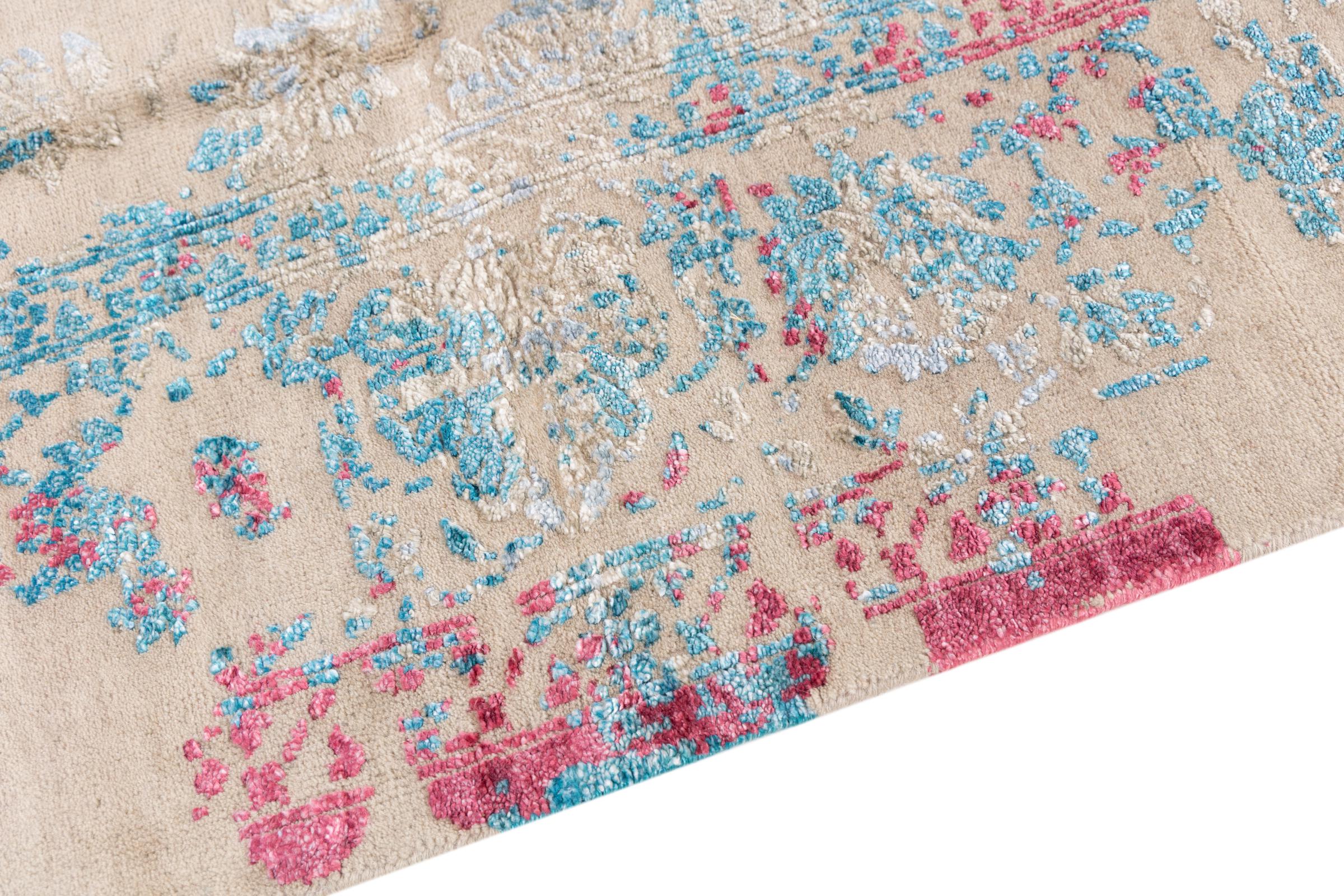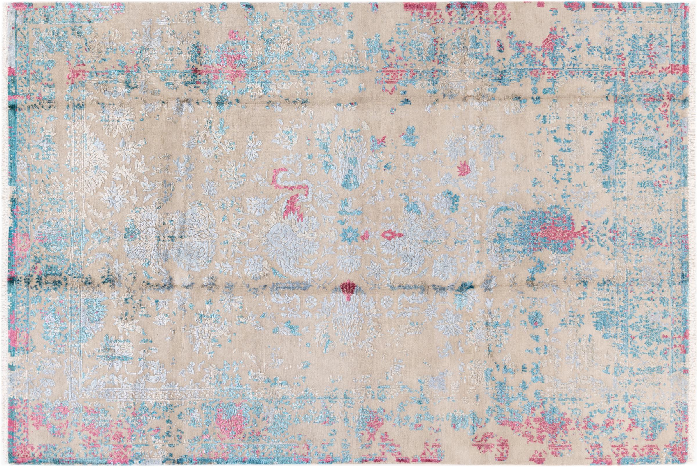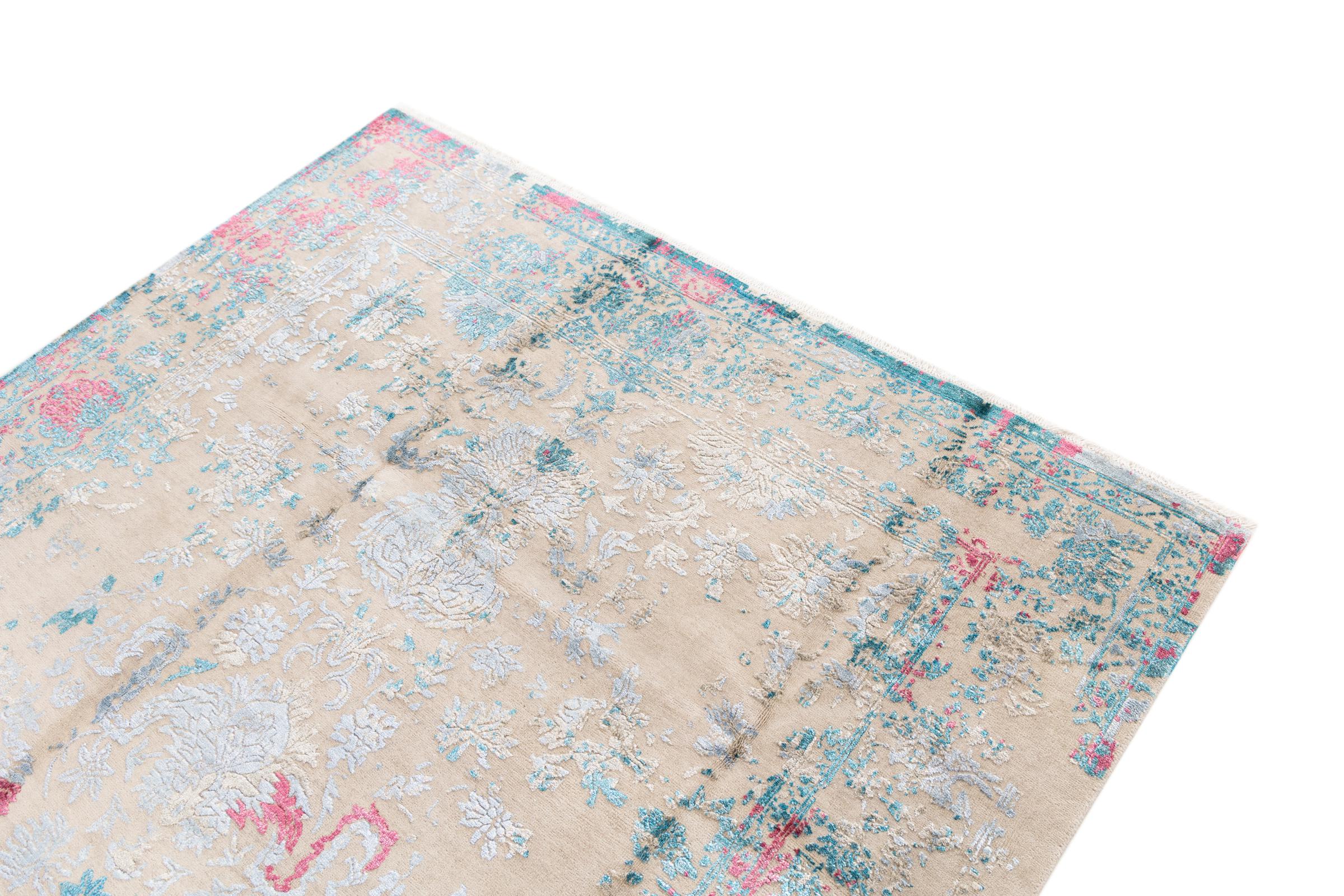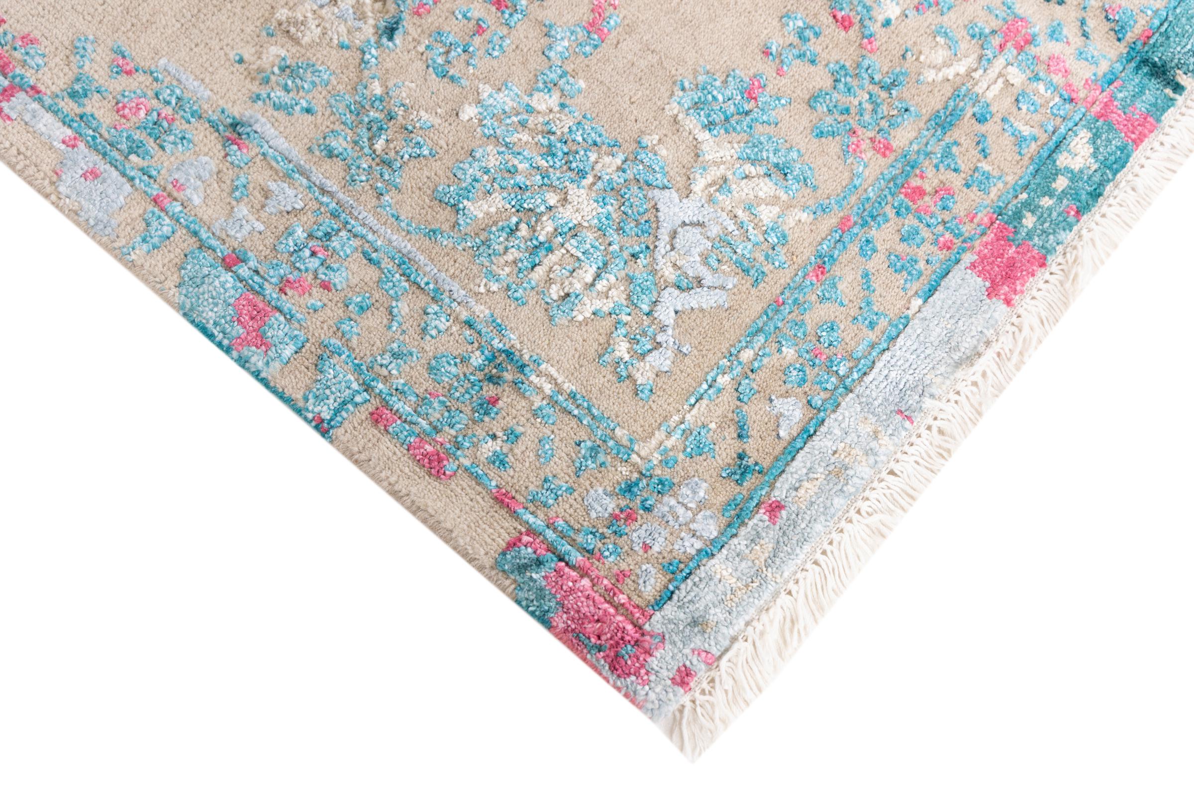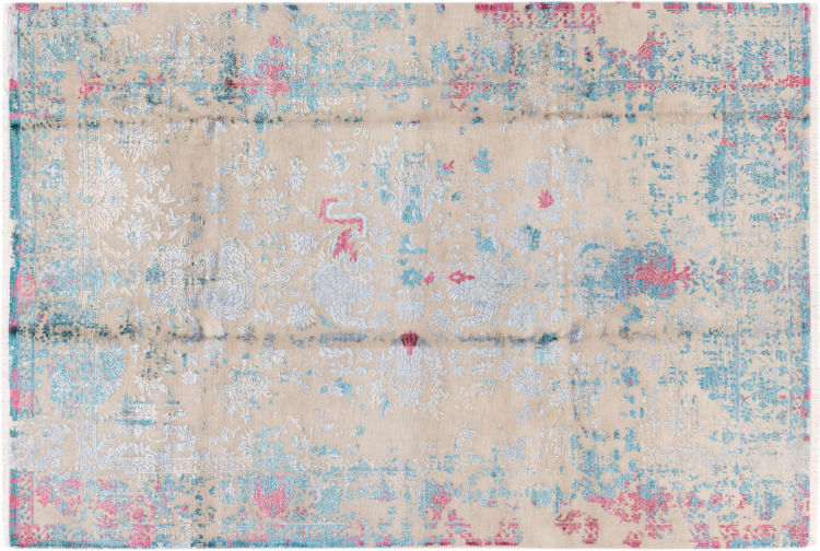 Alfombra número: 37141001154905 Tamaño: 280x190 cm Espesor: alrededor de 12 mm Nudos: 200 000 - 250 000 / m² Elaboración: Anudado a mano Crespón: Lana con seda de bambú Urdimbre: Algodón Origen: India Edad: Nuevo Peso: alrededor de 19 kg Cantidad en stock: Única - Solo 1 en stock