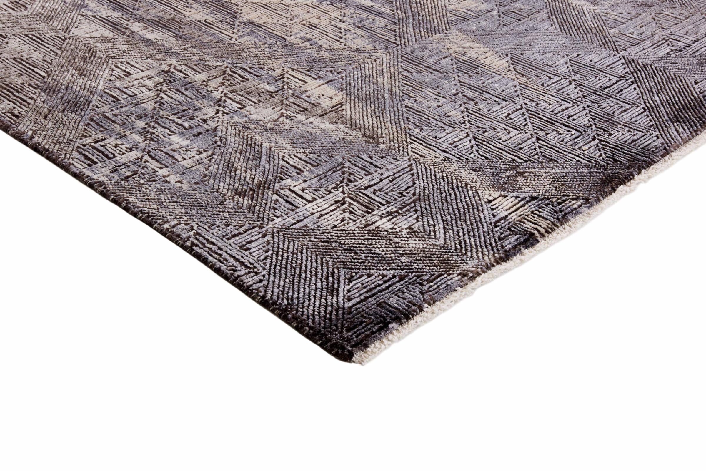 Esta Sadraa es una alfombra de diseño única, anudada a mano durante meses. Sus materiales de alta calidad se combinan con un diseño muy moderno. La alfombra no deja nada que desear. Gracias a la artesanía de las técnicas de anudado tradicionales de Oriente, sobrevive a décadas y a cargas pesadas. Fue creada por diseñadores al estilo escandinavo, que sigue ofreciendo un realce absoluto incluso después de años. En particular, la combinación de suave lana de oveja y brillante seda de bambú o viscosa proporciona una experiencia única.