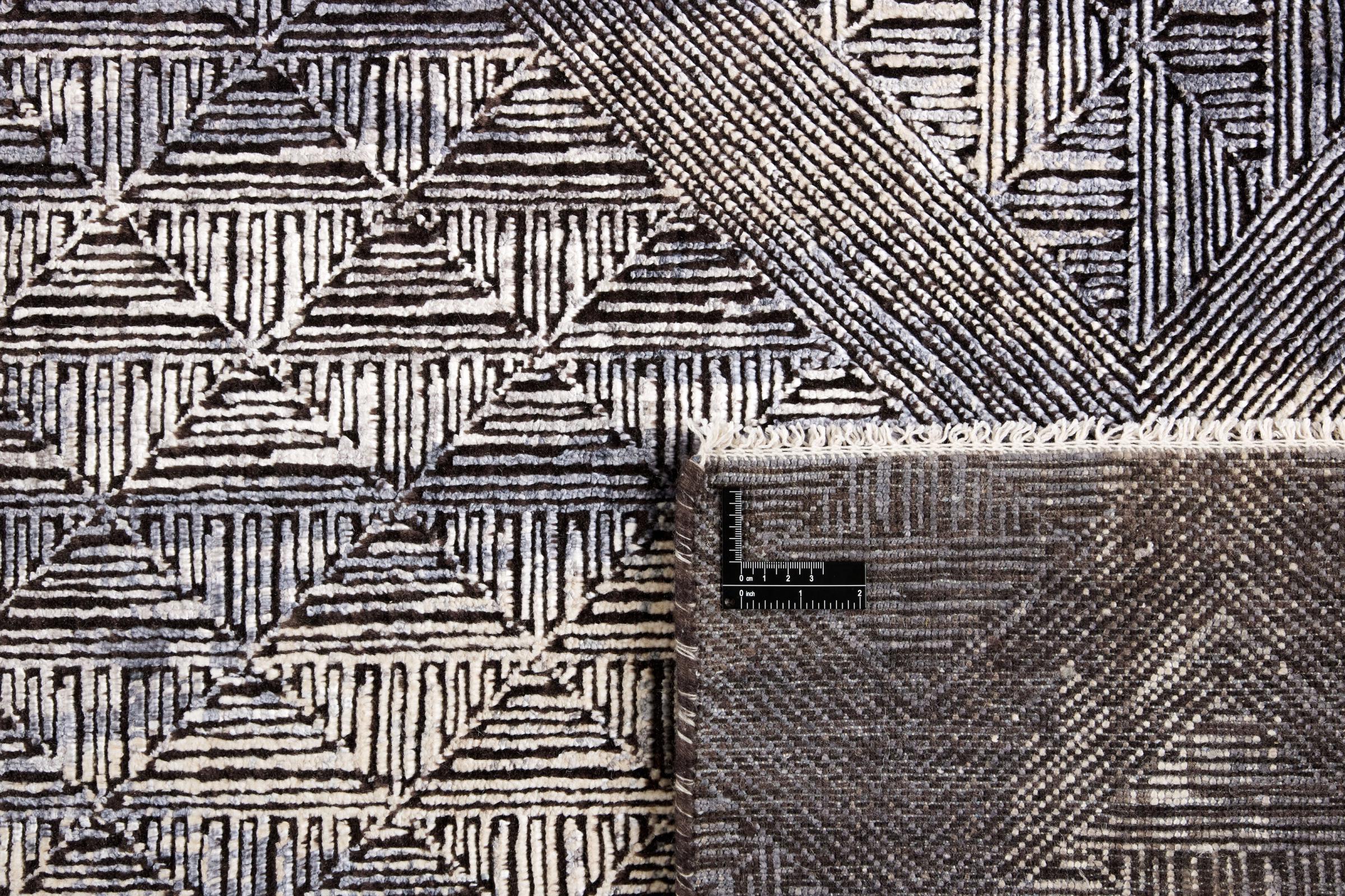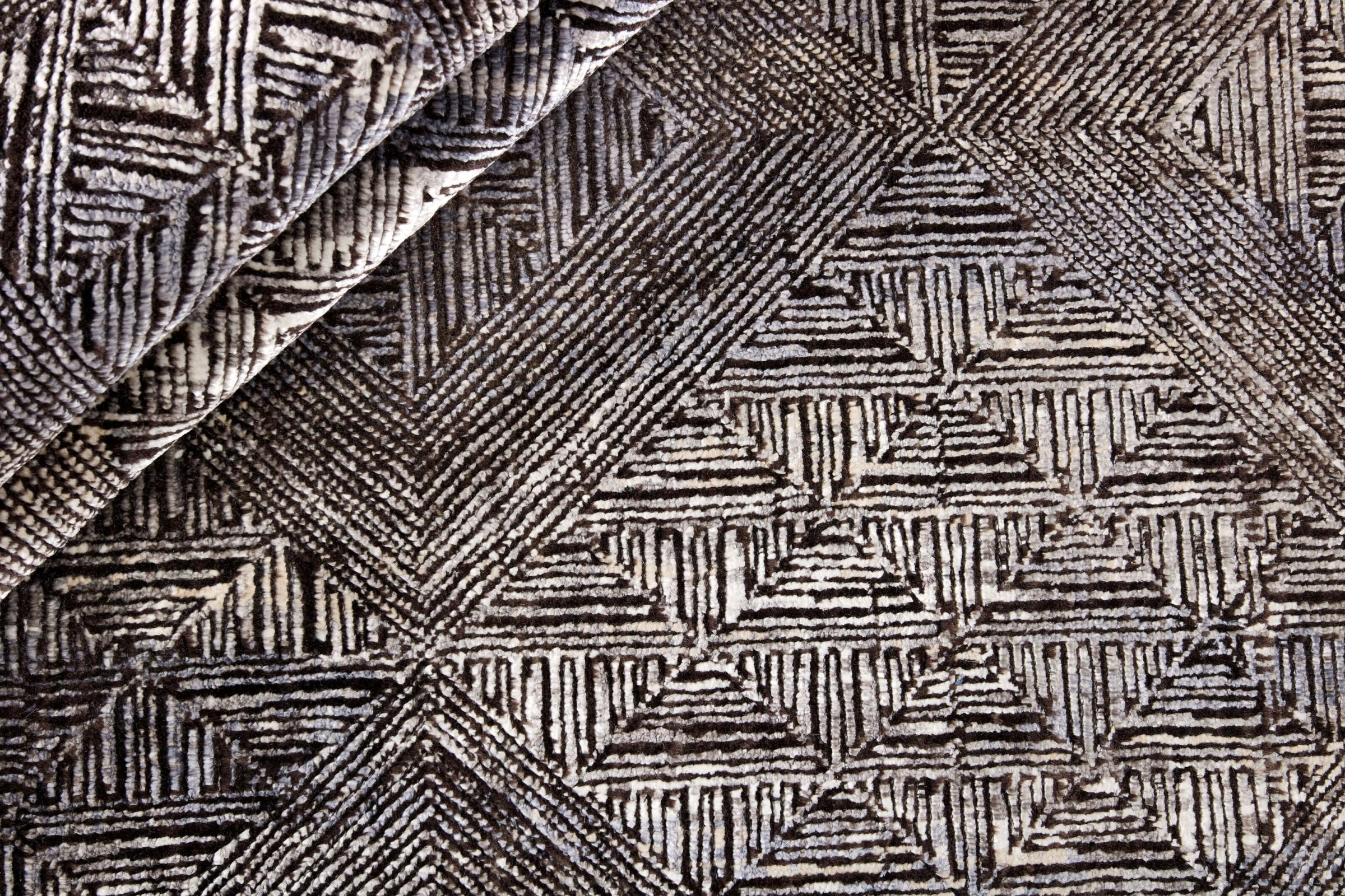 Esta Sadraa es una alfombra de diseño única, anudada a mano durante meses. Sus materiales de alta calidad se combinan con un diseño muy moderno. La alfombra no deja nada que desear. Gracias a la artesanía de las técnicas de anudado tradicionales de Oriente, sobrevive a décadas y a cargas pesadas. Fue creada por diseñadores al estilo escandinavo, que sigue ofreciendo un realce absoluto incluso después de años. En particular, la combinación de suave lana de oveja y brillante seda de bambú o viscosa proporciona una experiencia única.