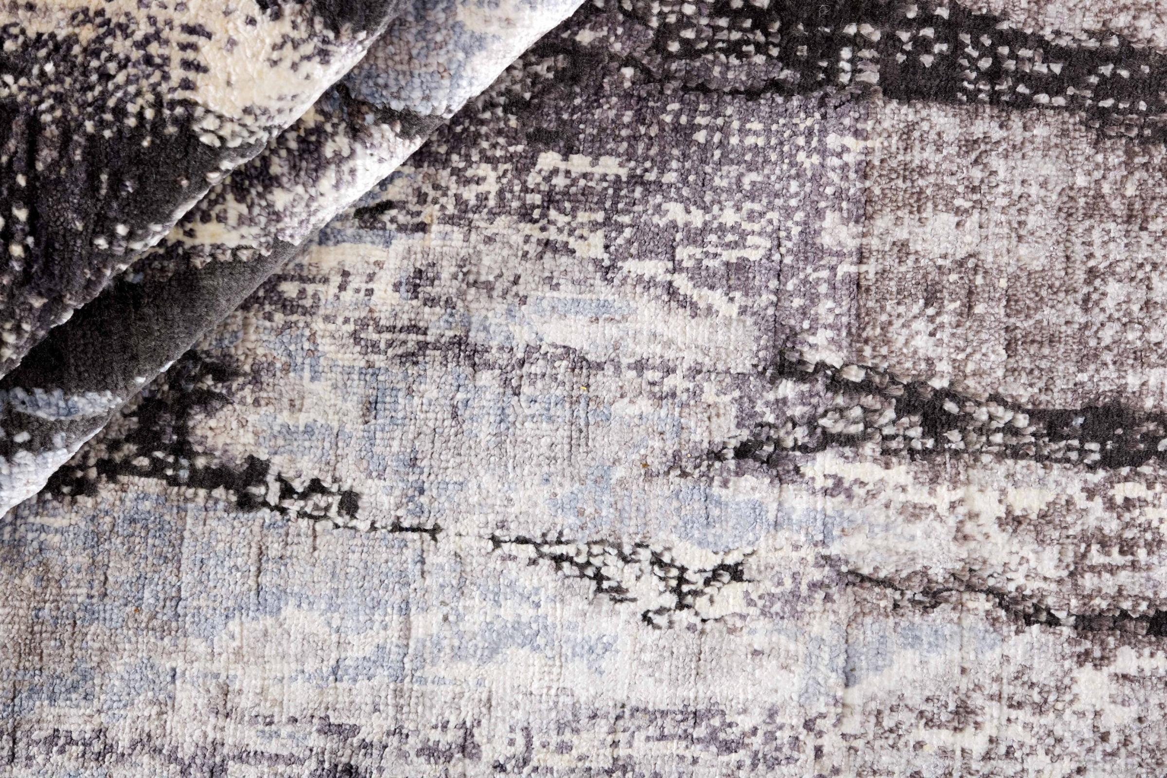 Esta Sadraa es una alfombra de diseño única, anudada a mano durante meses. Sus materiales de alta calidad se combinan con un diseño muy moderno. La alfombra no deja nada que desear. Gracias a la artesanía de las técnicas de anudado tradicionales de Oriente, sobrevive a décadas y a cargas pesadas. Fue creada por diseñadores al estilo escandinavo, que sigue ofreciendo un realce absoluto incluso después de años. En particular, la combinación de suave lana de oveja y brillante seda de bambú o viscosa proporciona una experiencia única.