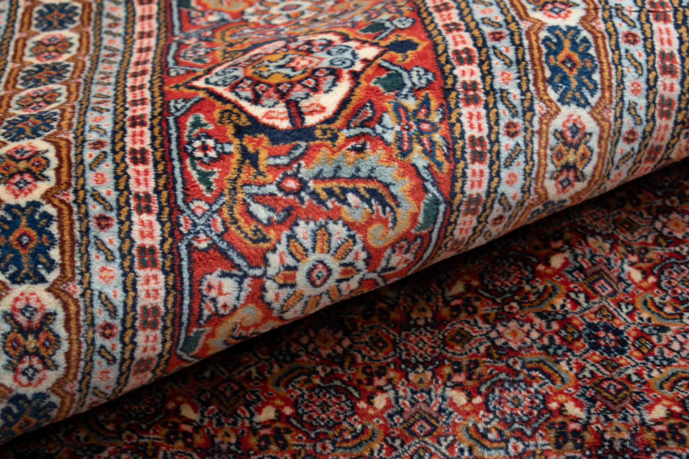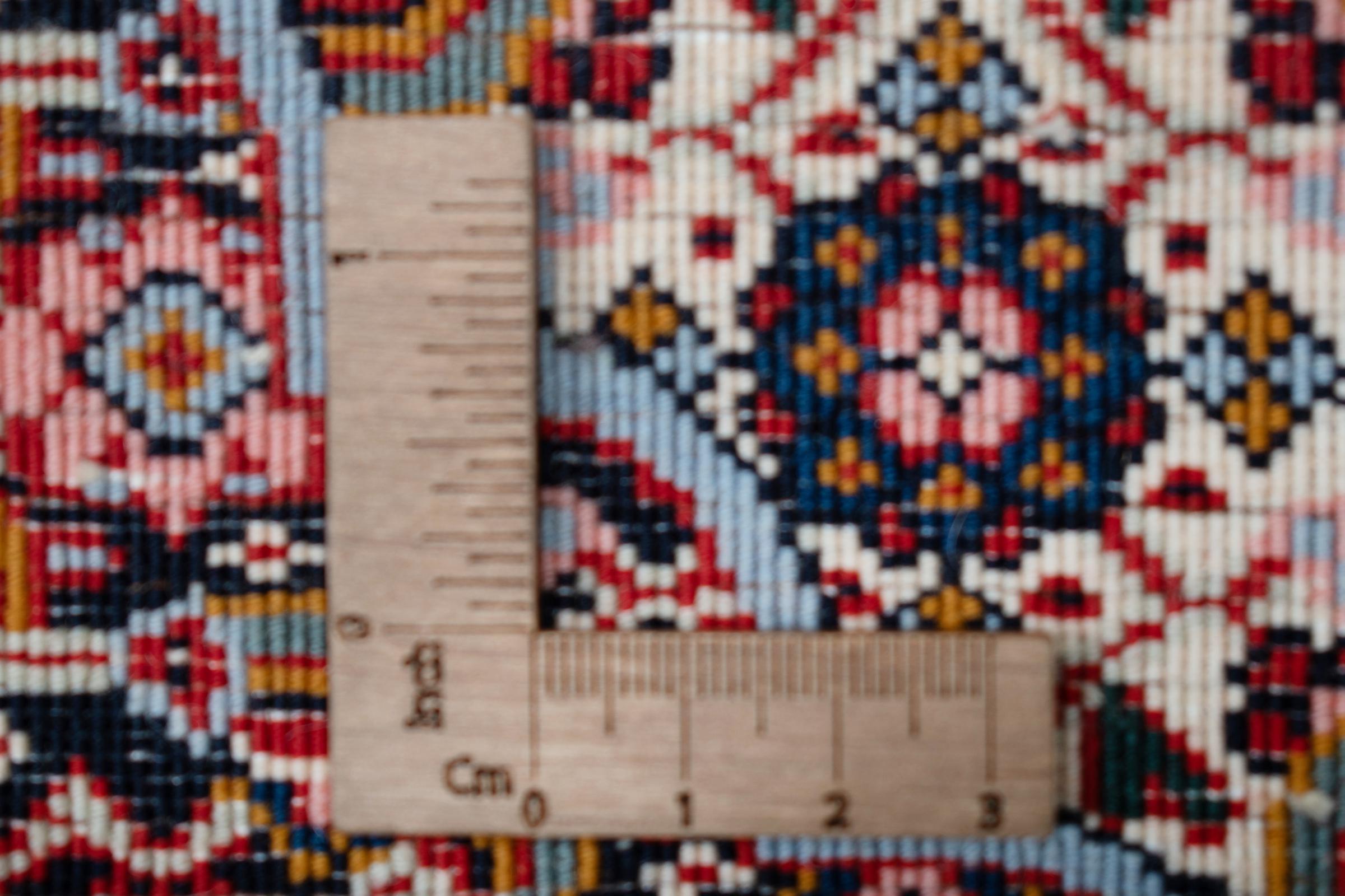 Esta alfombra está hecha de lana de oveja hilada a mano de la más alta calidad. Especialmente en Irán (antigua Persia), la lana de Afganistán y Pakistán sigue siendo hilada a mano antes de que comience el anudado de la alfombra. La lana ha demostrado ser un material natural y extremadamente resistente a lo largo de los siglos. Entre otras cosas, tiene propiedades repelentes de la suciedad y aislantes del calor. Al mismo tiempo, la lana es incomparablemente suave y tiene un brillo natural.