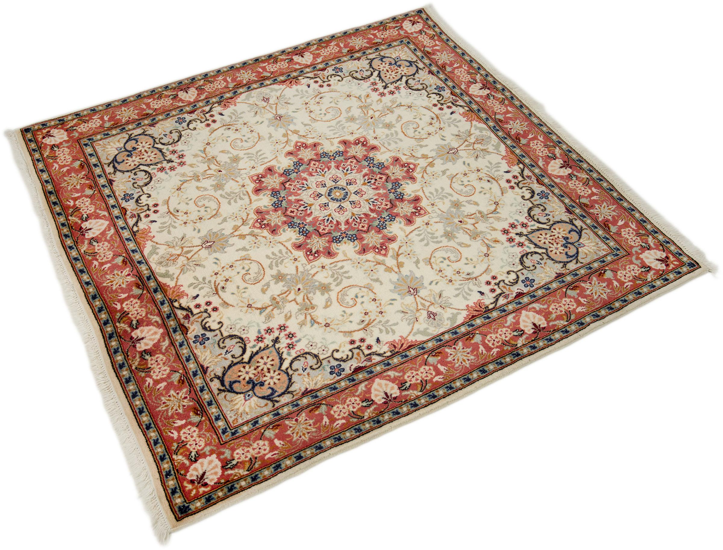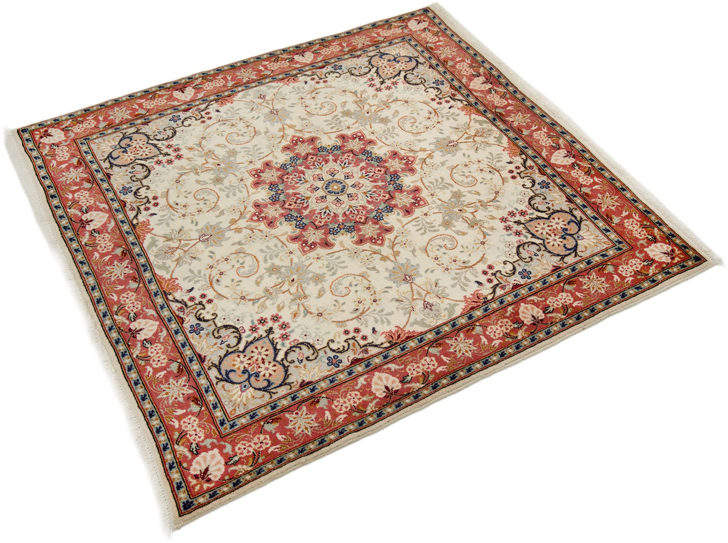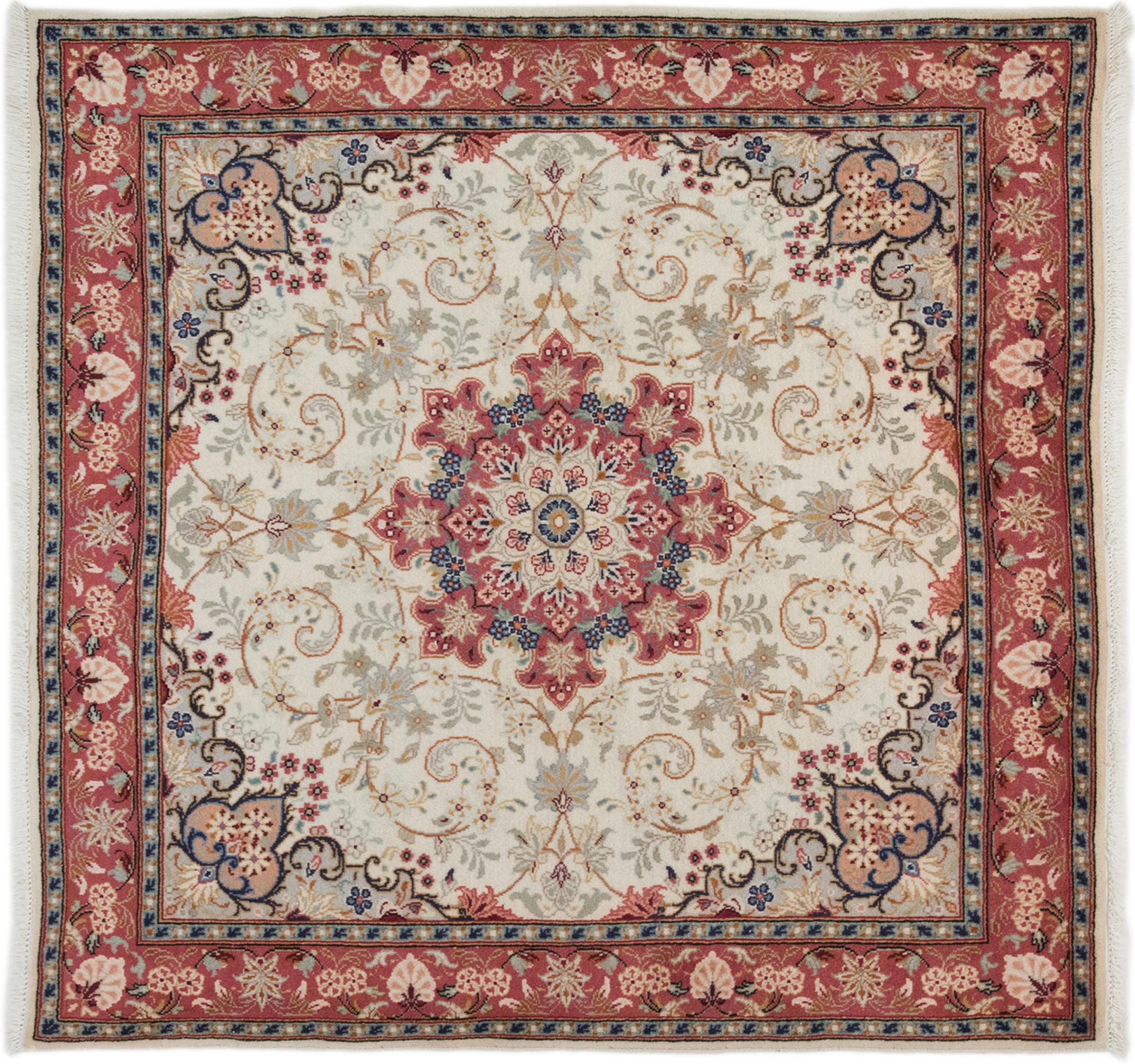 Alfombra número: 316475006790115 Tamaño: 154x151 cm Espesor: alrededor de 12 mm Nudos: 160 000 - 200 000 / m² Elaboración: Anudado a mano Crespón: Lana hilada a mano Urdimbre: Algodón Origen: Persia / Iran Edad: Nuevo Peso: alrededor de 9 kg También conocido como Arak , Sarough, Sarouk, Saruk, Saroq, Sultanabad Cantidad en stock: Única - Solo 1 en stock