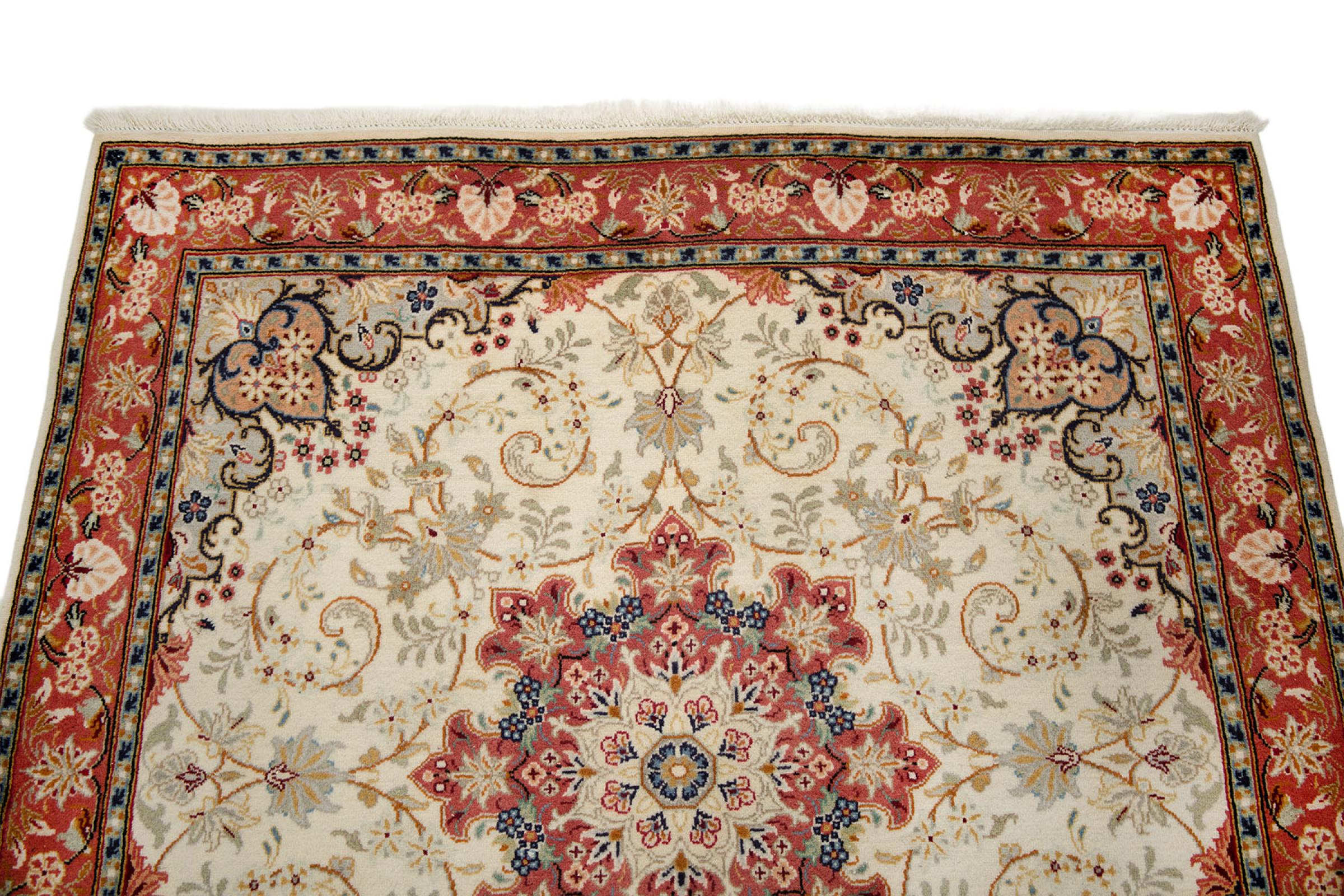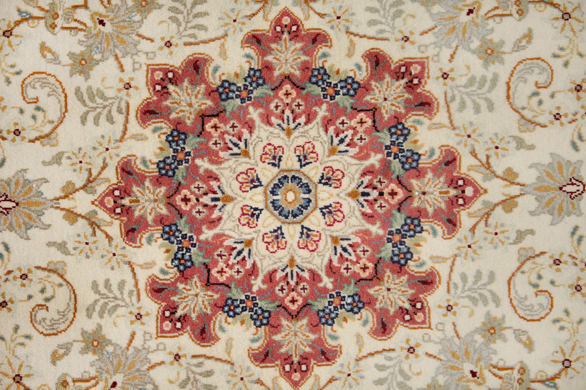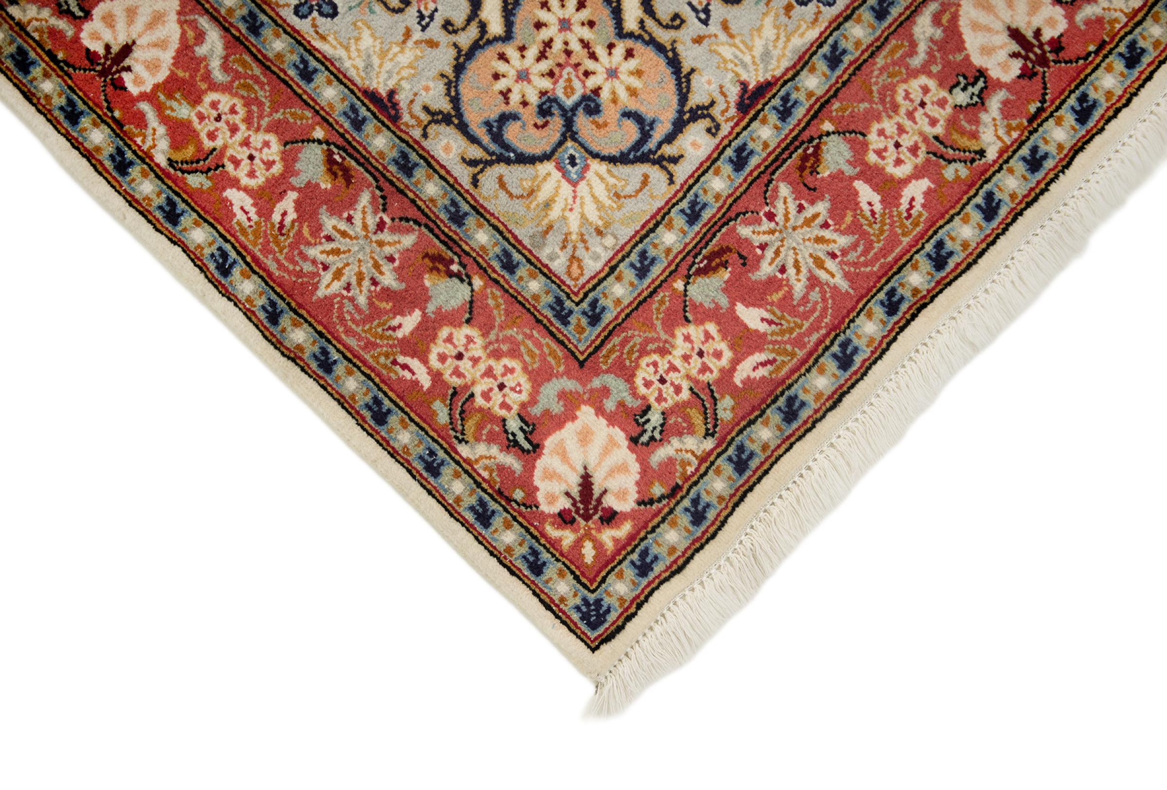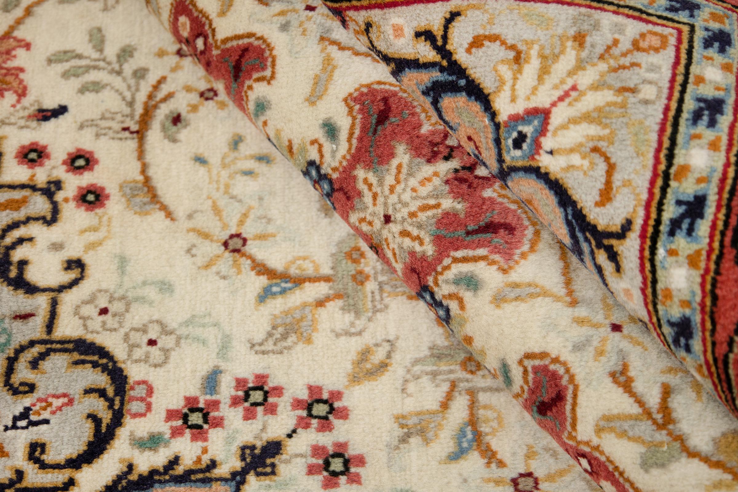 Esta alfombra está hecha de lana de oveja hilada a mano de la más alta calidad. Especialmente en Irán (antigua Persia), la lana de Afganistán y Pakistán sigue siendo hilada a mano antes de que comience el anudado de la alfombra. La lana ha demostrado ser un material natural y extremadamente resistente a lo largo de los siglos. Entre otras cosas, tiene propiedades repelentes de la suciedad y aislantes del calor. Al mismo tiempo, la lana es incomparablemente suave y tiene un brillo natural.