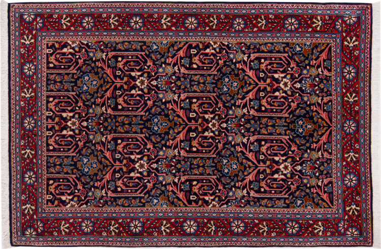 Esta alfombra persa se anudó a mano en Arak. Esta región es sinónimo de alfombras pesadas de gran calidad y robustez. Las alfombras Sarough también son muy populares gracias a sus atrevidos colores y bellos adornos. Esta alfombra es una obra de arte intemporal.