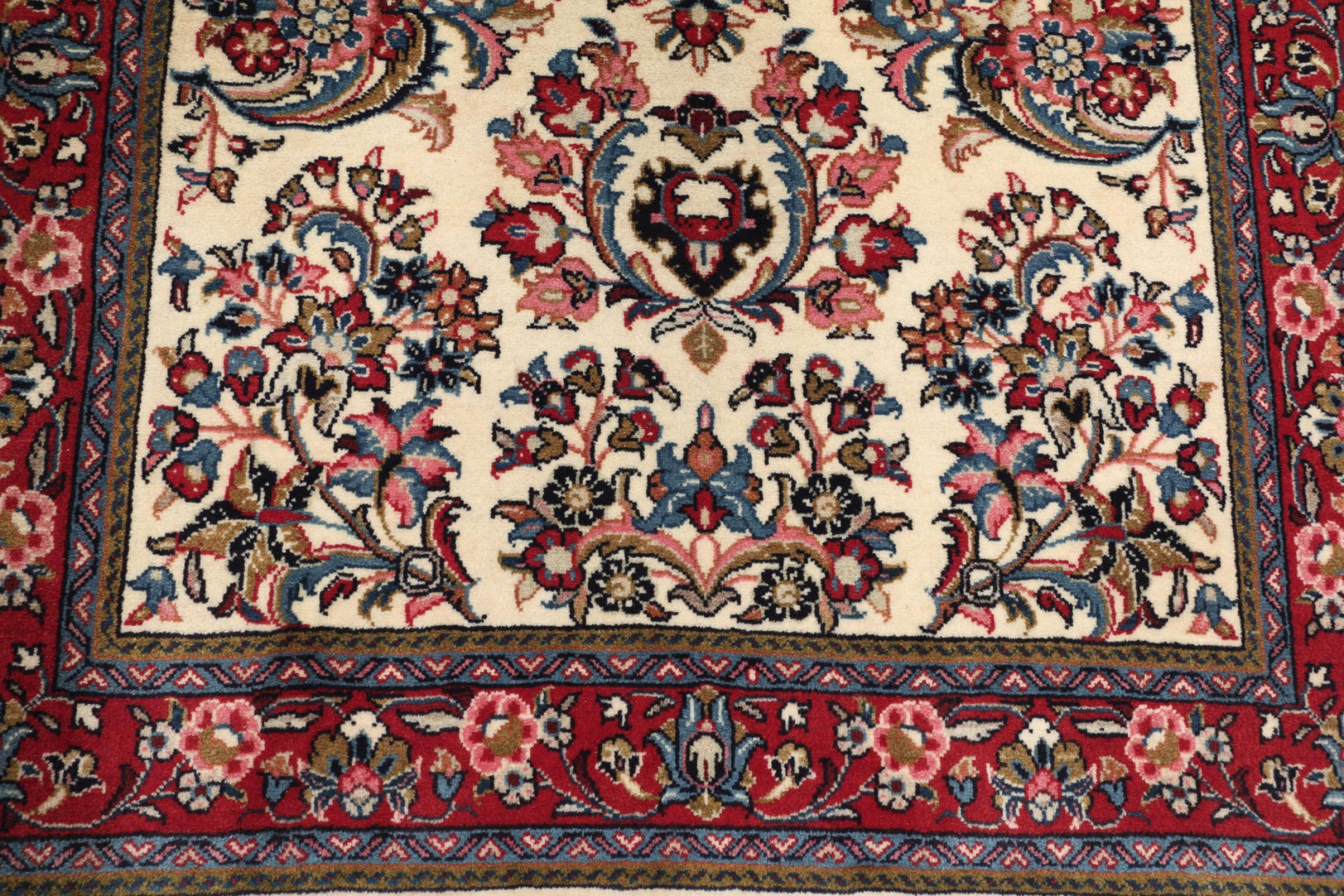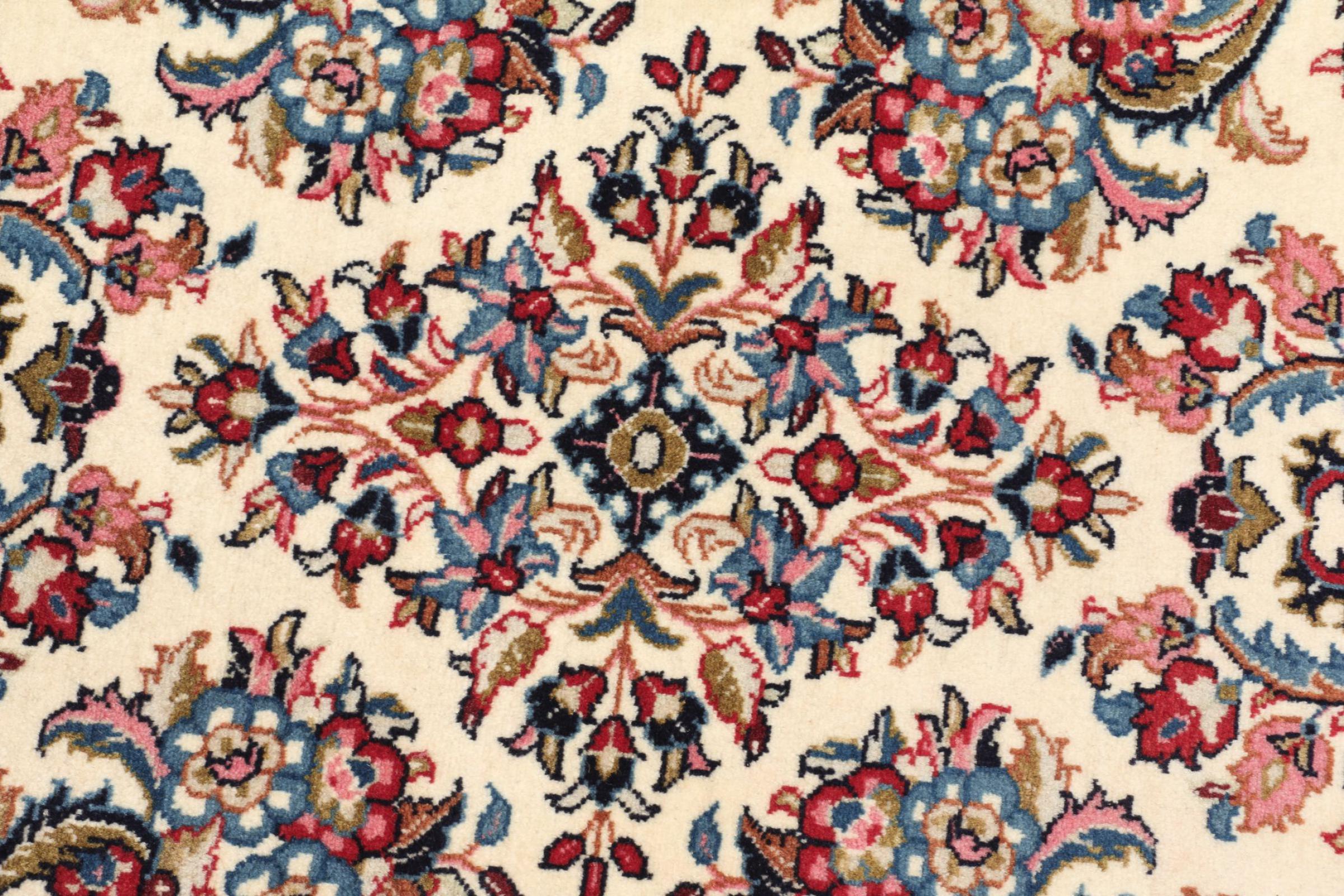 Esta alfombra está hecha de lana de oveja hilada a mano de la más alta calidad. Especialmente en Irán (antigua Persia), la lana de Afganistán y Pakistán sigue siendo hilada a mano antes de que comience el anudado de la alfombra. La lana ha demostrado ser un material natural y extremadamente resistente a lo largo de los siglos. Entre otras cosas, tiene propiedades repelentes de la suciedad y aislantes del calor. Al mismo tiempo, la lana es incomparablemente suave y tiene un brillo natural.
