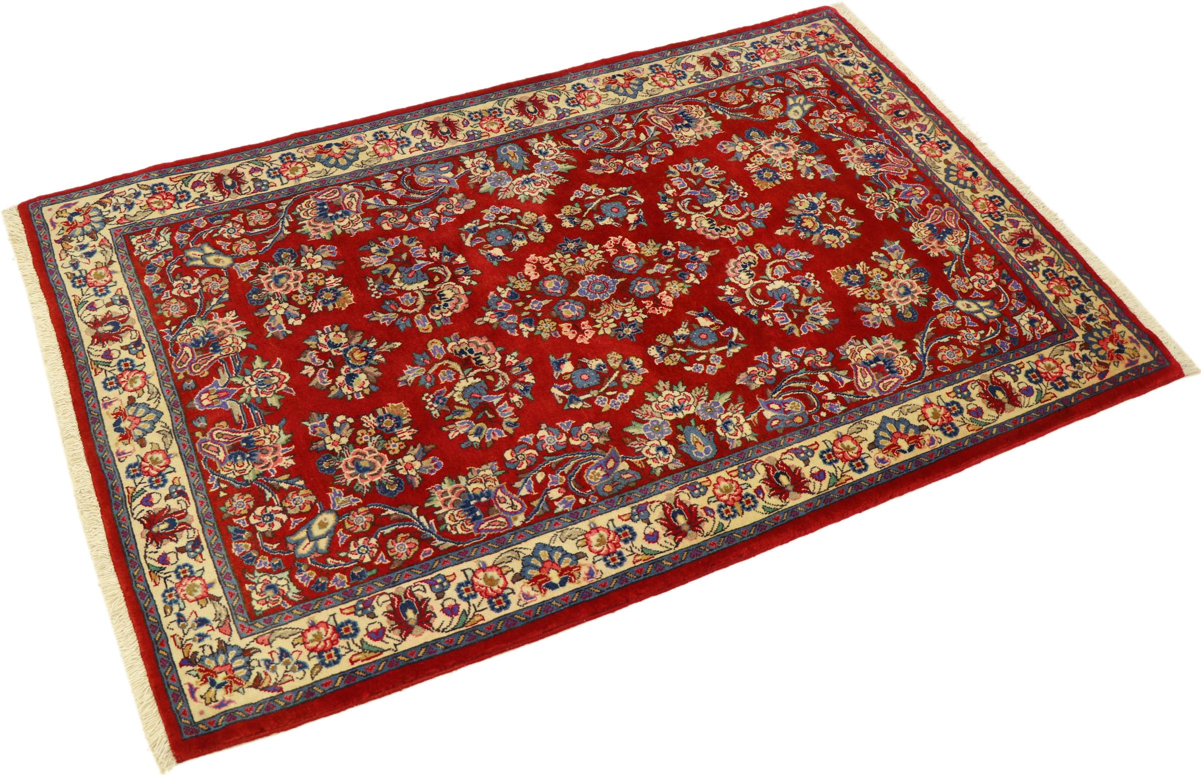 Esta alfombra persa se anudó a mano en Arak. Esta región es sinónimo de alfombras pesadas de gran calidad y robustez. Las alfombras Sarough también son muy populares gracias a sus atrevidos colores y bellos adornos. Esta alfombra es una obra de arte intemporal.