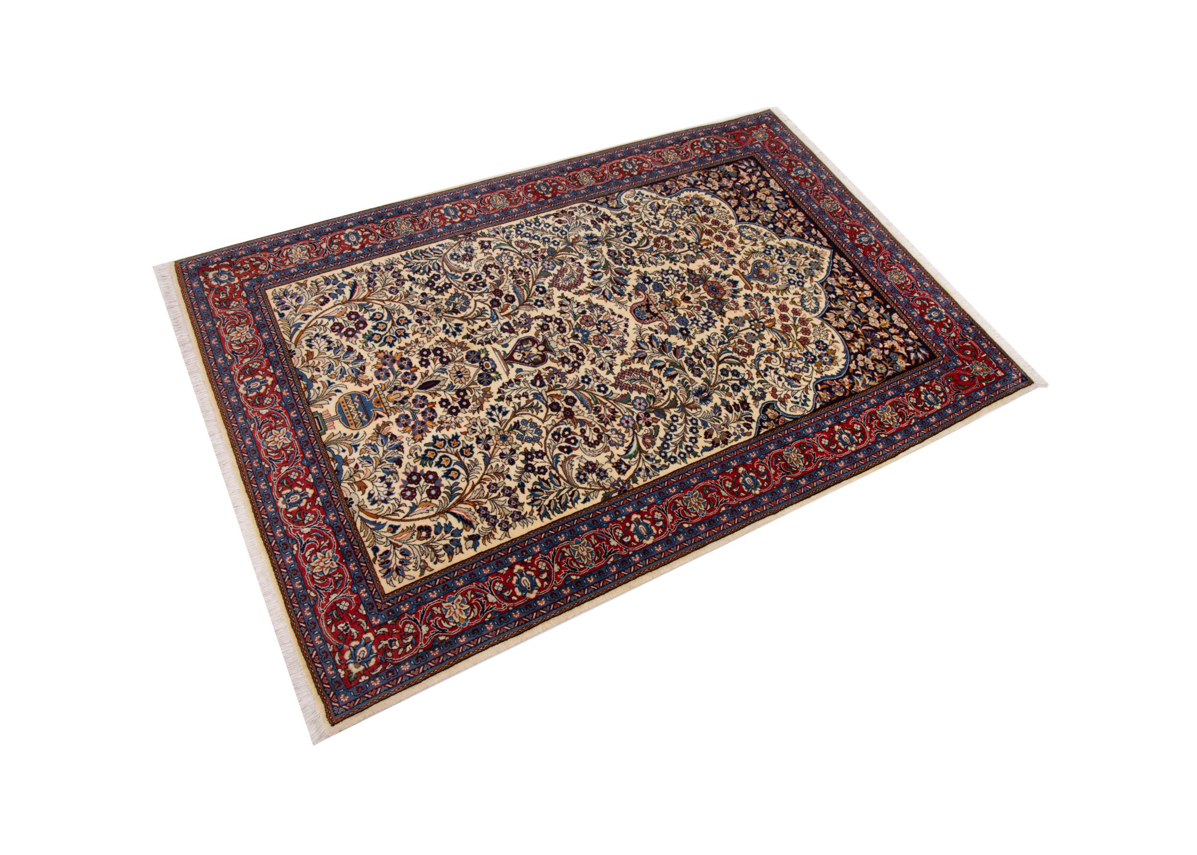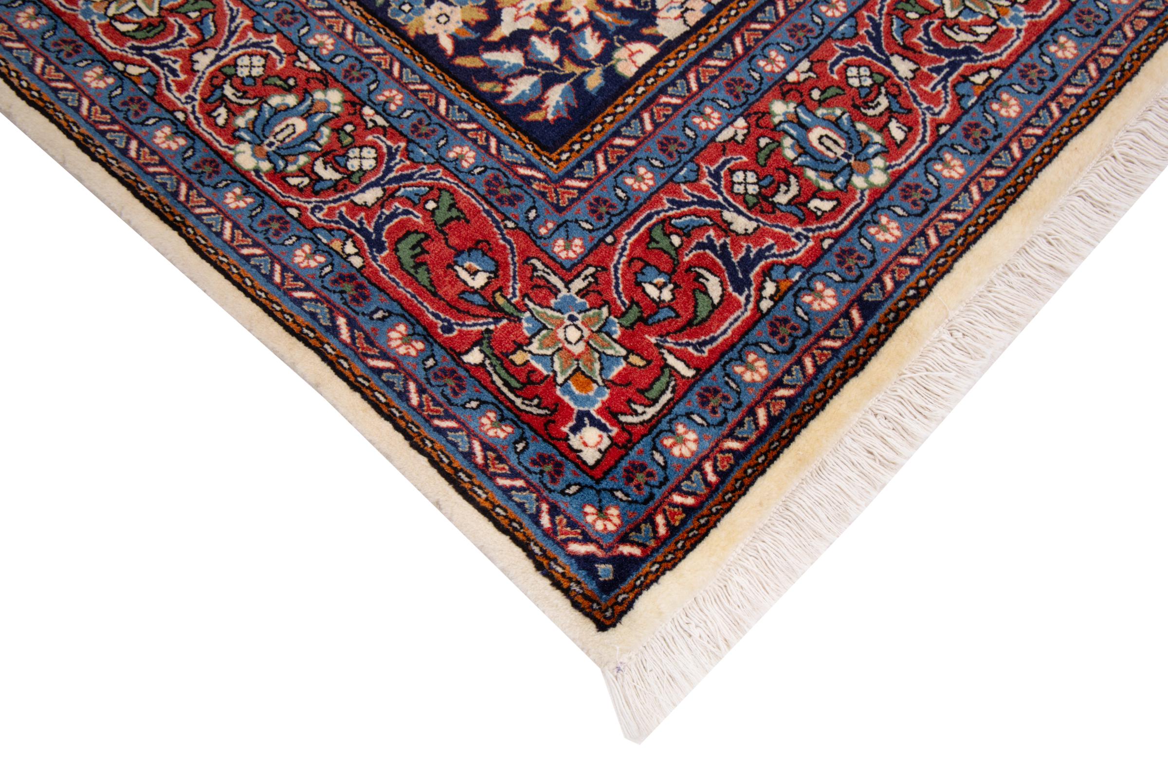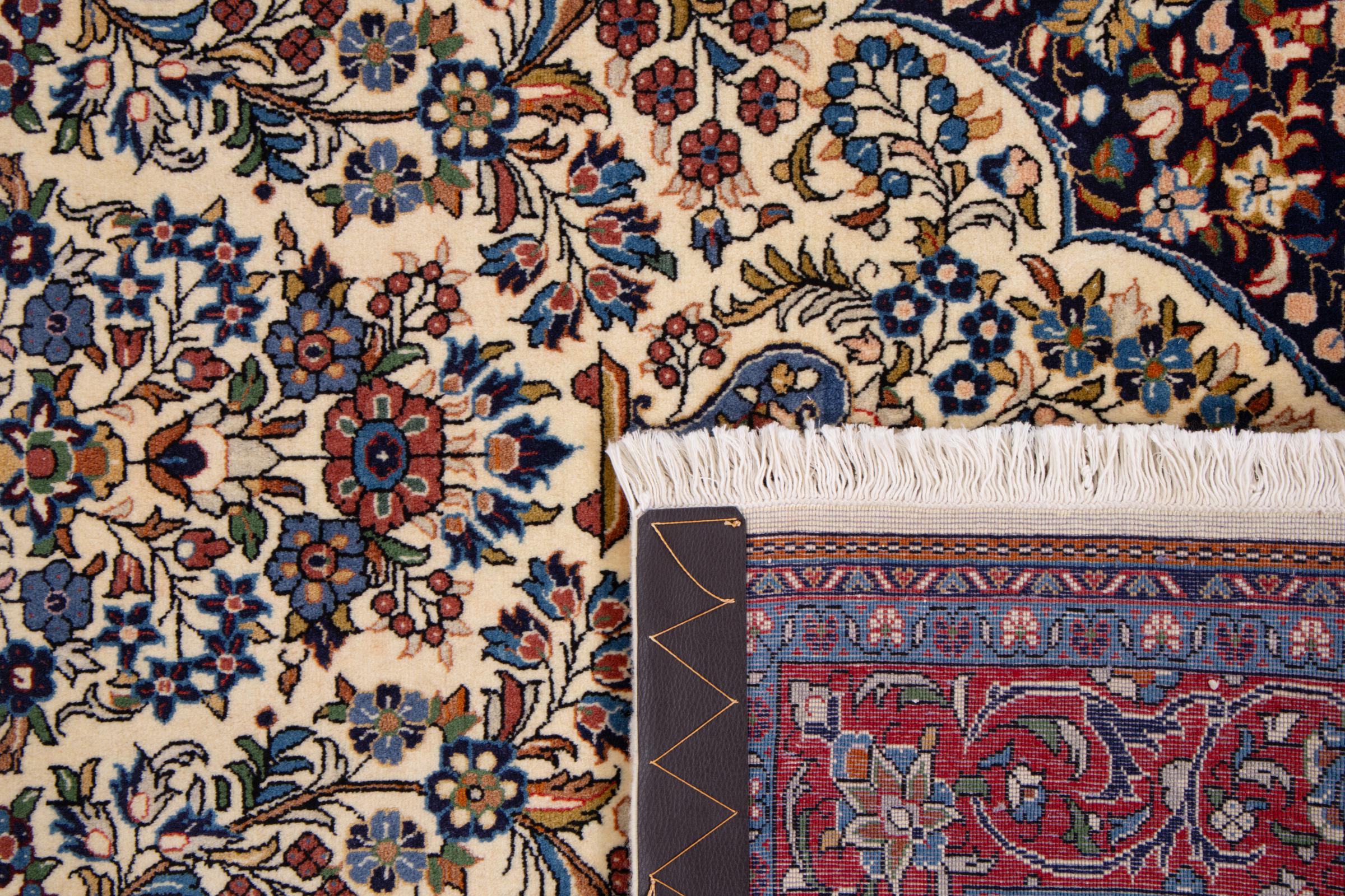 Esta alfombra está hecha de lana de oveja hilada a mano de la más alta calidad. Especialmente en Irán (antigua Persia), la lana de Afganistán y Pakistán sigue siendo hilada a mano antes de que comience el anudado de la alfombra. La lana ha demostrado ser un material natural y extremadamente resistente a lo largo de los siglos. Entre otras cosas, tiene propiedades repelentes de la suciedad y aislantes del calor. Al mismo tiempo, la lana es incomparablemente suave y tiene un brillo natural.