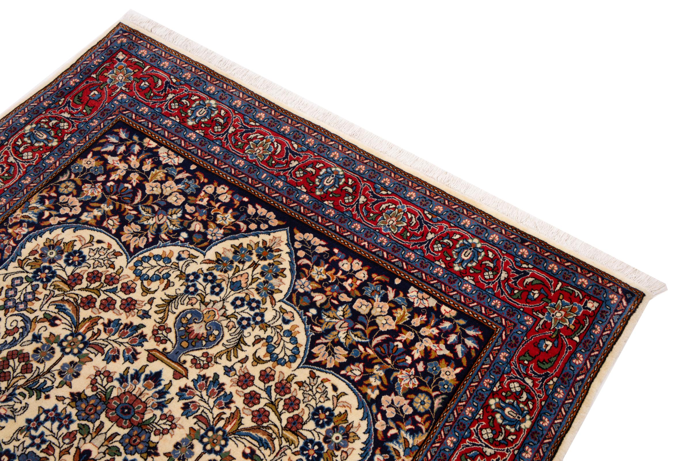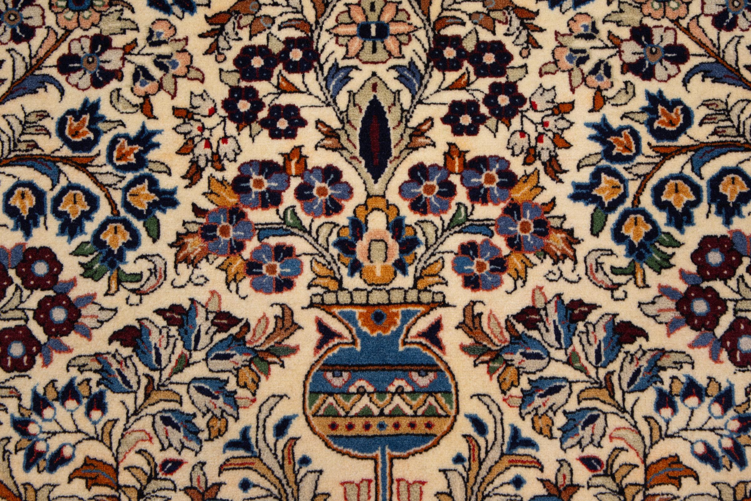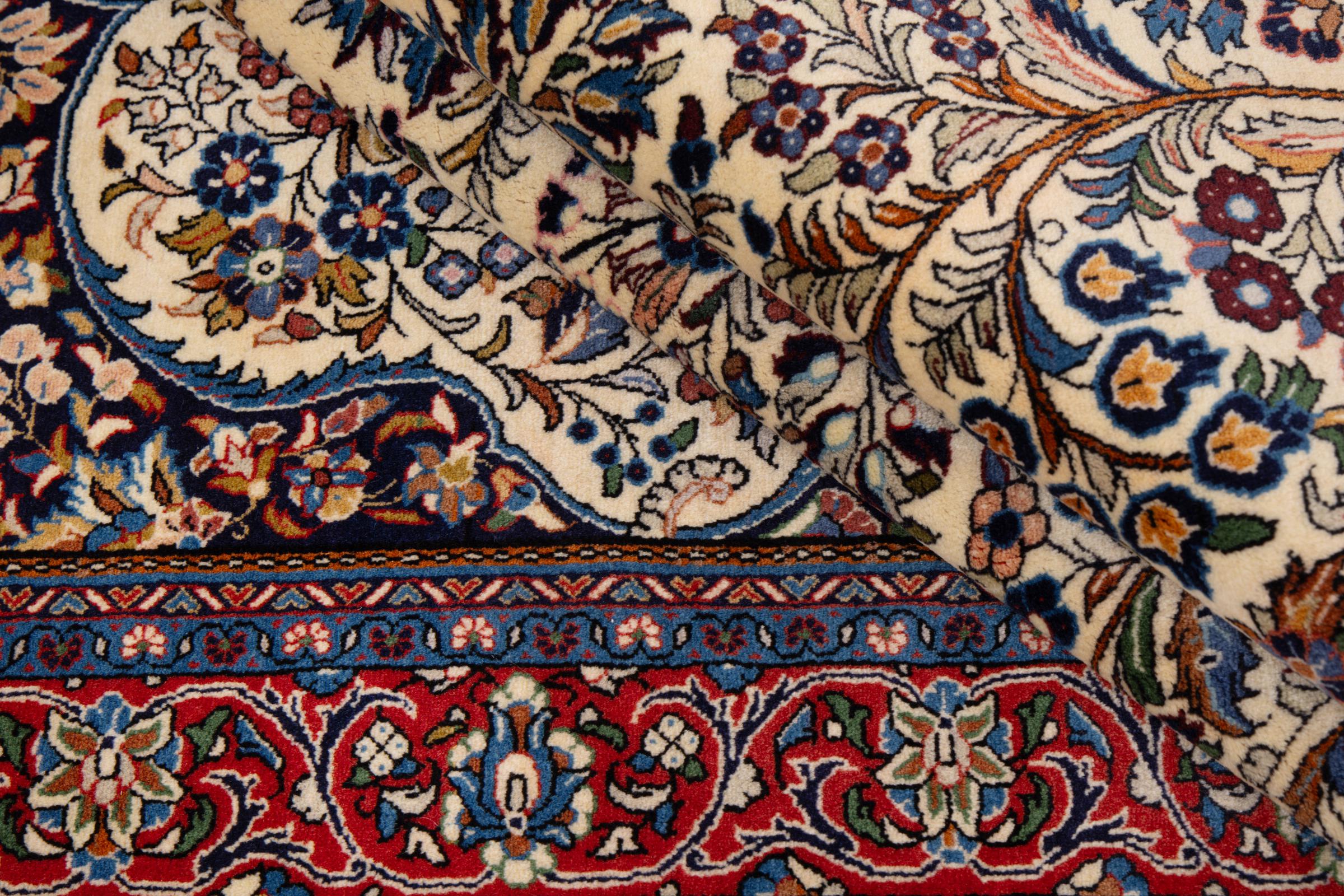 Esta alfombra está hecha de lana de oveja hilada a mano de la más alta calidad. Especialmente en Irán (antigua Persia), la lana de Afganistán y Pakistán sigue siendo hilada a mano antes de que comience el anudado de la alfombra. La lana ha demostrado ser un material natural y extremadamente resistente a lo largo de los siglos. Entre otras cosas, tiene propiedades repelentes de la suciedad y aislantes del calor. Al mismo tiempo, la lana es incomparablemente suave y tiene un brillo natural.