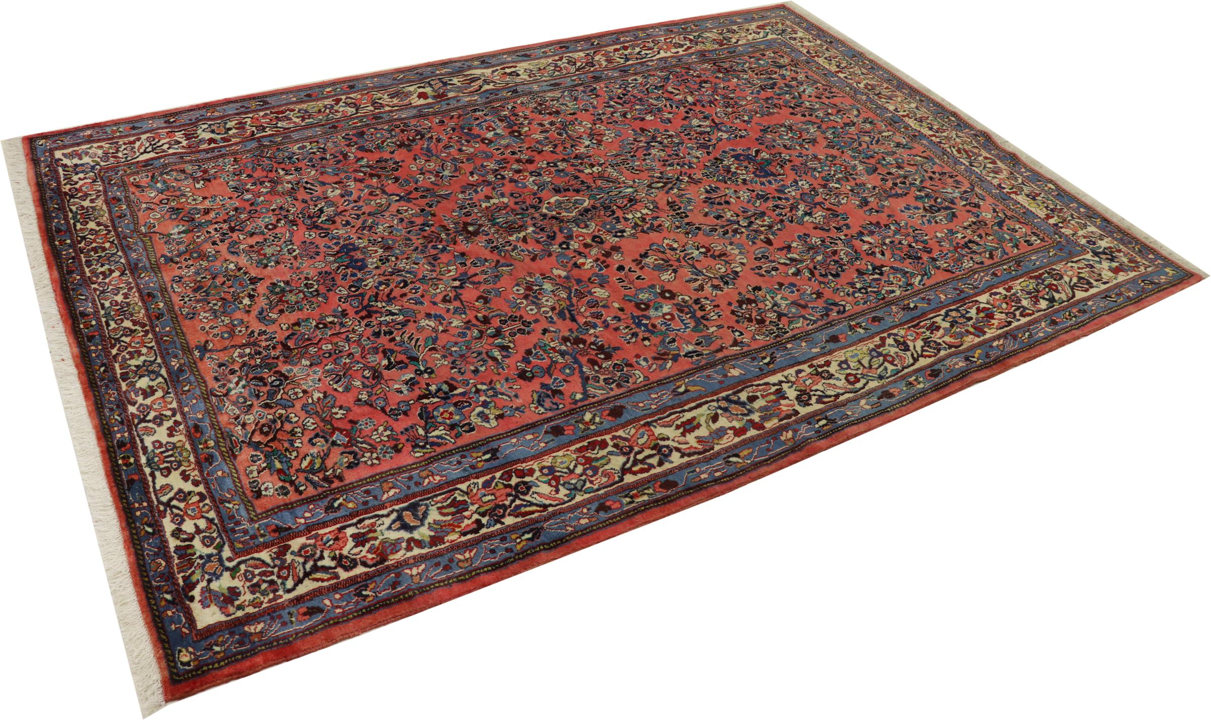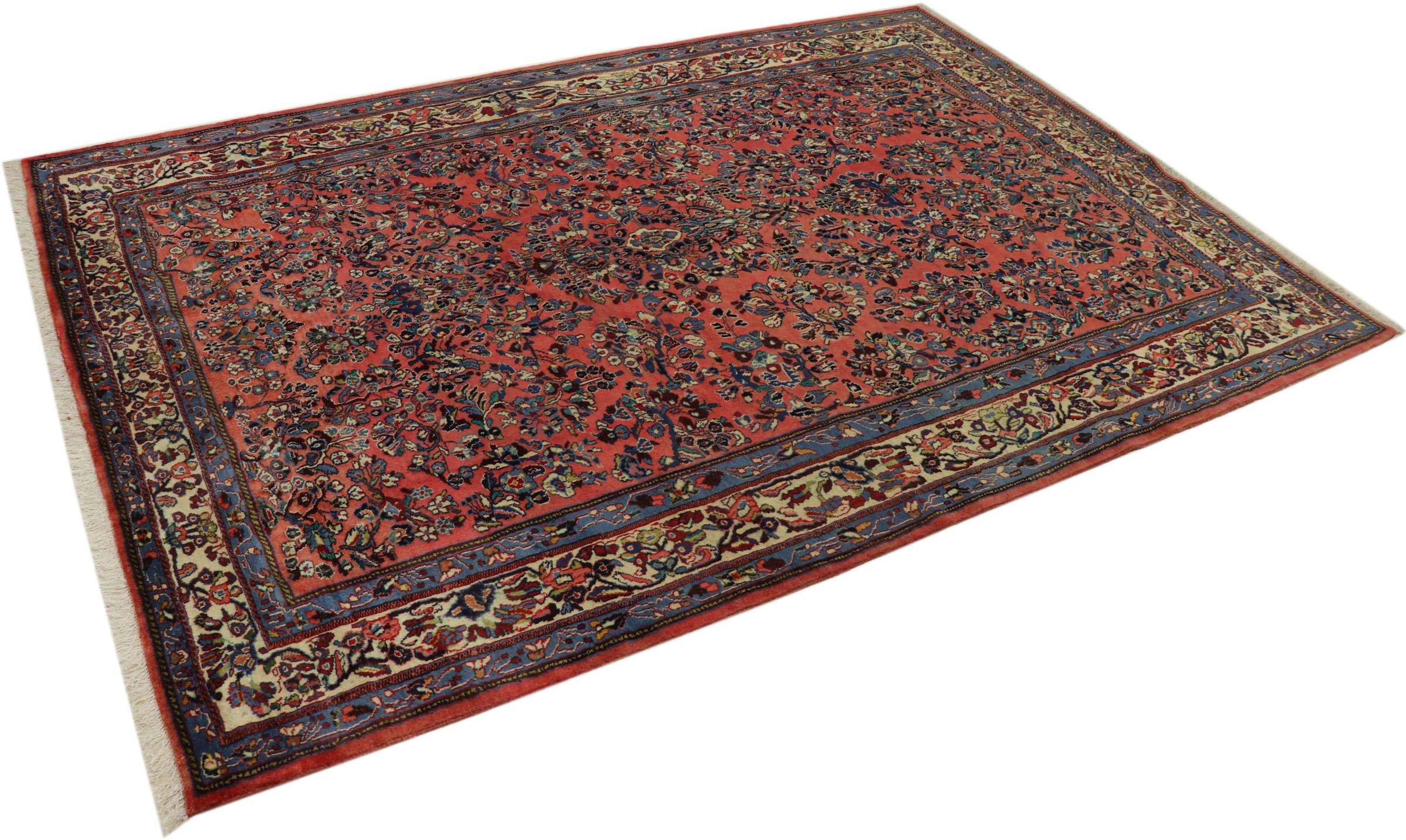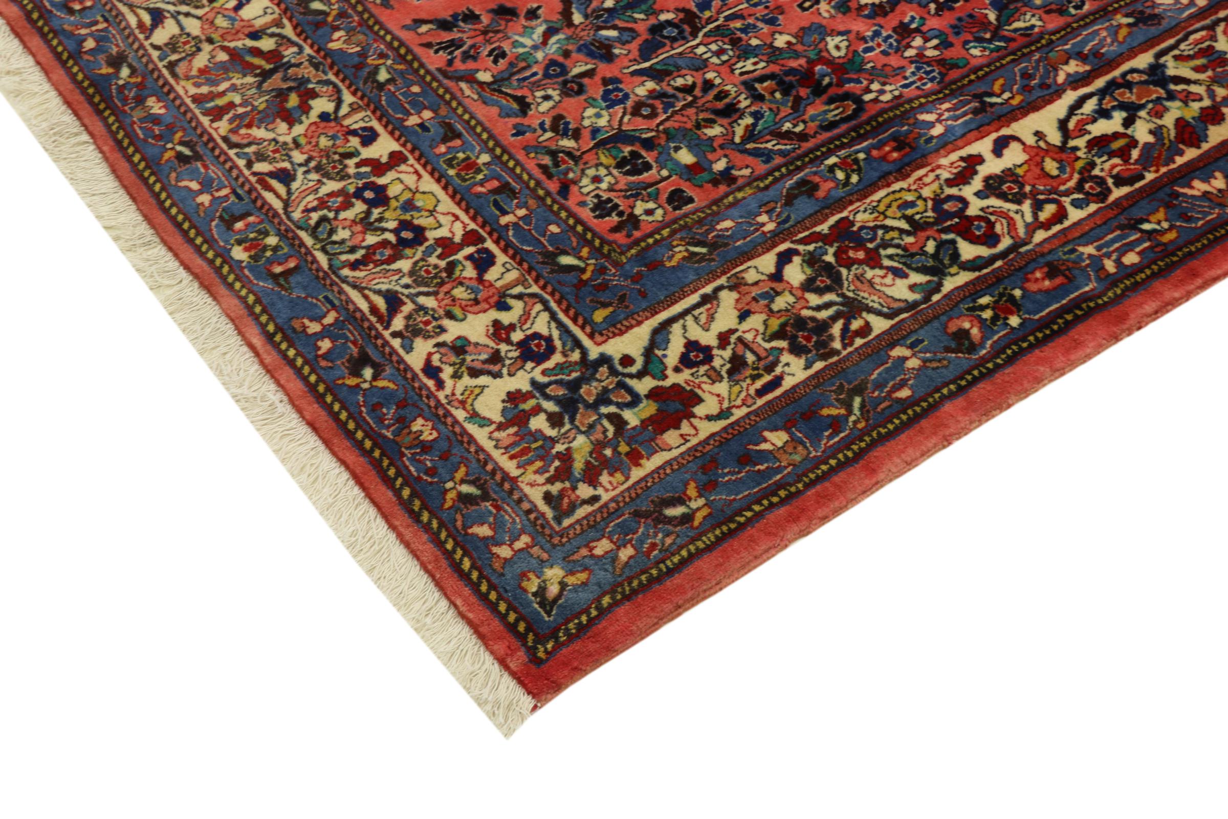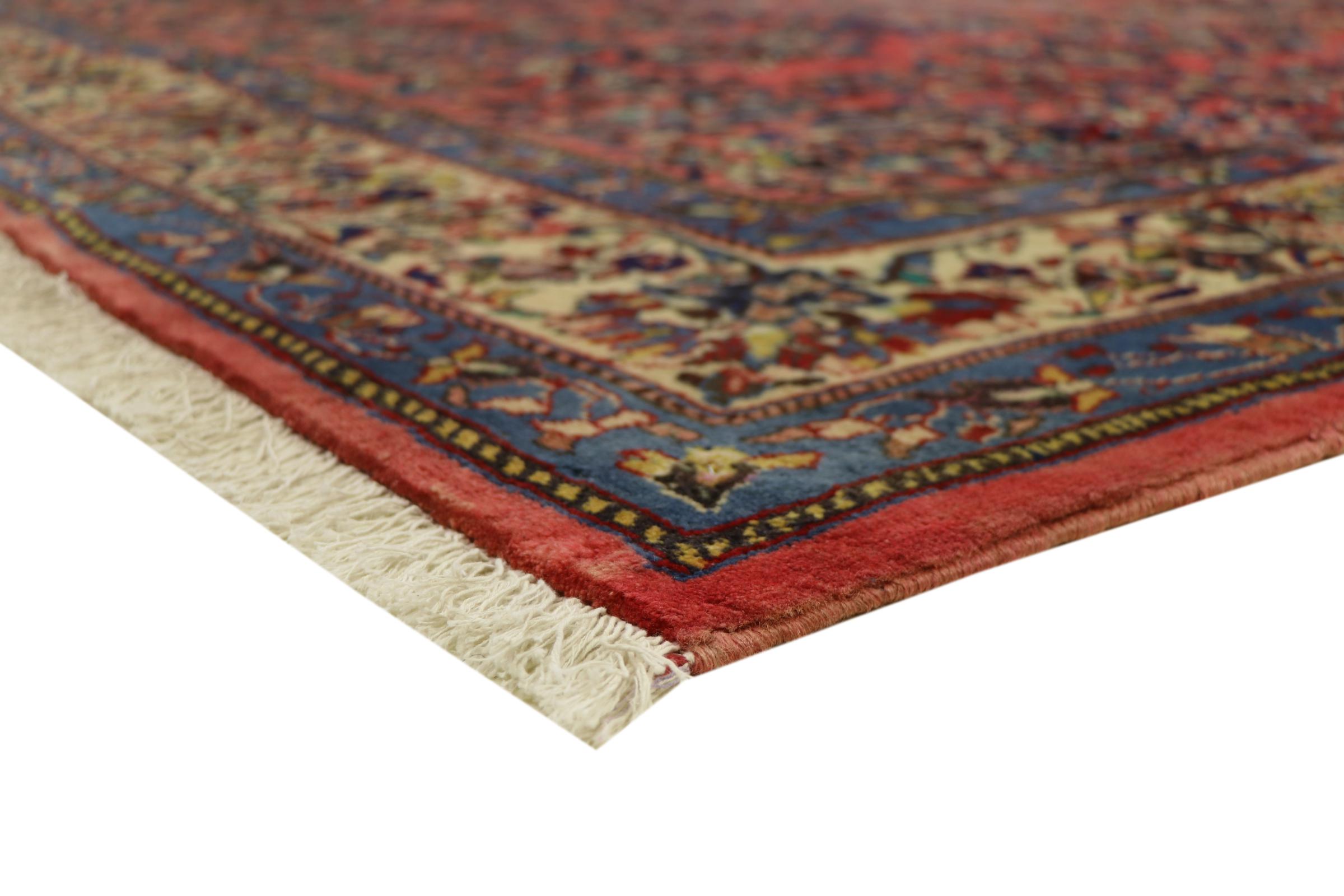 Esta alfombra persa se anudó a mano en Arak. Esta región es sinónimo de alfombras pesadas de gran calidad y robustez. Las alfombras Sarough también son muy populares gracias a sus atrevidos colores y bellos adornos. Esta alfombra es una obra de arte intemporal.
