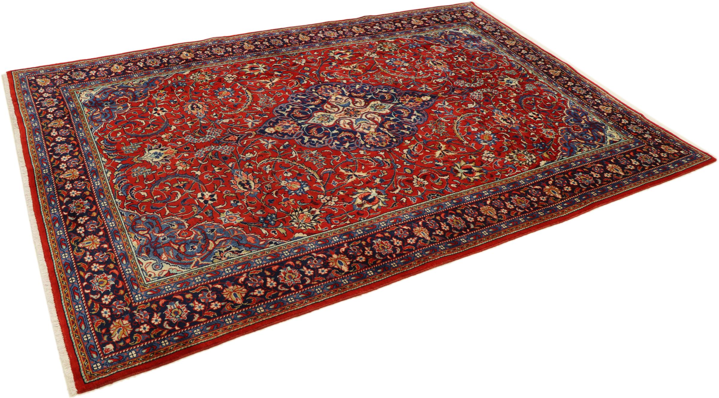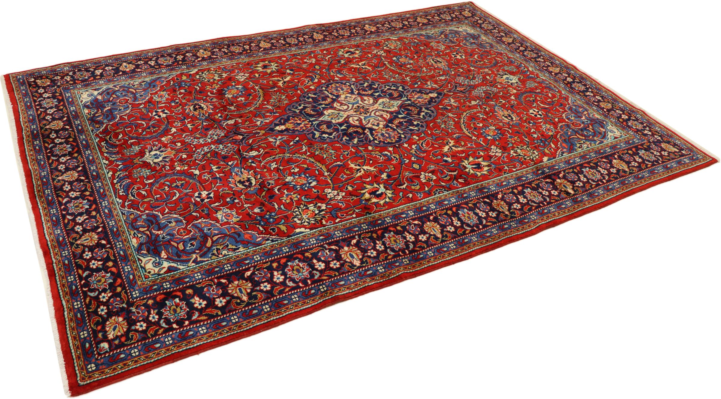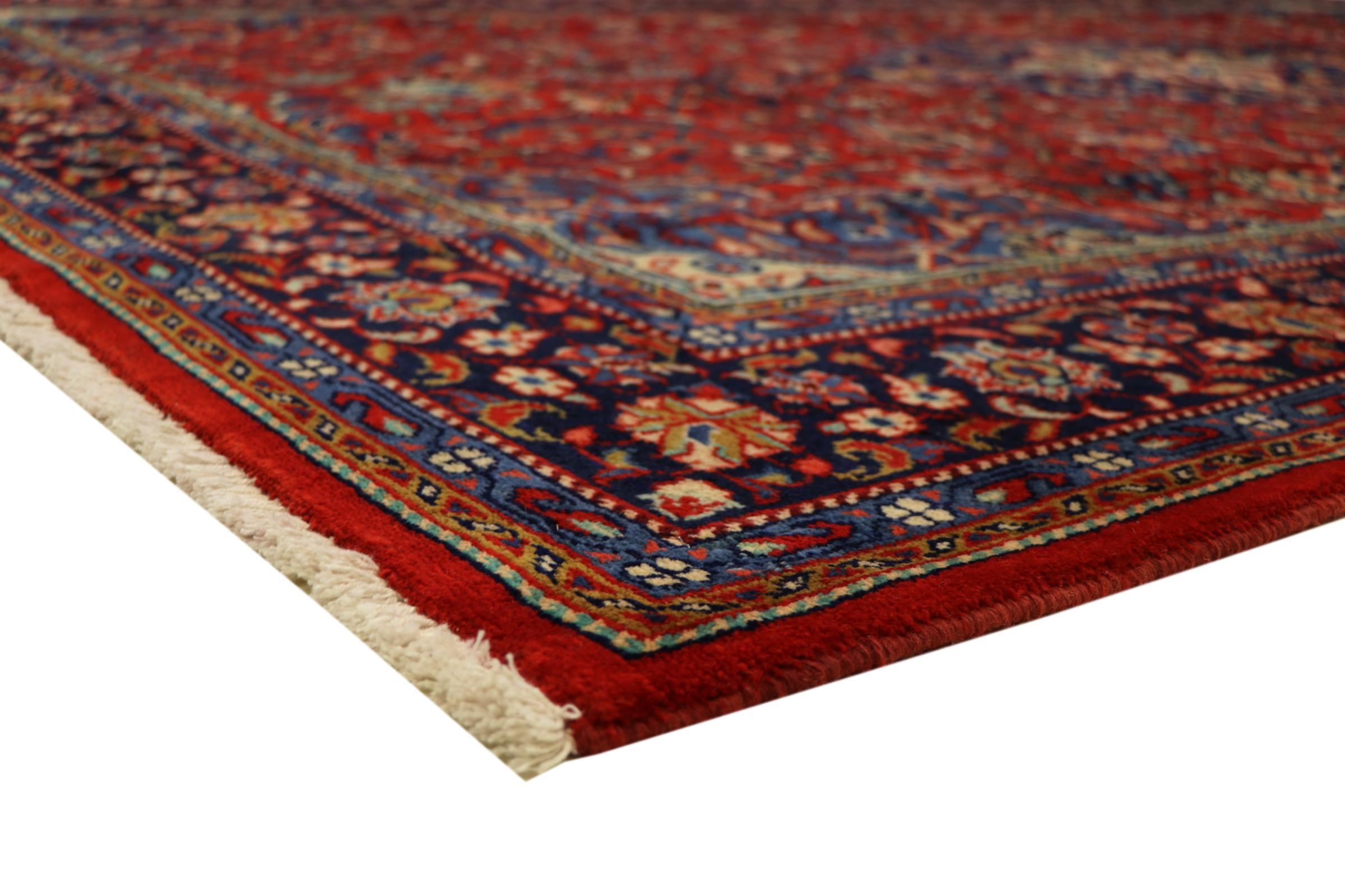 Esta alfombra persa se anudó a mano en Arak. Esta región es sinónimo de alfombras pesadas de gran calidad y robustez. Las alfombras Sarough también son muy populares gracias a sus atrevidos colores y bellos adornos. Esta alfombra es una obra de arte intemporal.