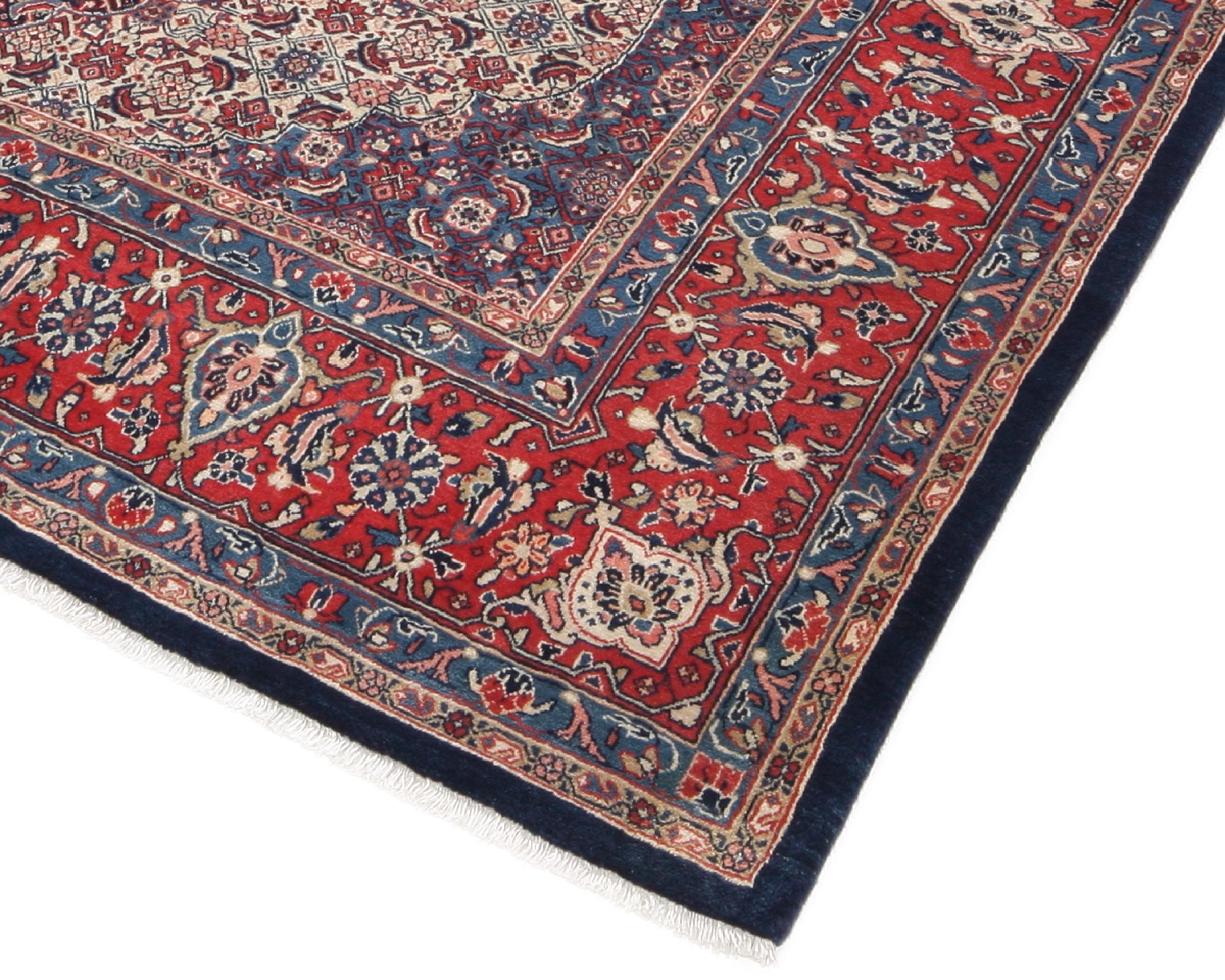 Esta alfombra persa se anudó a mano en Arak. Esta región es sinónimo de alfombras pesadas de gran calidad y robustez. Las alfombras Sarough también son muy populares gracias a sus atrevidos colores y bellos adornos. Esta alfombra es una obra de arte intemporal.