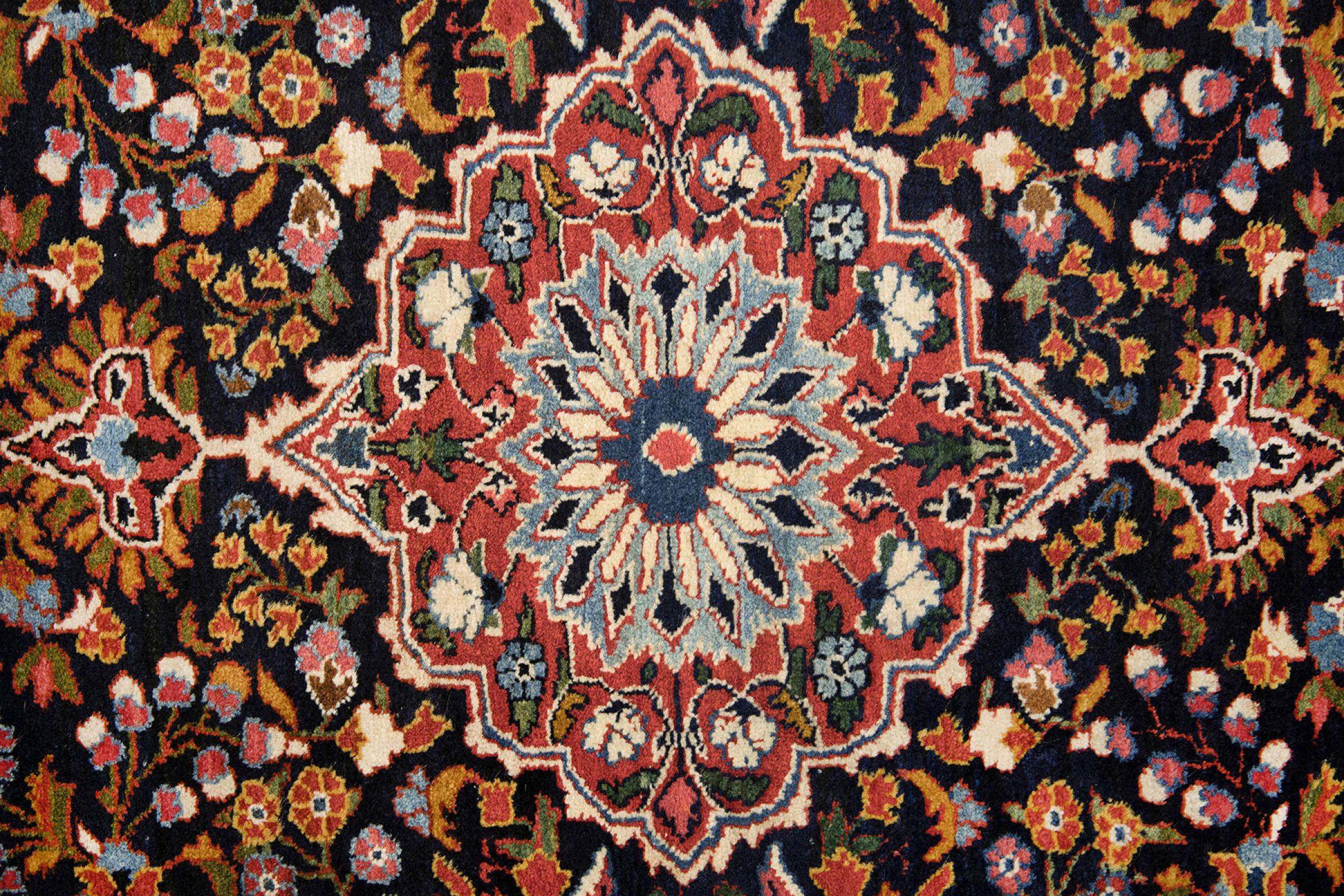 Esta alfombra Sarough antigua, finamente anudada a mano, es un ejemplo de la alta calidad que se fabrica en este pequeño pueblo de la región de Arak. Ha sido inspeccionada y cuidada por nuestros expertos para garantizar su bello estado. Esta alfombra antigua demuestra la durabilidad tan valiosa de las alfombras Sarough. Es una verdadera inversión, porque las alfombras Sarough antiguas son una rareza y ya no se anudan así.