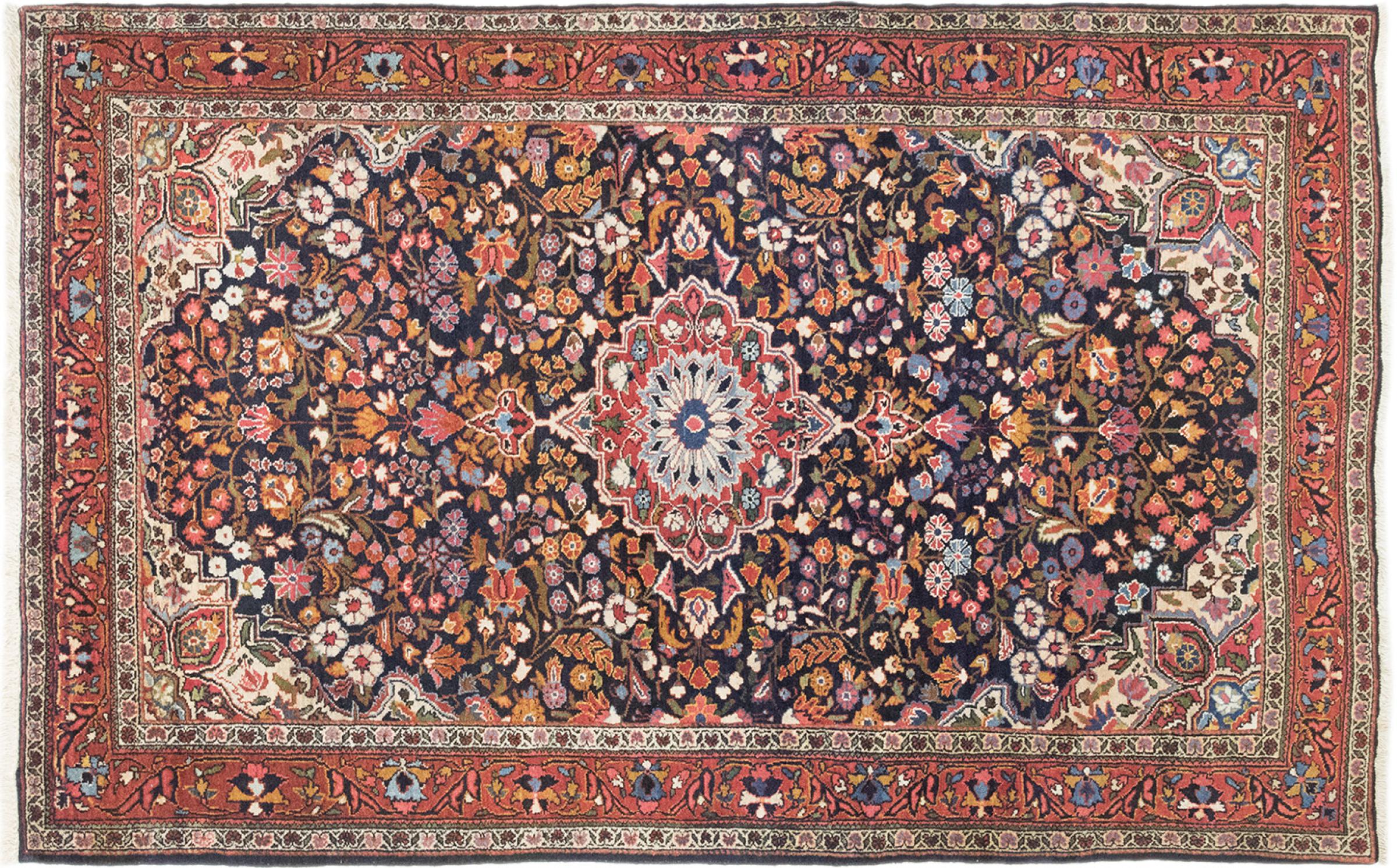 Alfombra número: 316464002942136 Tamaño: 179x118 cm Espesor: alrededor de 12 mm Nudos: 160 000 - 200 000 / m² Elaboración: Anudado a mano Crespón: Lana hilada a mano Urdimbre: Algodón Estado / Conservación Perfecta Origen: Persia / Iran Edad: Antigua, mayor de 80 años Peso: alrededor de 8 kg Cantidad en stock: Única - Solo 1 en stock