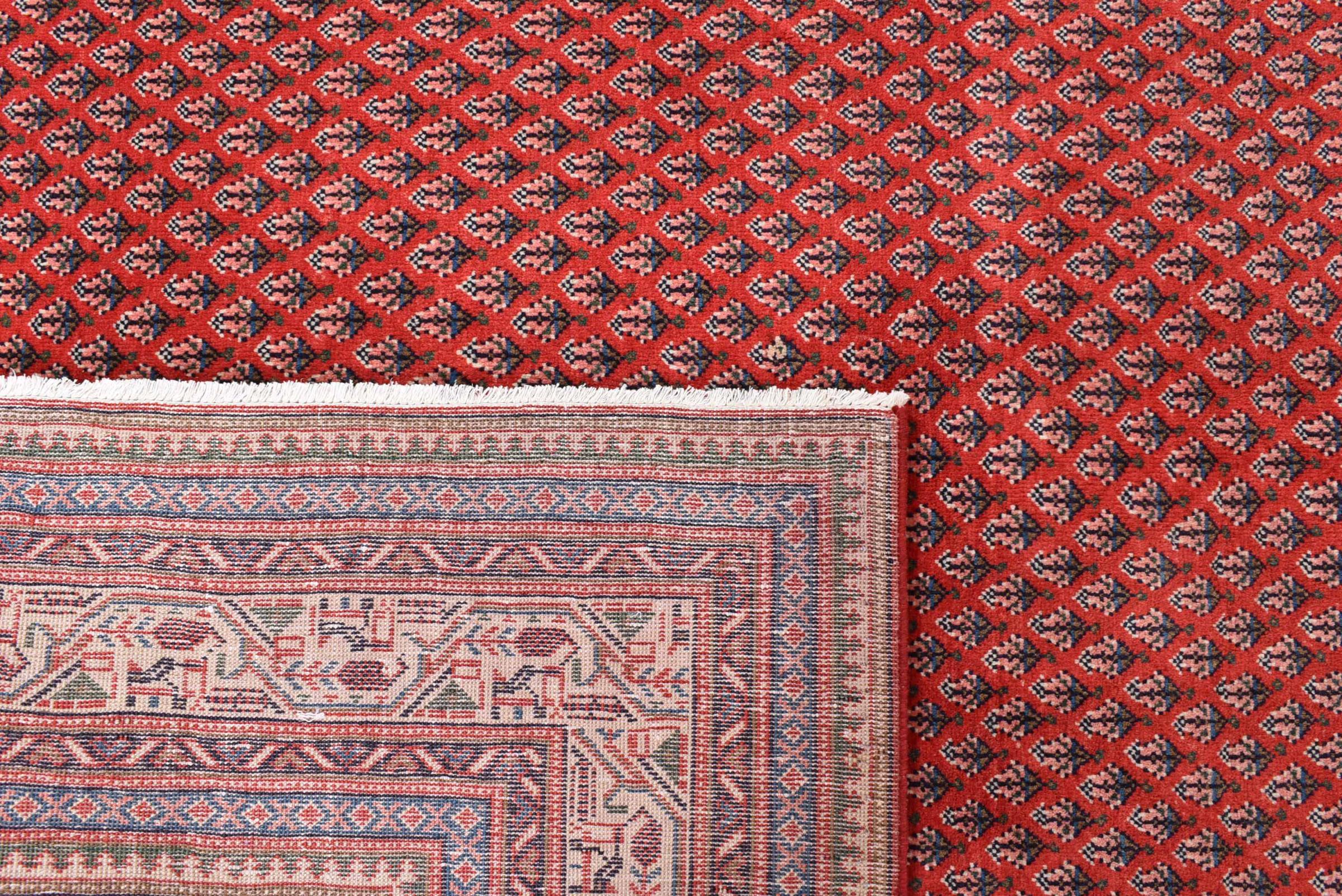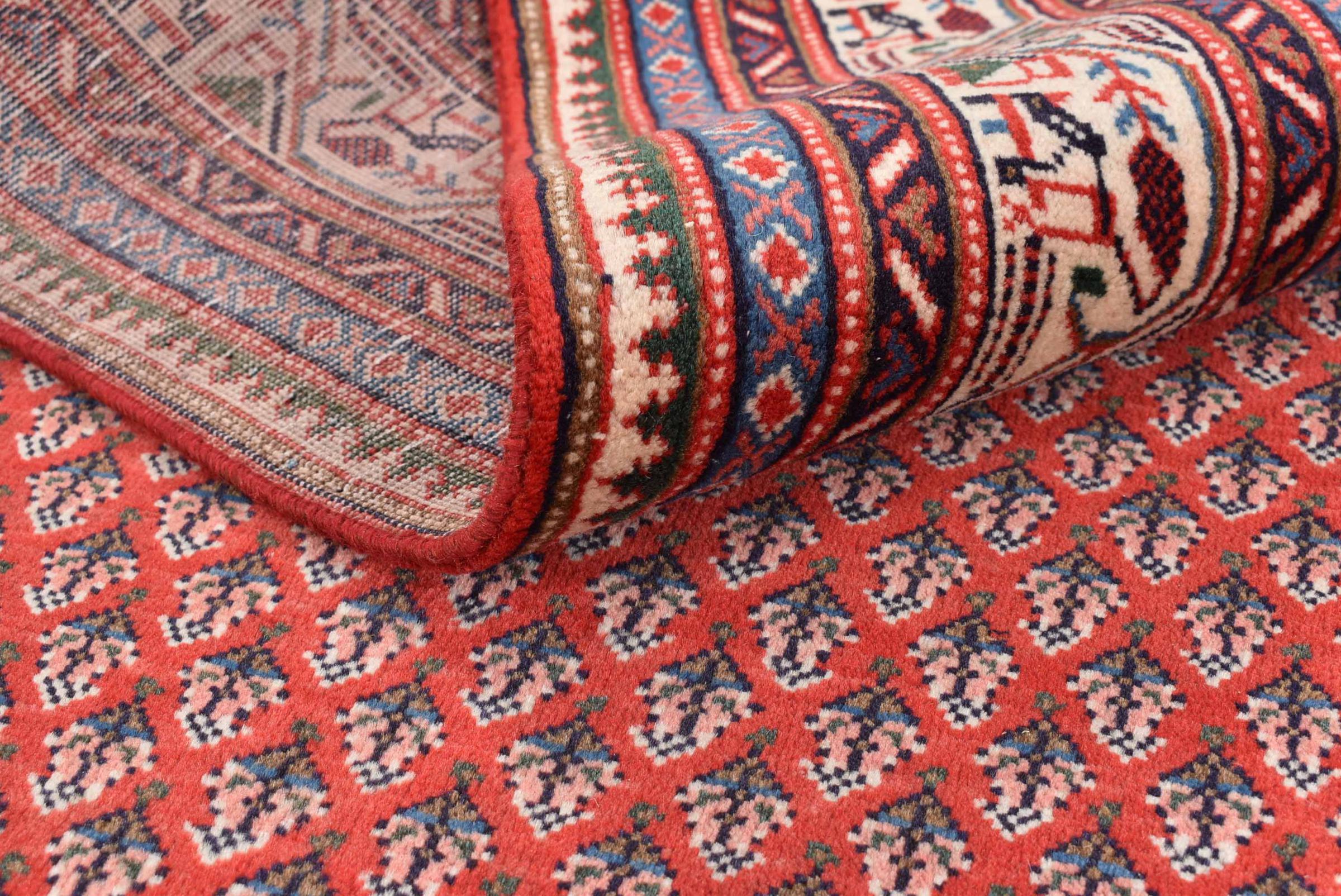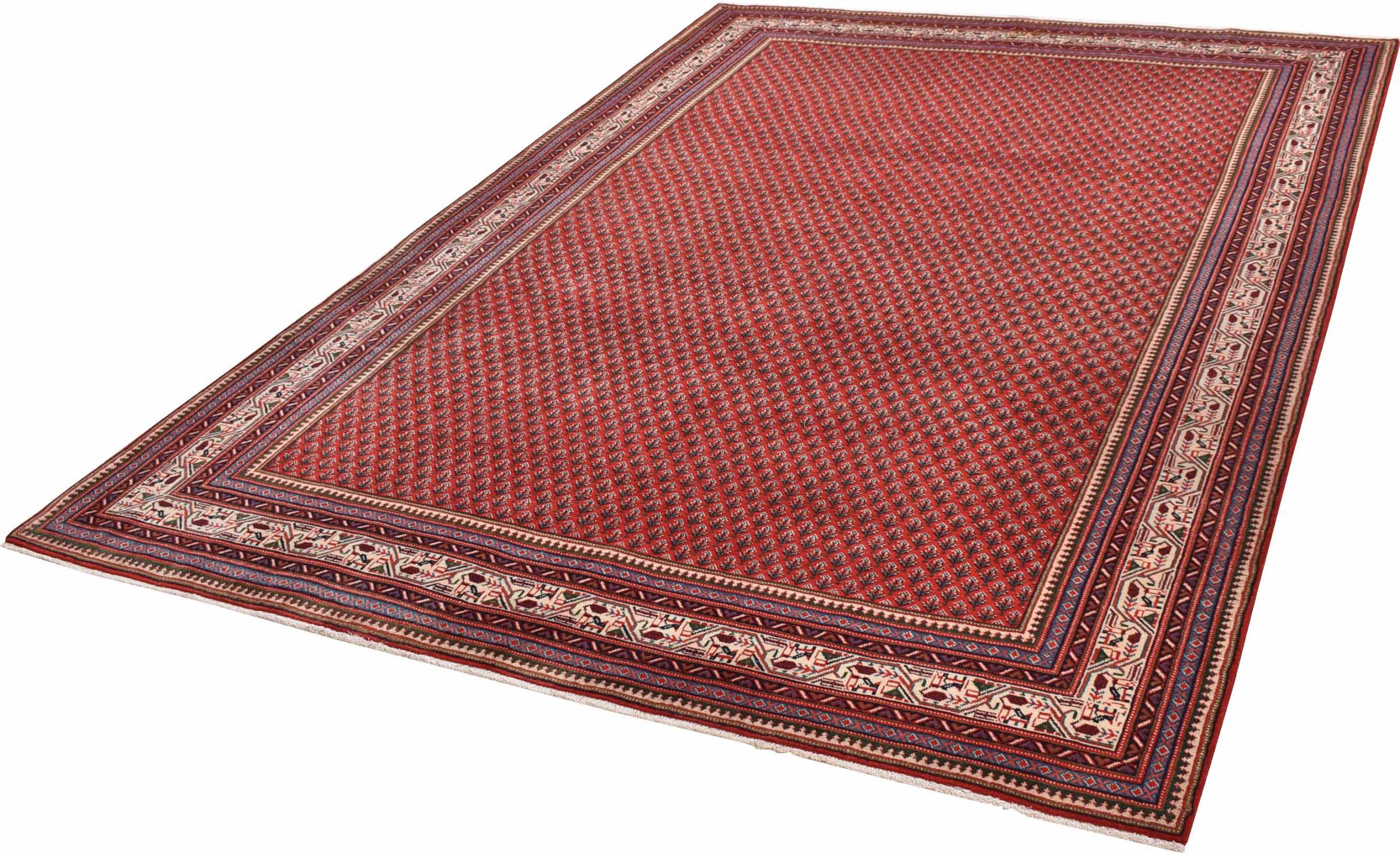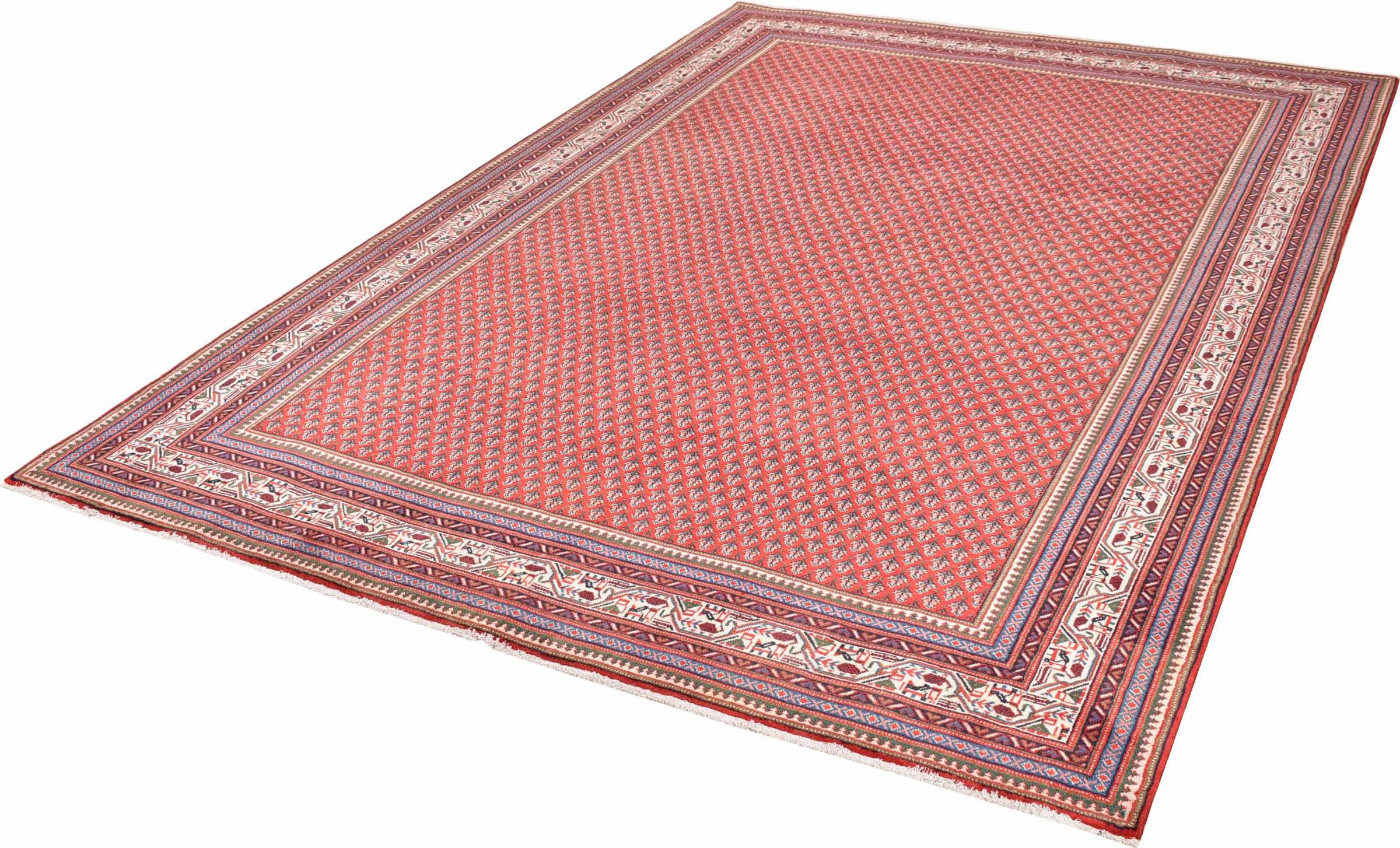 Esta alfombra Sarough Mir tiene un dibujo muy típico, también llamado diseño all-over. Es claro y evita deliberadamente los adornos curvos. De este modo, la alfombra puede calmar una habitación y al mismo tiempo darle un acento de color vivo.