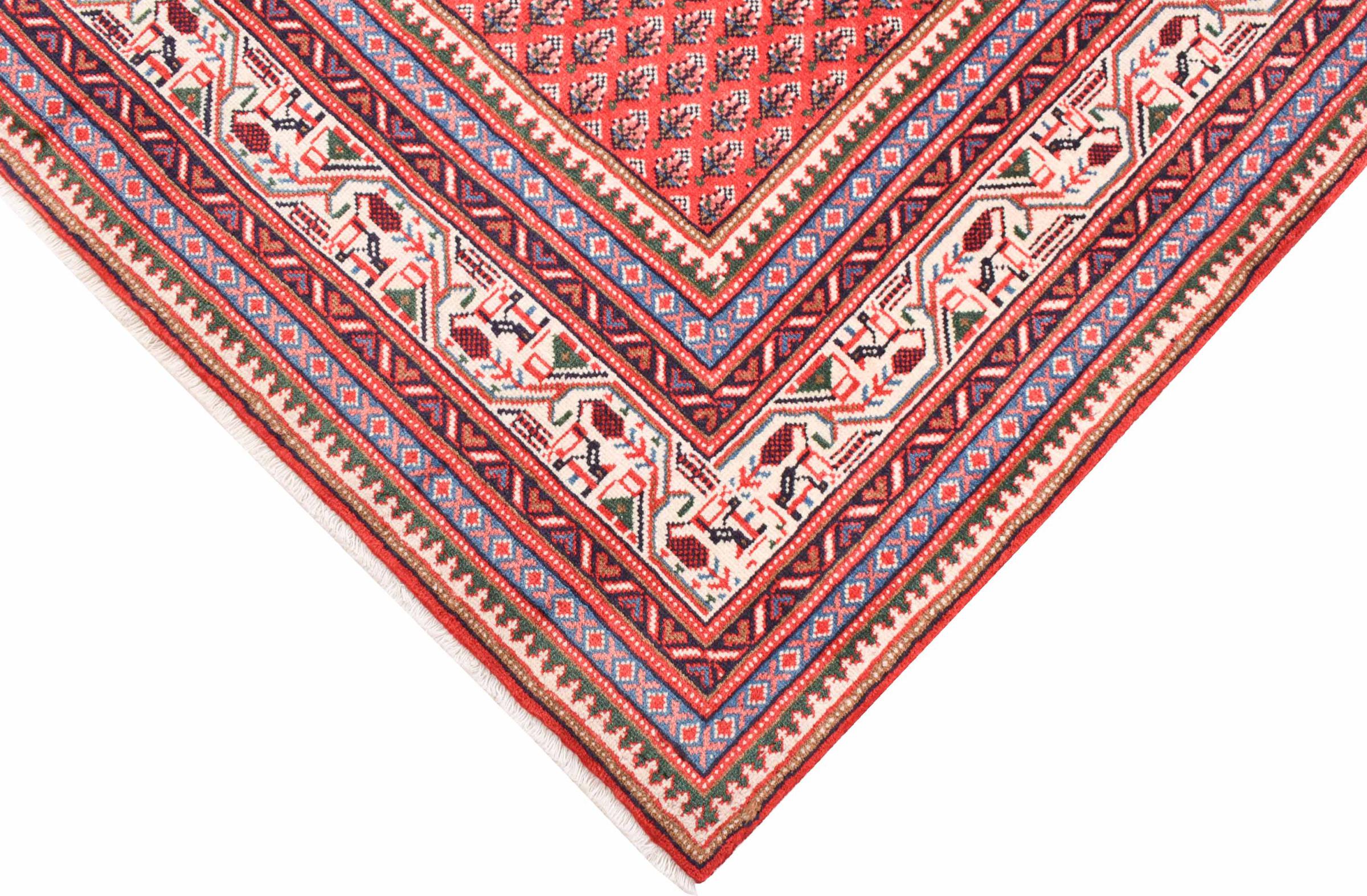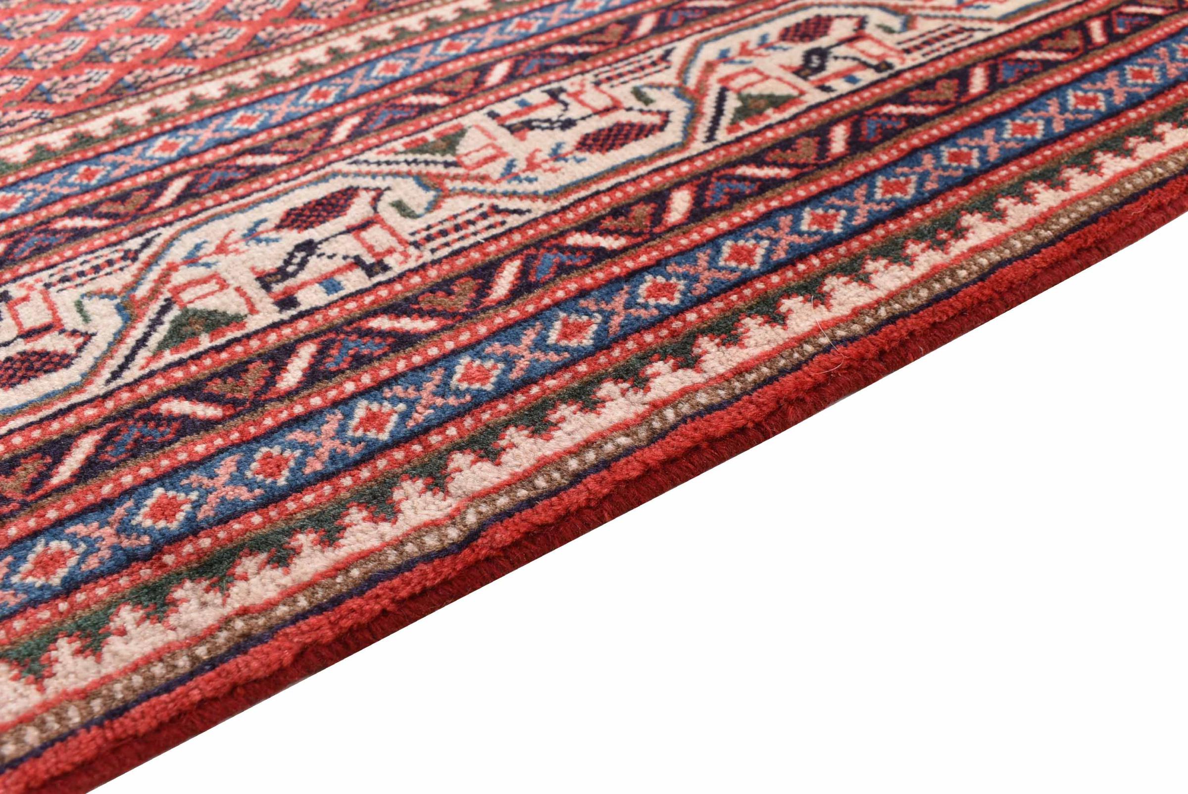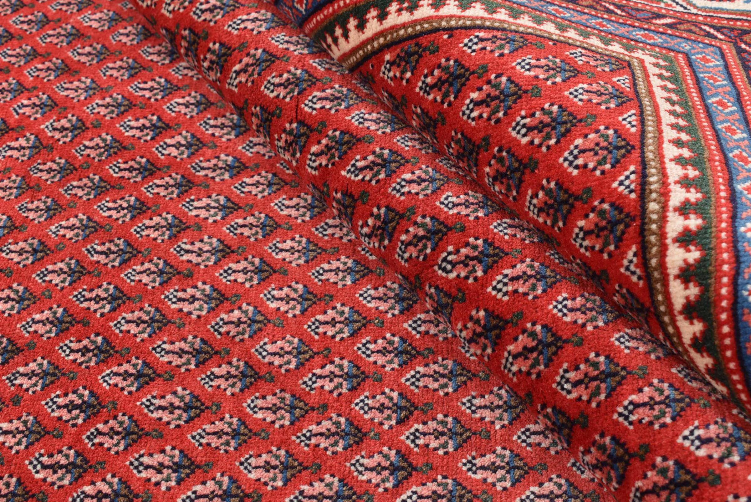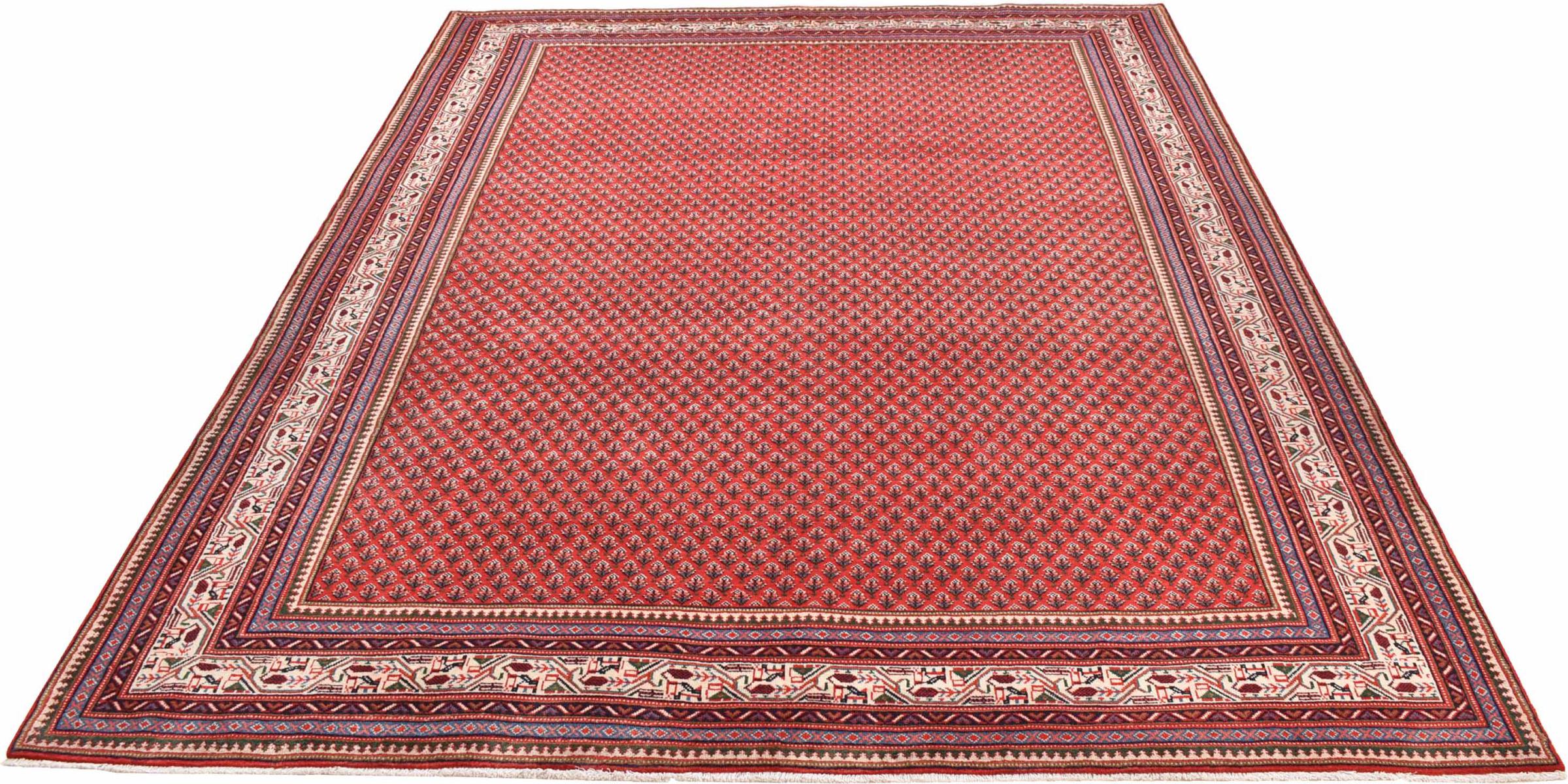 Esta alfombra Sarough Mir tiene un dibujo muy típico, también llamado diseño all-over. Es claro y evita deliberadamente los adornos curvos. De este modo, la alfombra puede calmar una habitación y al mismo tiempo darle un acento de color vivo.