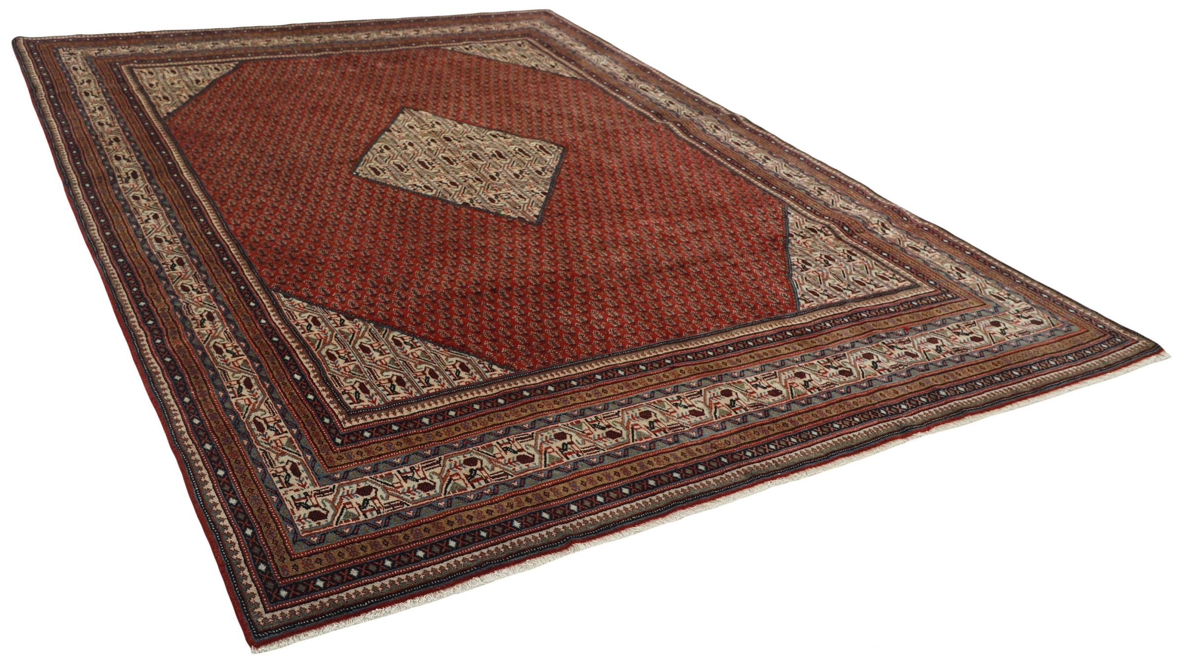 Esta alfombra Sarough Mir tiene un dibujo muy típico, también llamado diseño all-over. Es claro y evita deliberadamente los adornos curvos. De este modo, la alfombra puede calmar una habitación y al mismo tiempo darle un acento de color vivo.