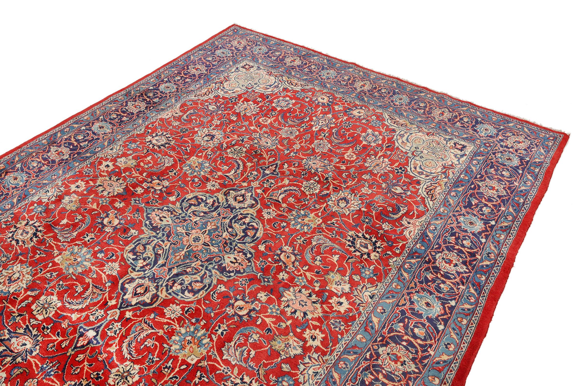 Esta alfombra Sarough antigua, finamente anudada a mano, es un ejemplo de la alta calidad que se fabrica en este pequeño pueblo de la región de Arak. Ha sido inspeccionada y cuidada por nuestros expertos para garantizar su bello estado. Esta alfombra antigua demuestra la durabilidad tan valiosa de las alfombras Sarough. Es una verdadera inversión, porque las alfombras Sarough antiguas son una rareza y ya no se anudan así.