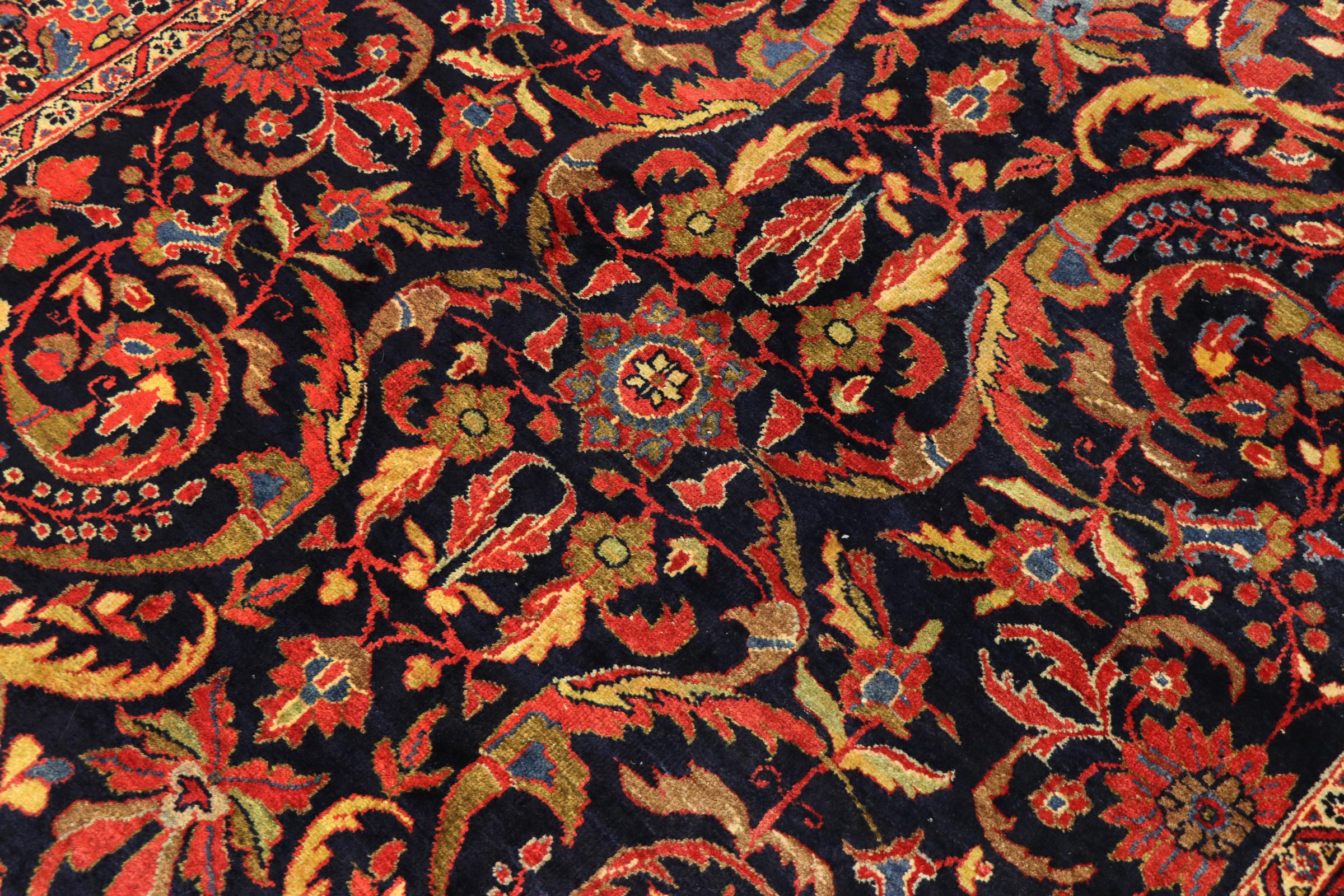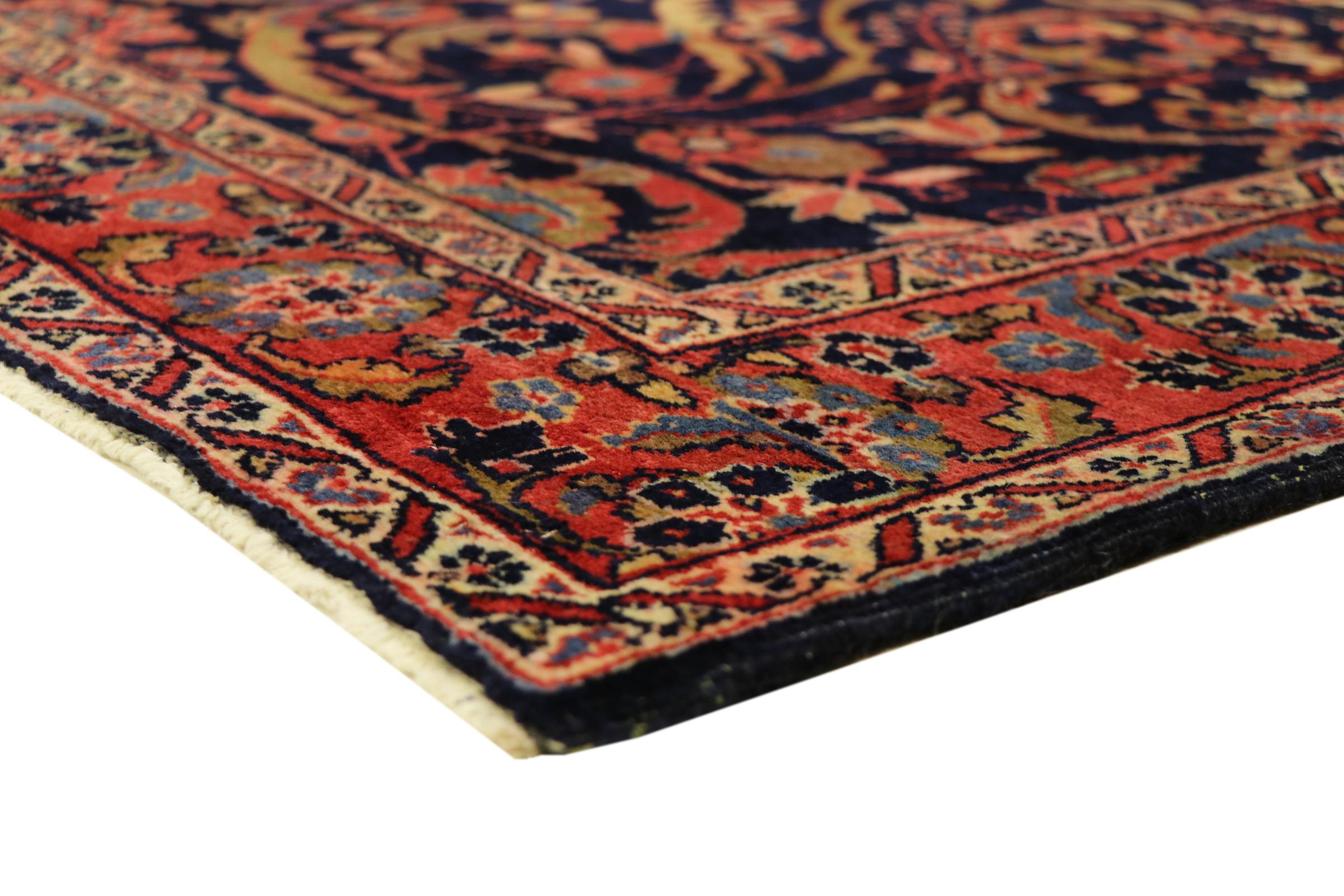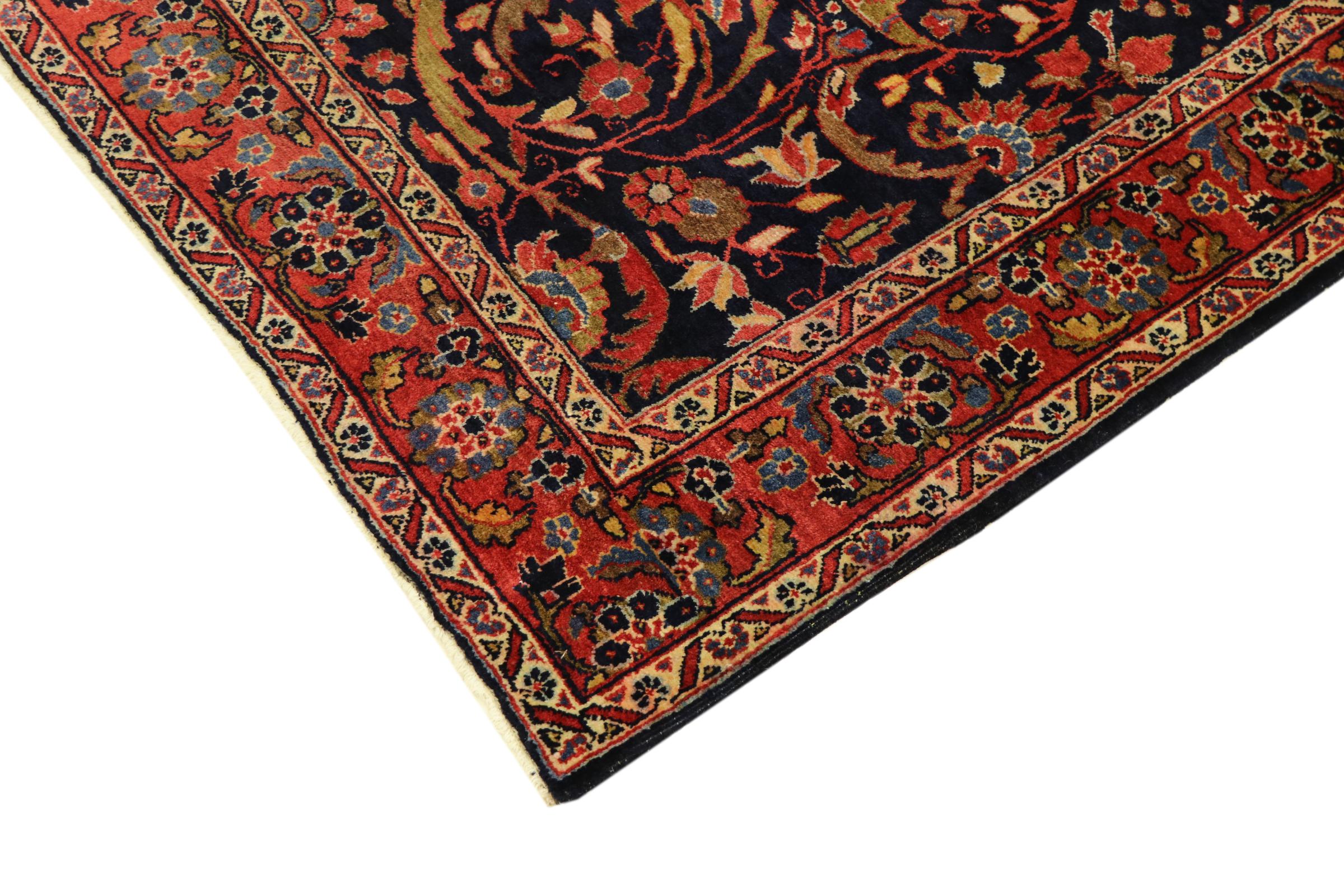 Esta alfombra Sarough antigua, finamente anudada a mano, es un ejemplo de la alta calidad que se fabrica en este pequeño pueblo de la región de Arak. Ha sido inspeccionada y cuidada por nuestros expertos para garantizar su bello estado. Esta alfombra antigua demuestra la durabilidad tan valiosa de las alfombras Sarough. Es una verdadera inversión, porque las alfombras Sarough antiguas son una rareza y ya no se anudan así.