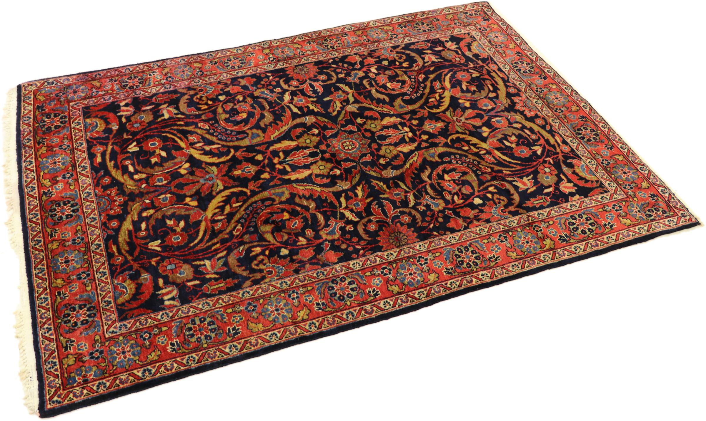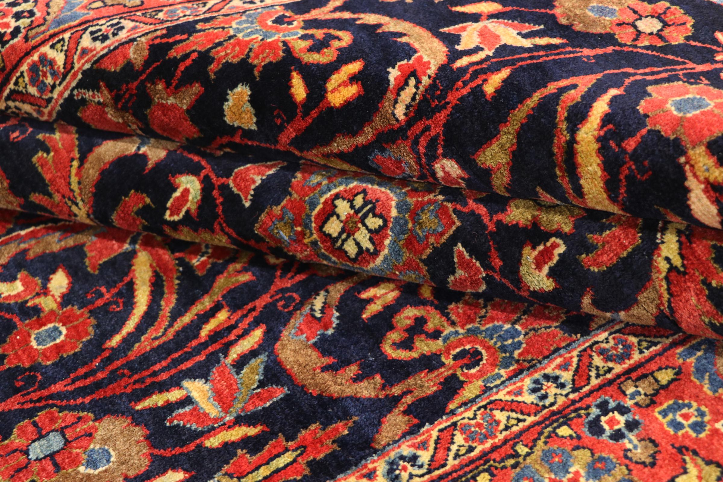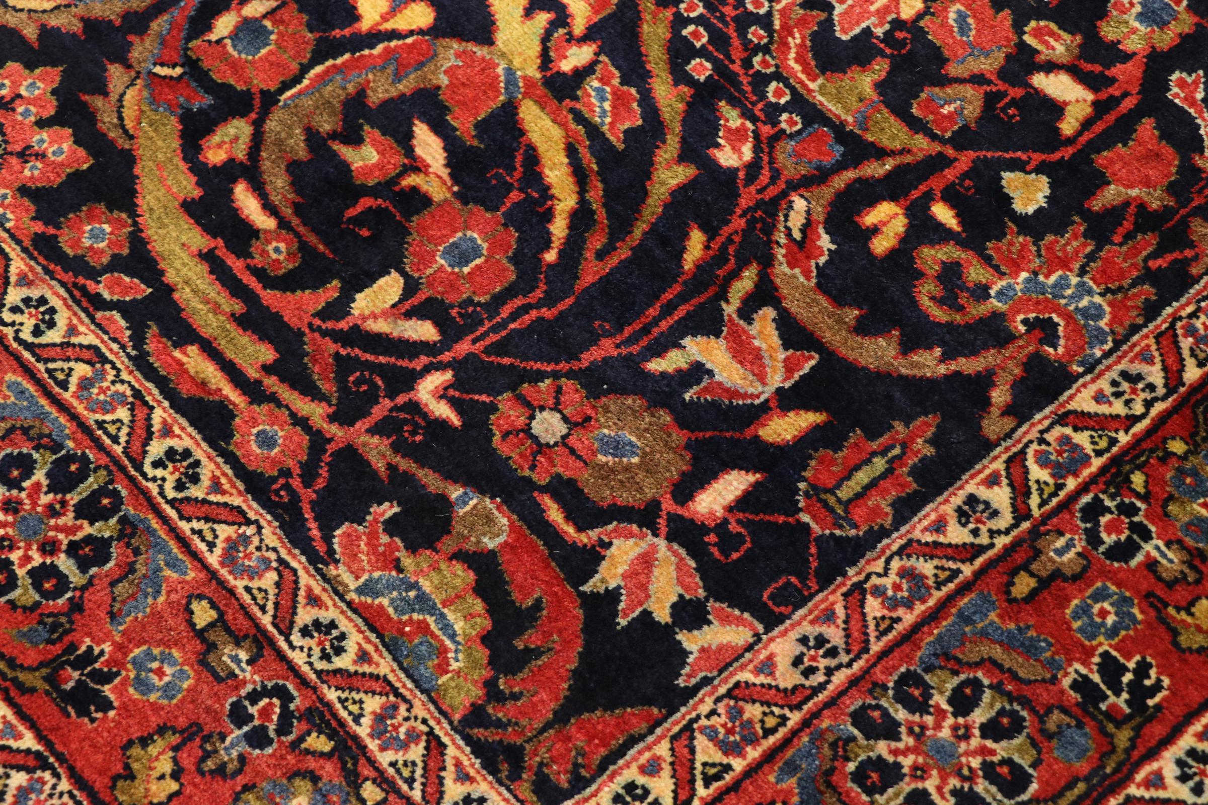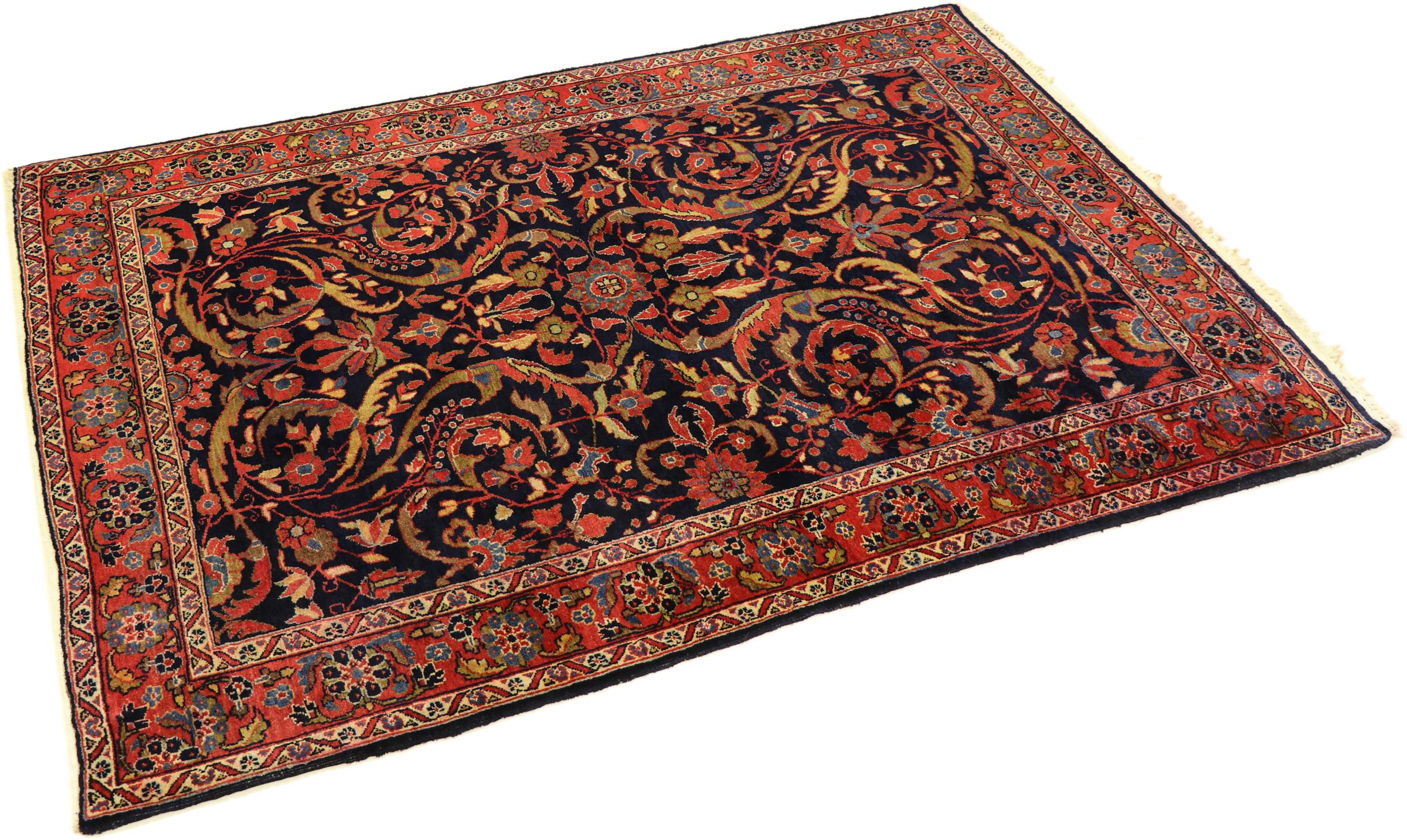 Esta alfombra Sarough antigua, finamente anudada a mano, es un ejemplo de la alta calidad que se fabrica en este pequeño pueblo de la región de Arak. Ha sido inspeccionada y cuidada por nuestros expertos para garantizar su bello estado. Esta alfombra antigua demuestra la durabilidad tan valiosa de las alfombras Sarough. Es una verdadera inversión, porque las alfombras Sarough antiguas son una rareza y ya no se anudan así.