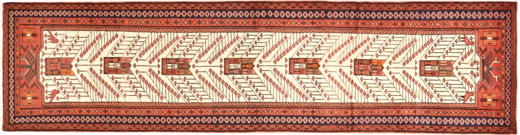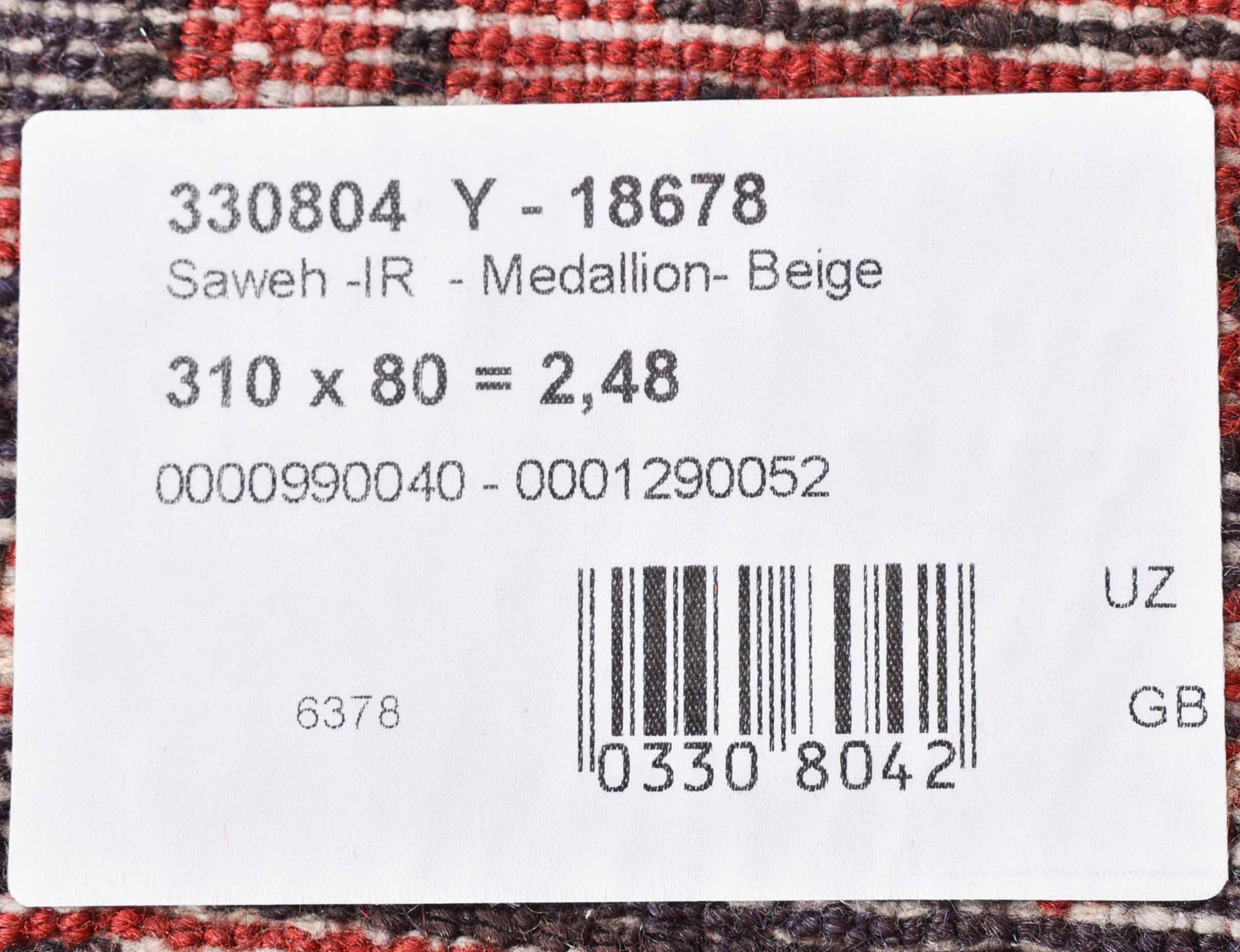 Alfombra número: 301011004694254 Tamaño: 309x79 cm Espesor: alrededor de 10 mm Nudos: 128 000 - 160 000 / m² Elaboración: Anudado a mano Crespón: Lana hilada a mano Urdimbre: Algodón Origen: Persia / Iran Edad: Nuevo Peso: alrededor de 9 kg También conocido como Huseinabad Cantidad en stock: Única - Solo 1 en stock