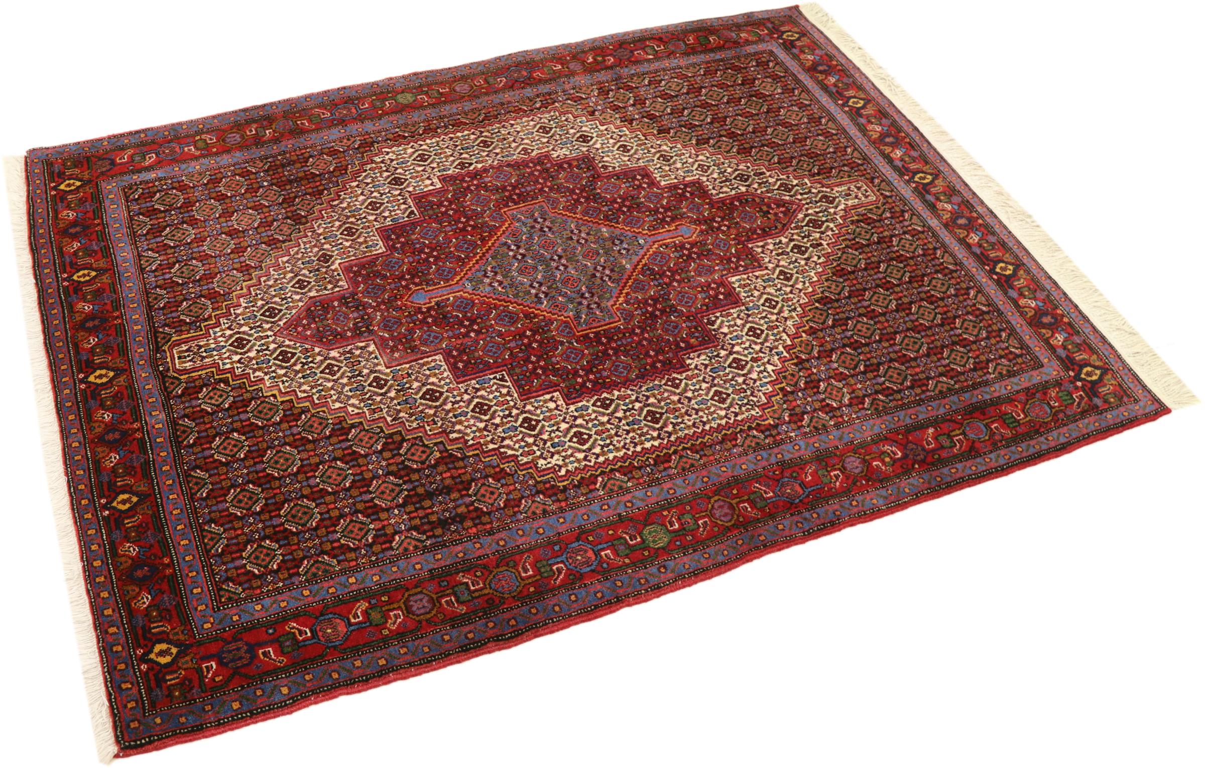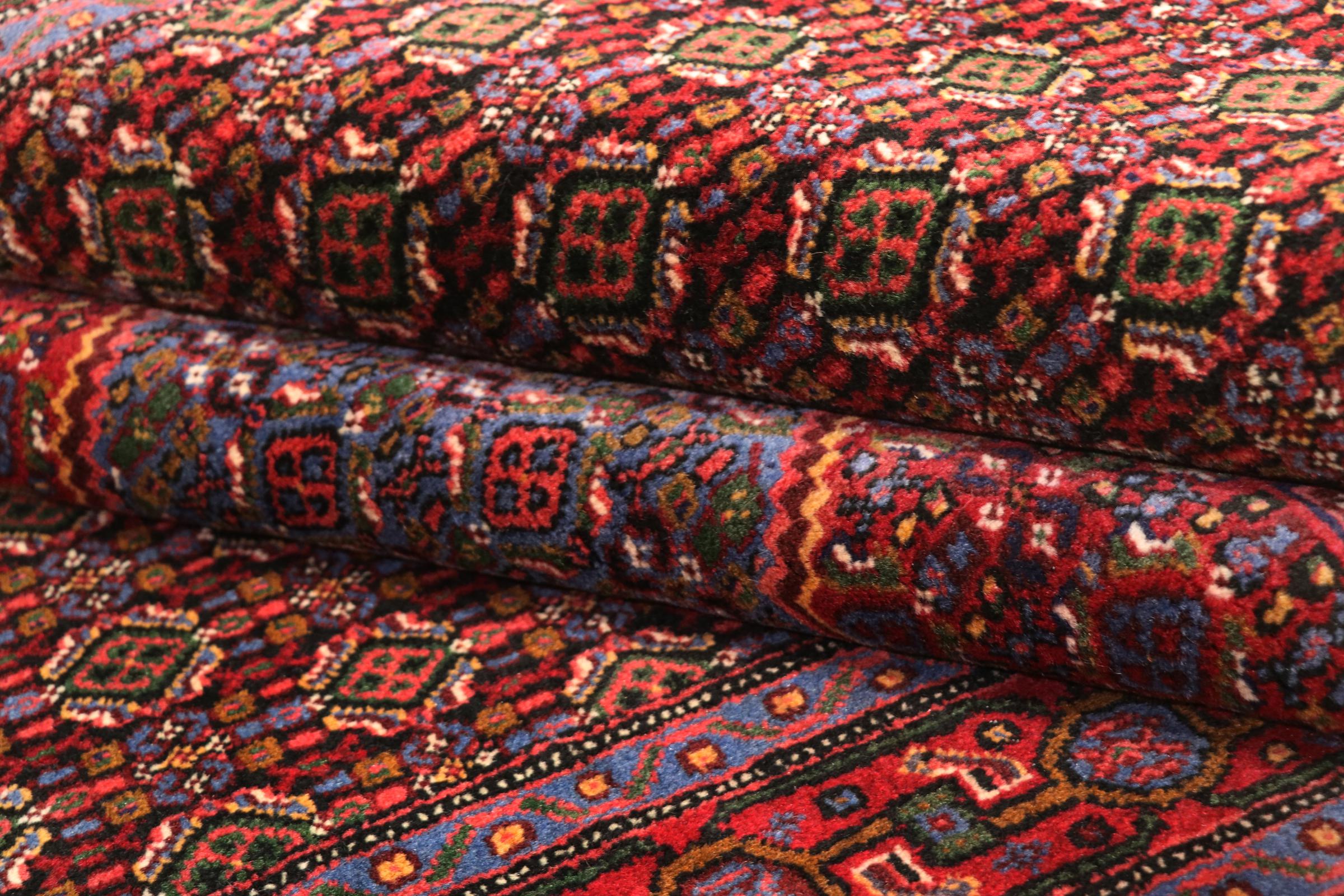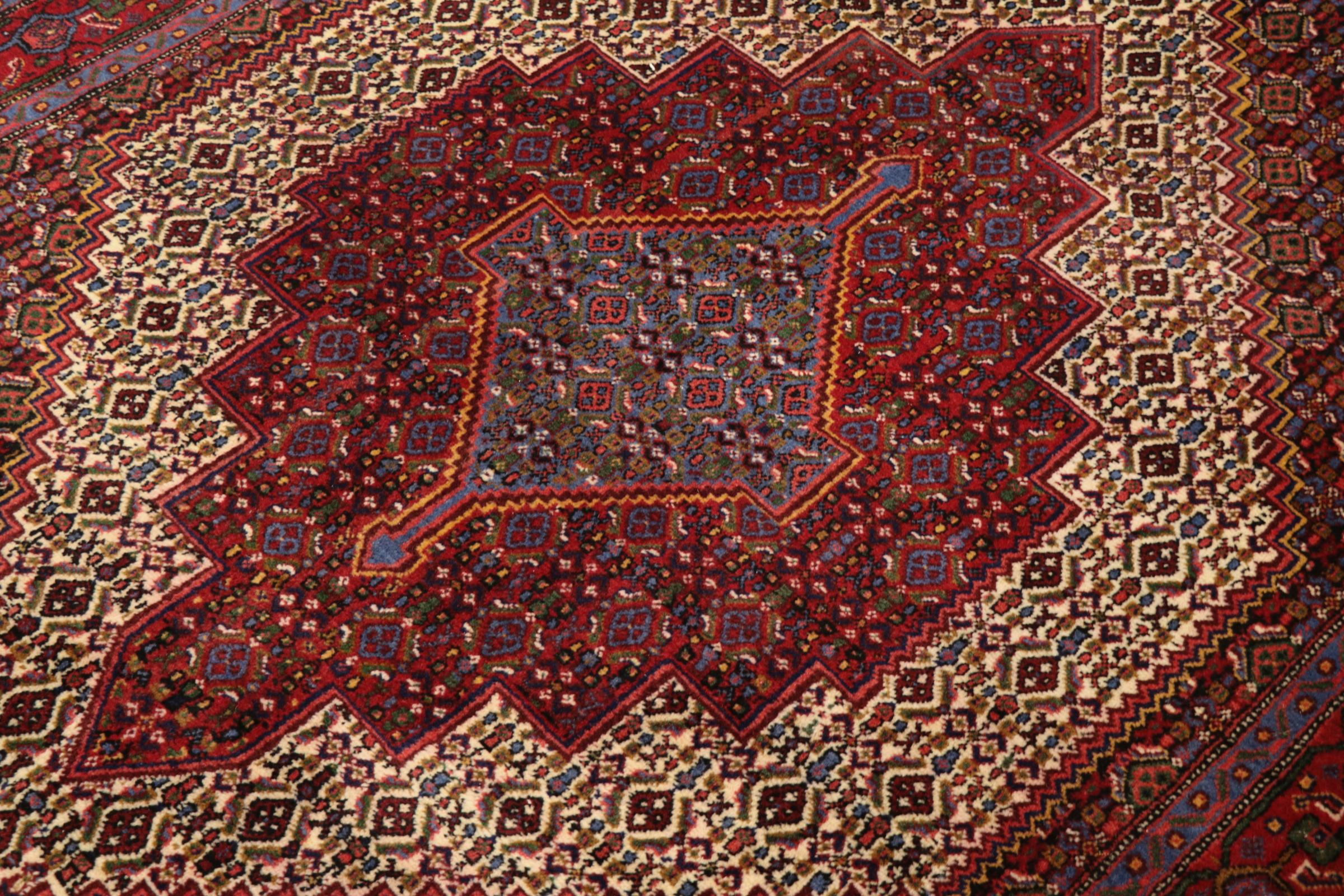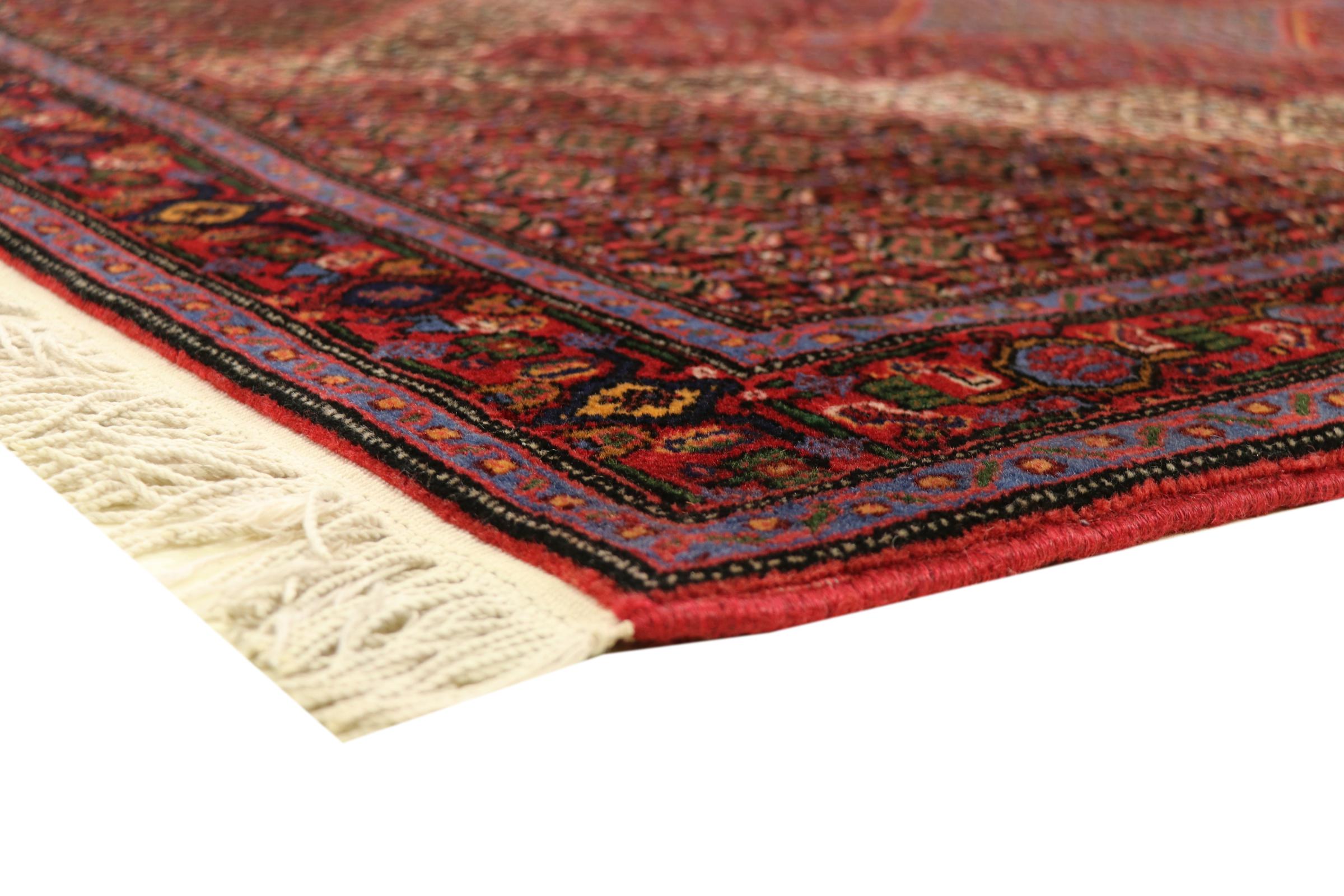 Esta alfombra Senneh se anudó en la provincia de Kurdistán, situada en la parte occidental de Irán. Esta pieza única hecha a mano está fabricada con robusta lana natural y es extremadamente resistente. Con su estructura resistente y su diseño rico en detalles, esta alfombra Senneh es adecuada como elemento de decoración impresionante y duradero en zonas de mucho tránsito, como el pasillo y el salón.