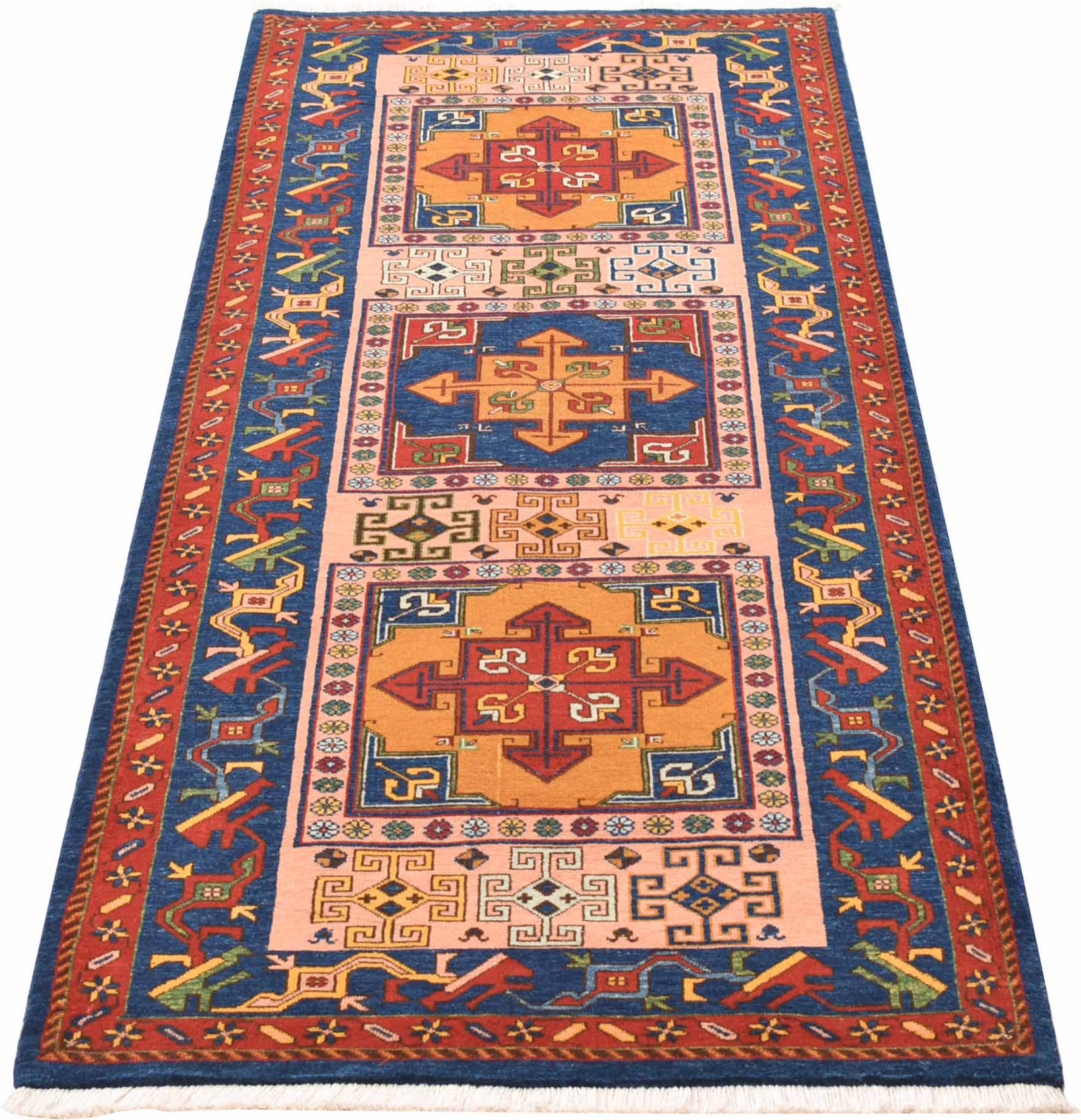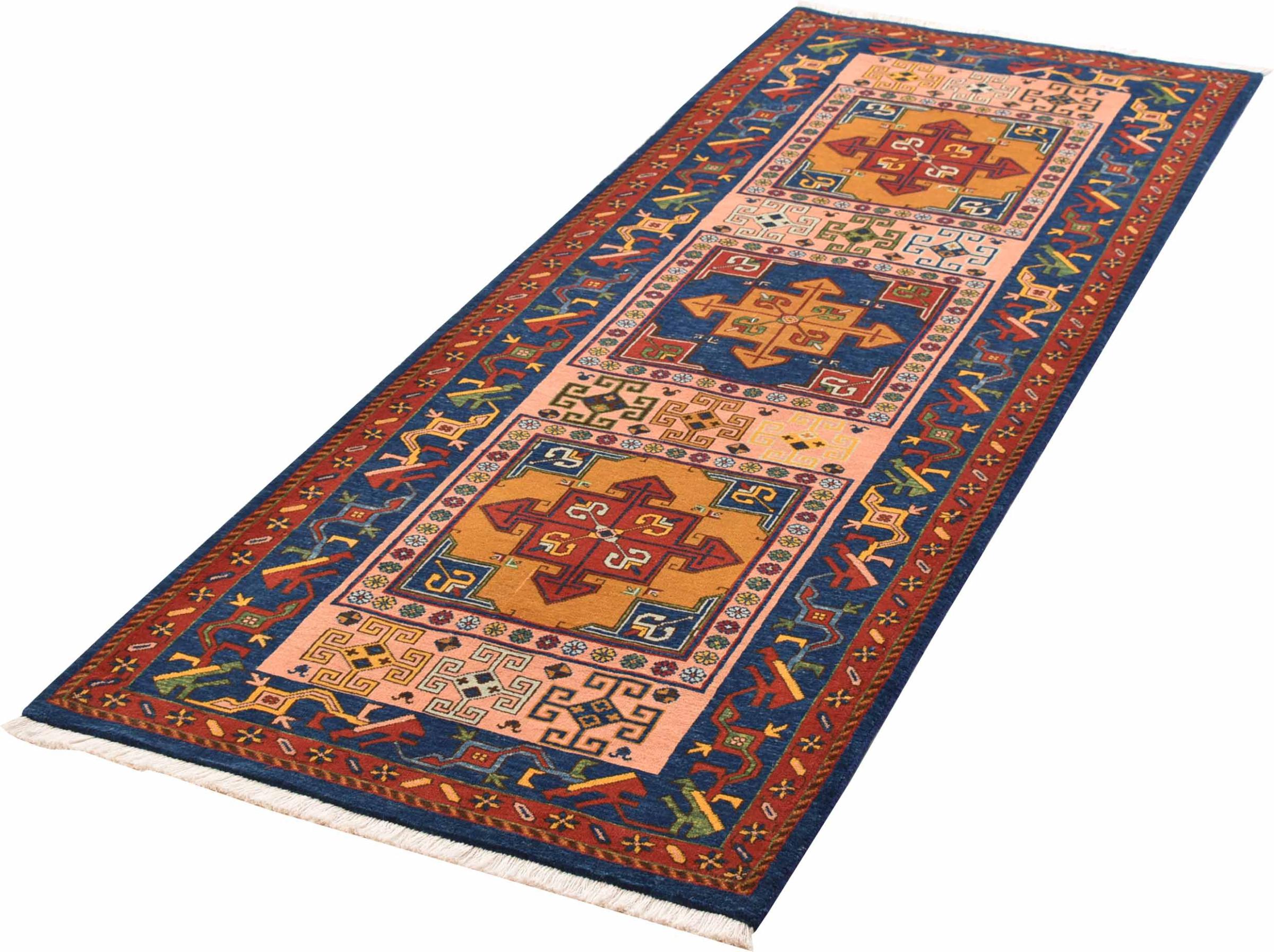 Estas alfombras kilim muestran una diferencia decisiva con las alfombras anudadas a mano - son tejidas a mano. Por lo tanto, no tienen un montón alto de lana y son a menudo más planos y más ásperos que las alfombras de lana anudada. Su fabricación es menos elaborada y por eso suelen ser mucho más baratas. Como ventaja, las alfombras de kilim son también mucho más ligeras y pueden ser colocadas por delante y por detrás. Los kilims tejidos a mano provienen originalmente de la antigua Persia y ahora también se fabrican a menudo en el Afganistán. Tienen patrones bastante simples y directos, que se deben a su técnica de tejido.