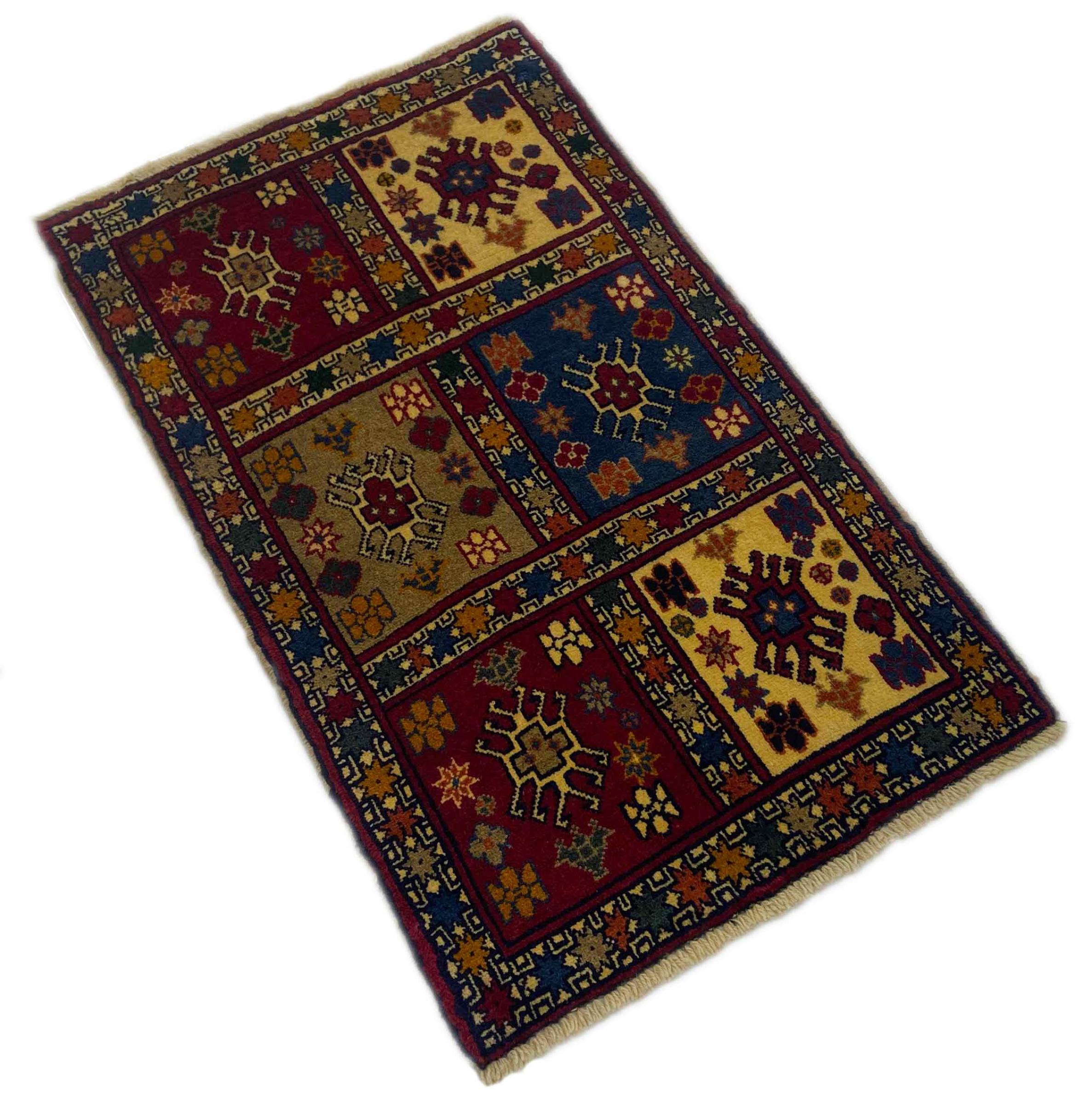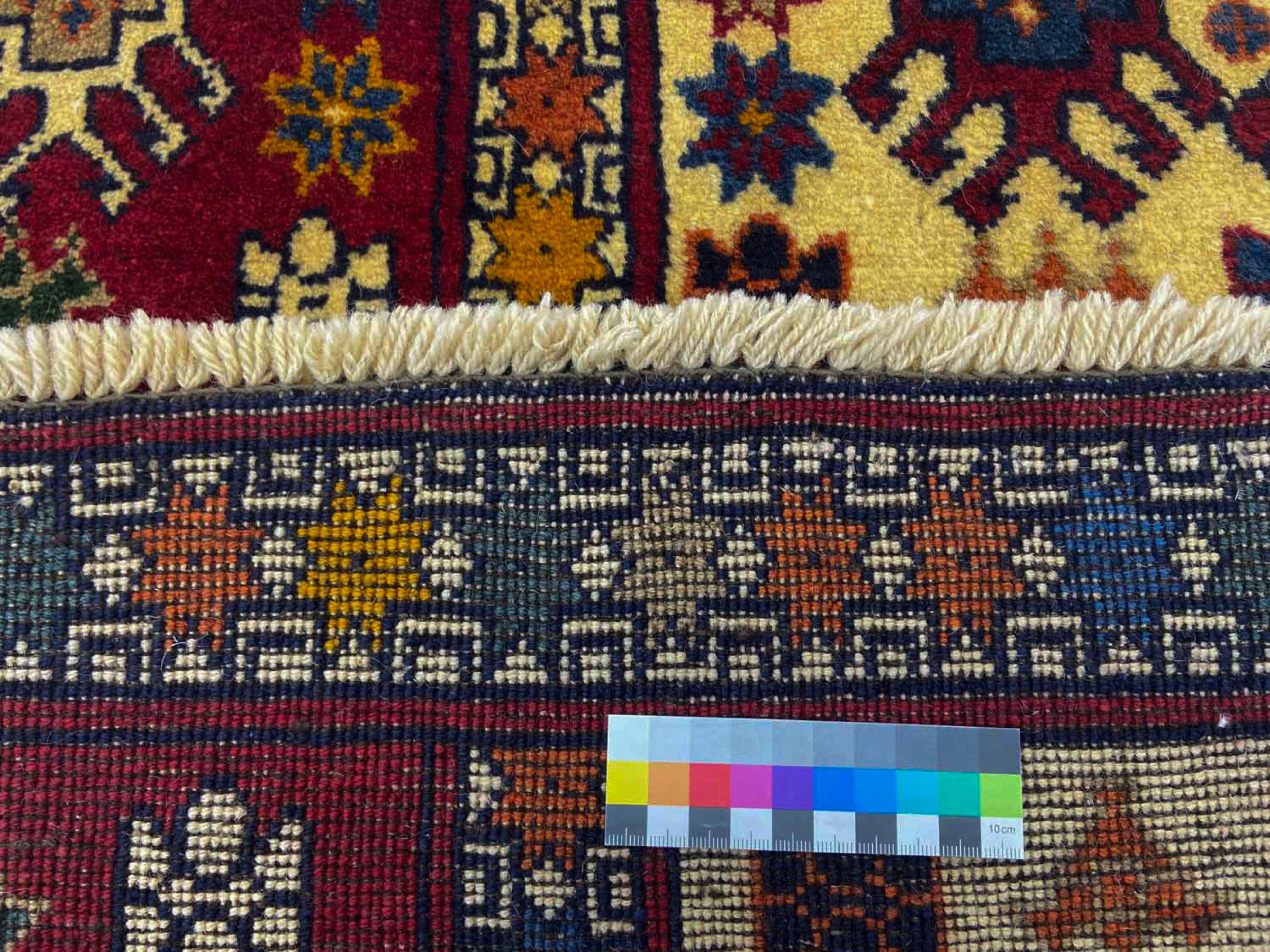 Esta alfombra pertenece a alfombras de pueblos y nómadas de Irán, antiguamente Persia. Este tipo de alfombra se anuda a mano en ciudades y pueblos más pequeños según la antigua tradición. Incluso los nómadas siguen anudando alfombras persas al aire libre. Las alfombras están anudadas sin un patrón y completamente desde la cabeza. Se caracterizan por los ornamentos clásicos, que están dispuestos en patrones rectos y geométricos. Gracias a su origen cultural-tradicional, estas alfombras tienen un carácter único que encarna la antigua Persia.