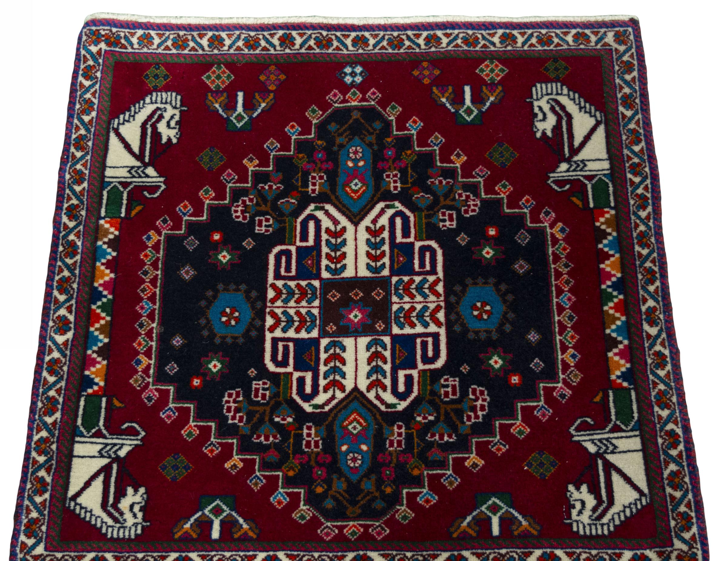 Esta alfombra pertenece a alfombras de pueblos y nómadas de Irán, antiguamente Persia. Este tipo de alfombra se anuda a mano en ciudades y pueblos más pequeños según la antigua tradición. Incluso los nómadas siguen anudando alfombras persas al aire libre. Las alfombras están anudadas sin un patrón y completamente desde la cabeza. Se caracterizan por los ornamentos clásicos, que están dispuestos en patrones rectos y geométricos. Gracias a su origen cultural-tradicional, estas alfombras tienen un carácter único que encarna la antigua Persia.