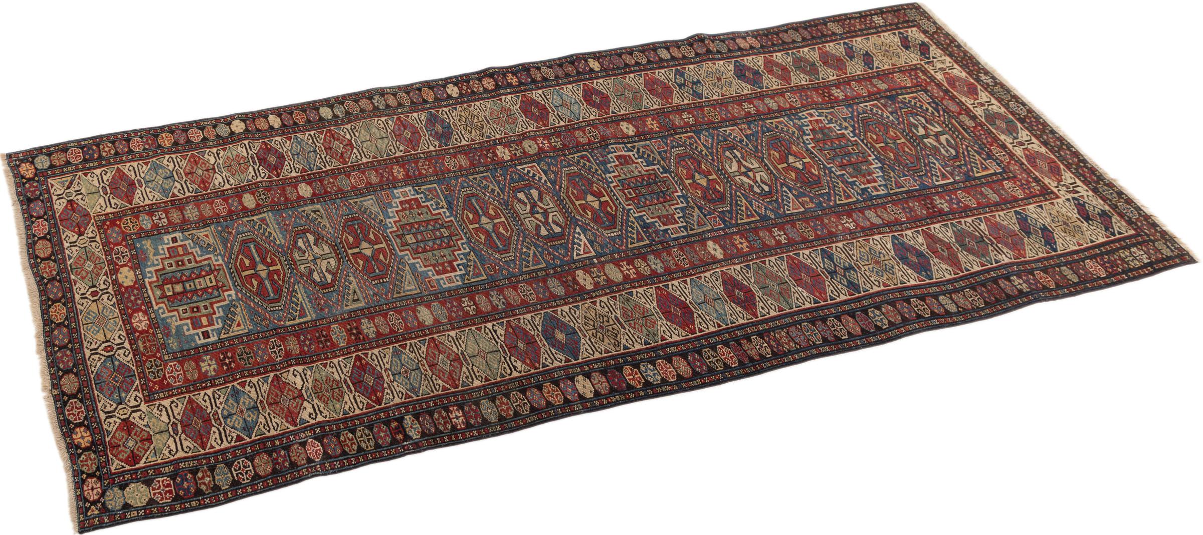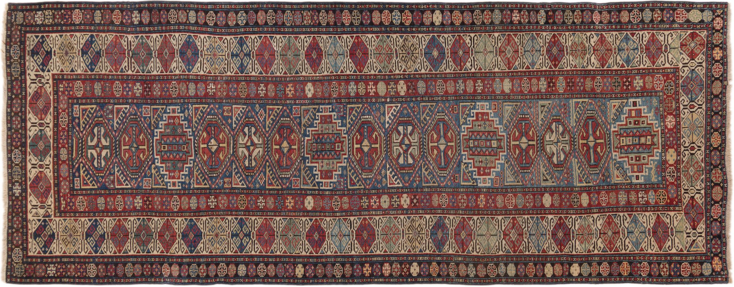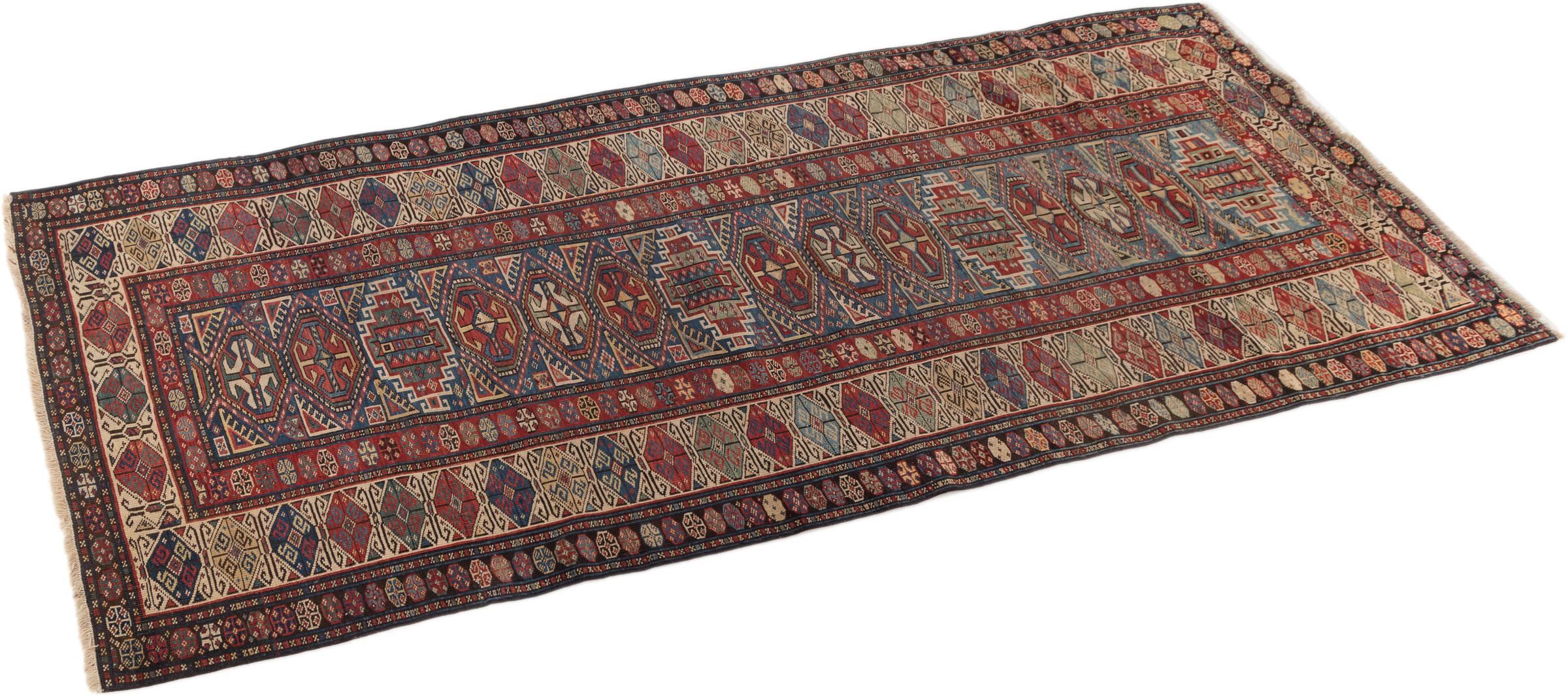 El Cáucaso se encuentra entre el Mar Negro y el Mar Caspio. Las montañas del Cáucaso son conocidas por su pintoresco paisaje y sus ciudades, que han sido moldeadas por muchas alfombras anudadas a mano de esta región. Las alfombras caucásicas y rusas son populares gracias a sus coloridos y vivos diseños. Los patrones geométricos y lineales son notablemente comunes en las alfombras orientales del Cáucaso.