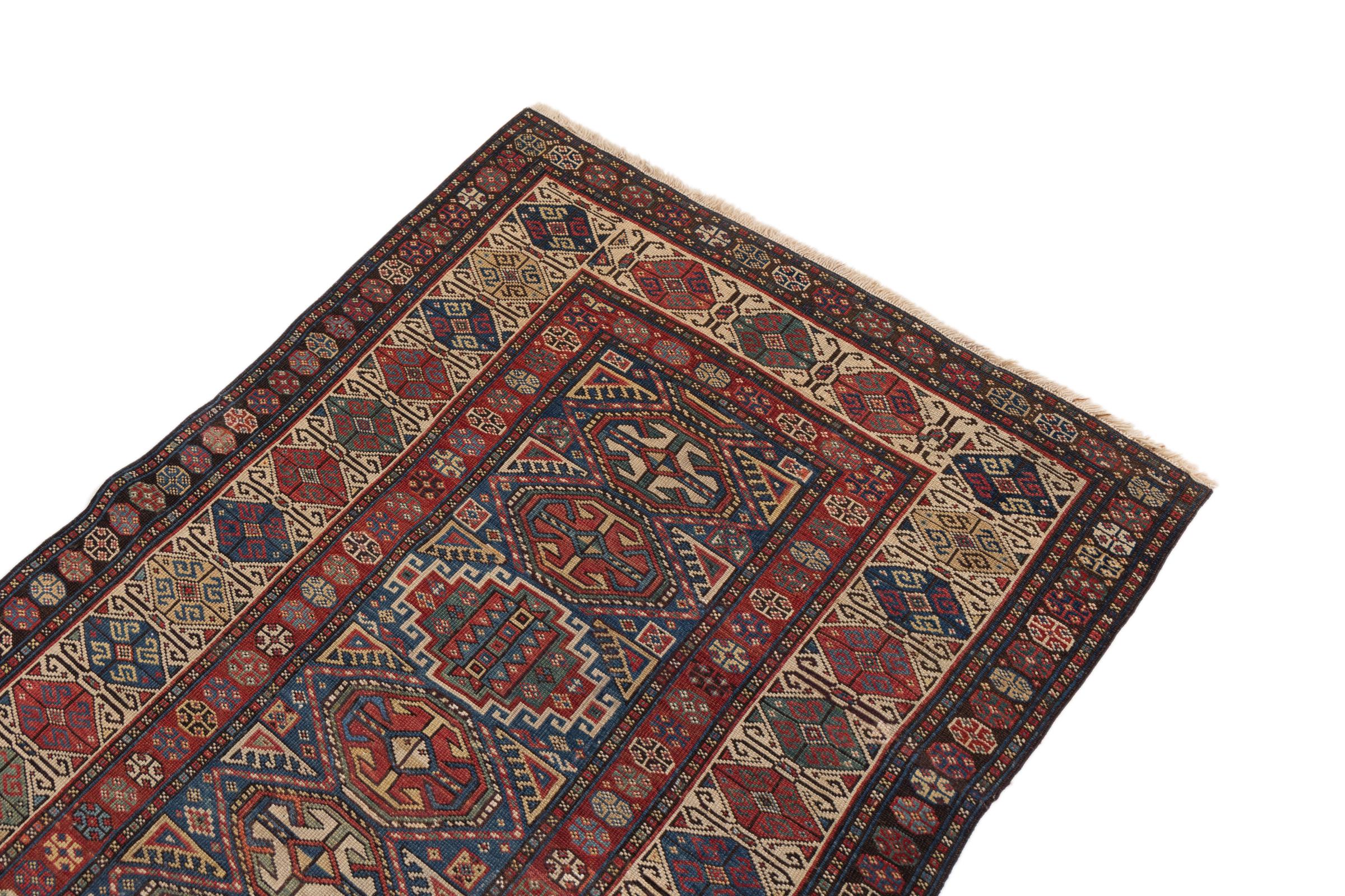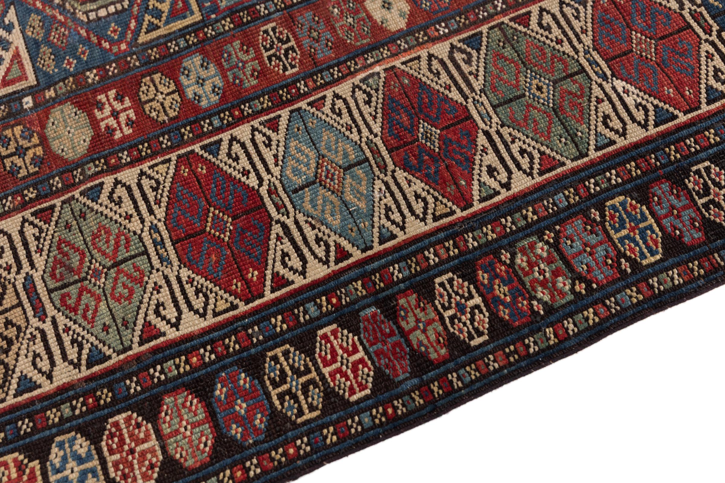 Esta alfombra Shirvan anudada a mano proveniente del Cáucaso oriental es muy robusta, y nos roba la mirada con sus hermosos colores y los elementos decorativos. Su denso anudado es el responsable de su alto rendimiento.