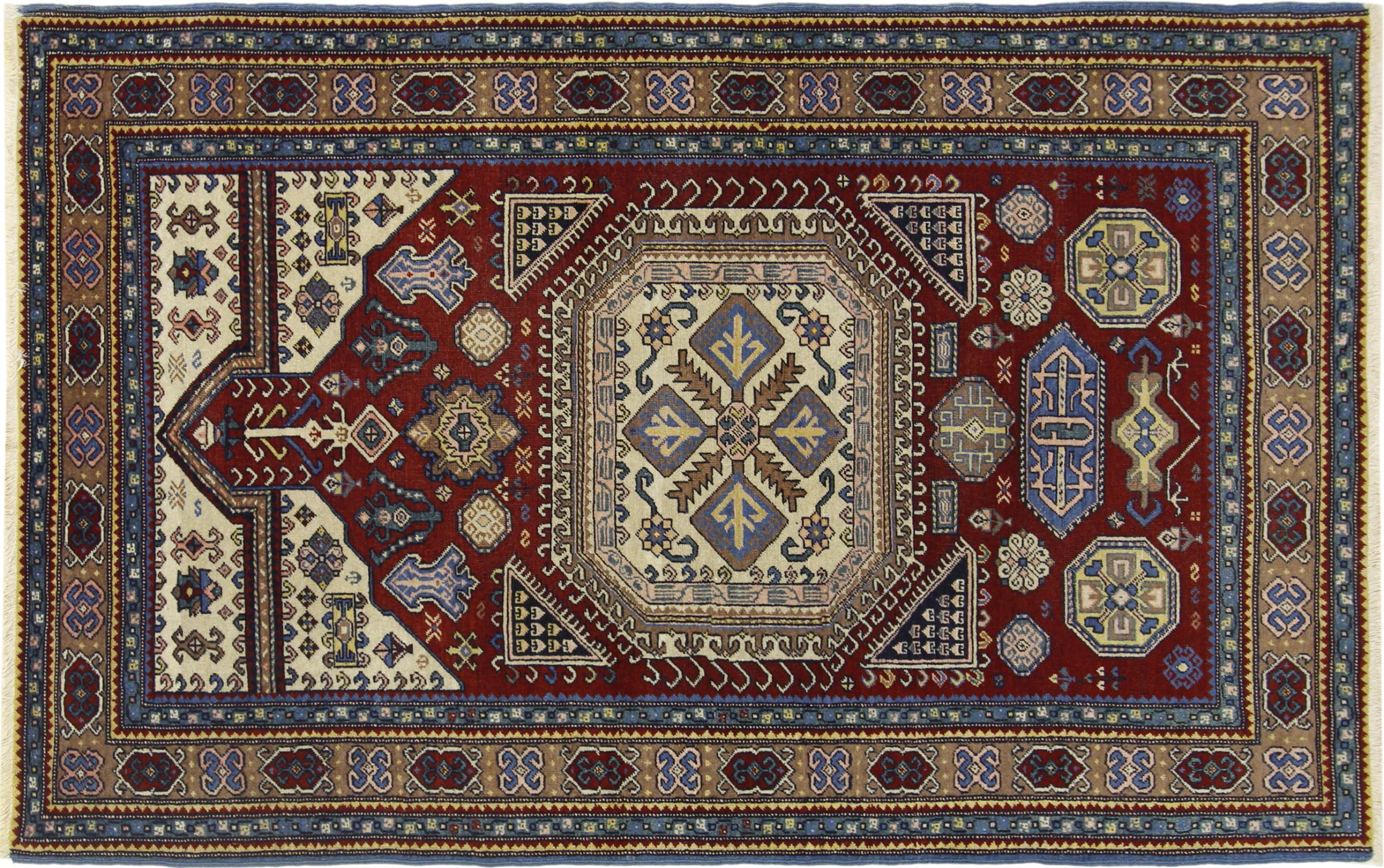 Alfombra número: 314232006973265 Tamaño: 189x123 cm Espesor: alrededor de 8 mm Nudos: 128 000 - 160 000 / m² Elaboración: Anudado a mano Crespón: Lana hilada a mano Urdimbre: Algodón Origen: Persia / Iran Edad: Nuevo Peso: alrededor de 8 kg También conocido como Afghan Shirvan, Kaukasisch Cantidad en stock: Única - Solo 1 en stock