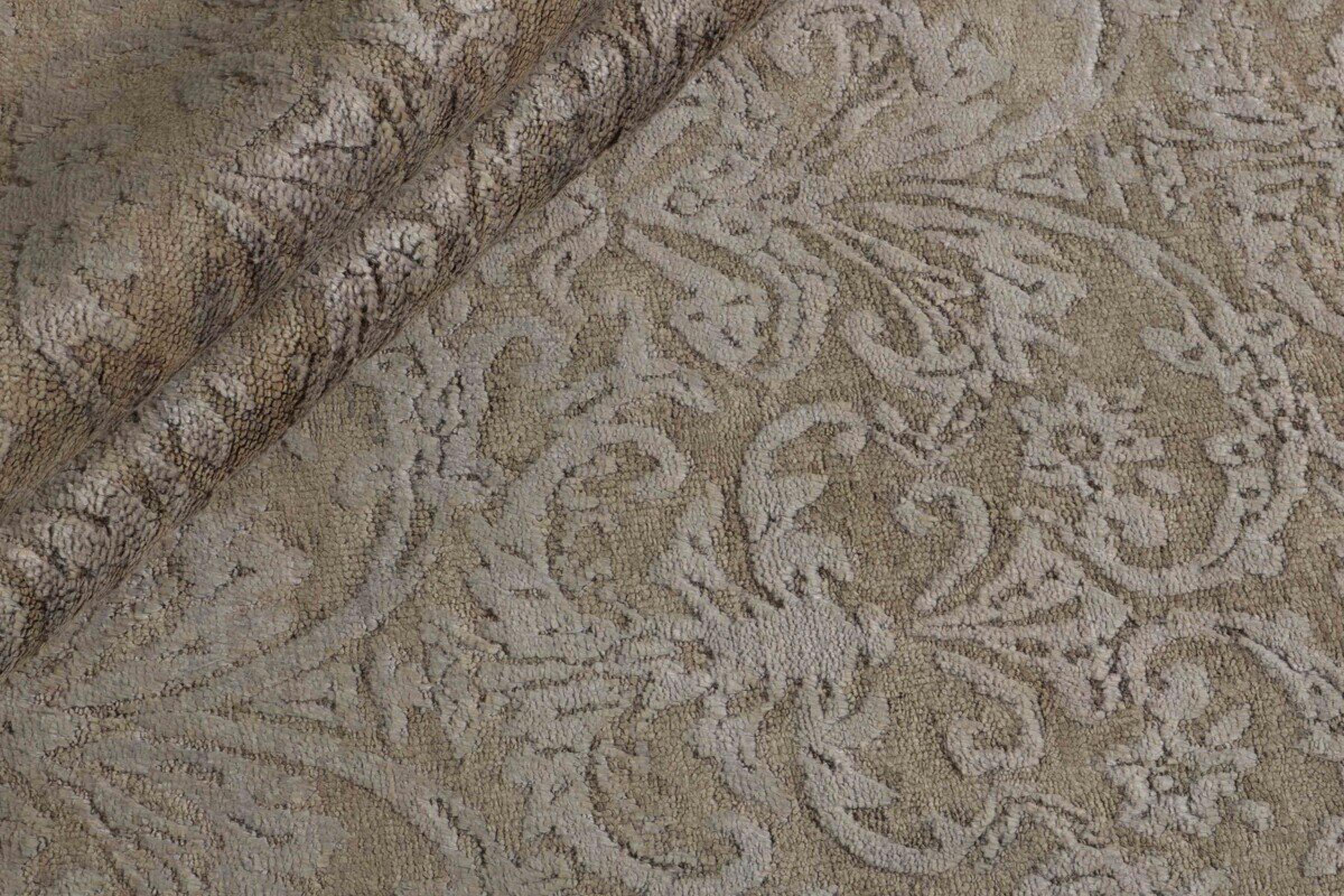 Alfombra número: 74103001612930 Tamaño: 303x203 cm Espesor: alrededor de 12 mm Nudos: 200 000 - 250 000 / m² Elaboración: Anudado a mano Crespón: Lana con seda de bambú Urdimbre: Algodón Origen: India Edad: Nuevo Peso: alrededor de 22 kg Cantidad en stock: Única - Solo 1 en stock