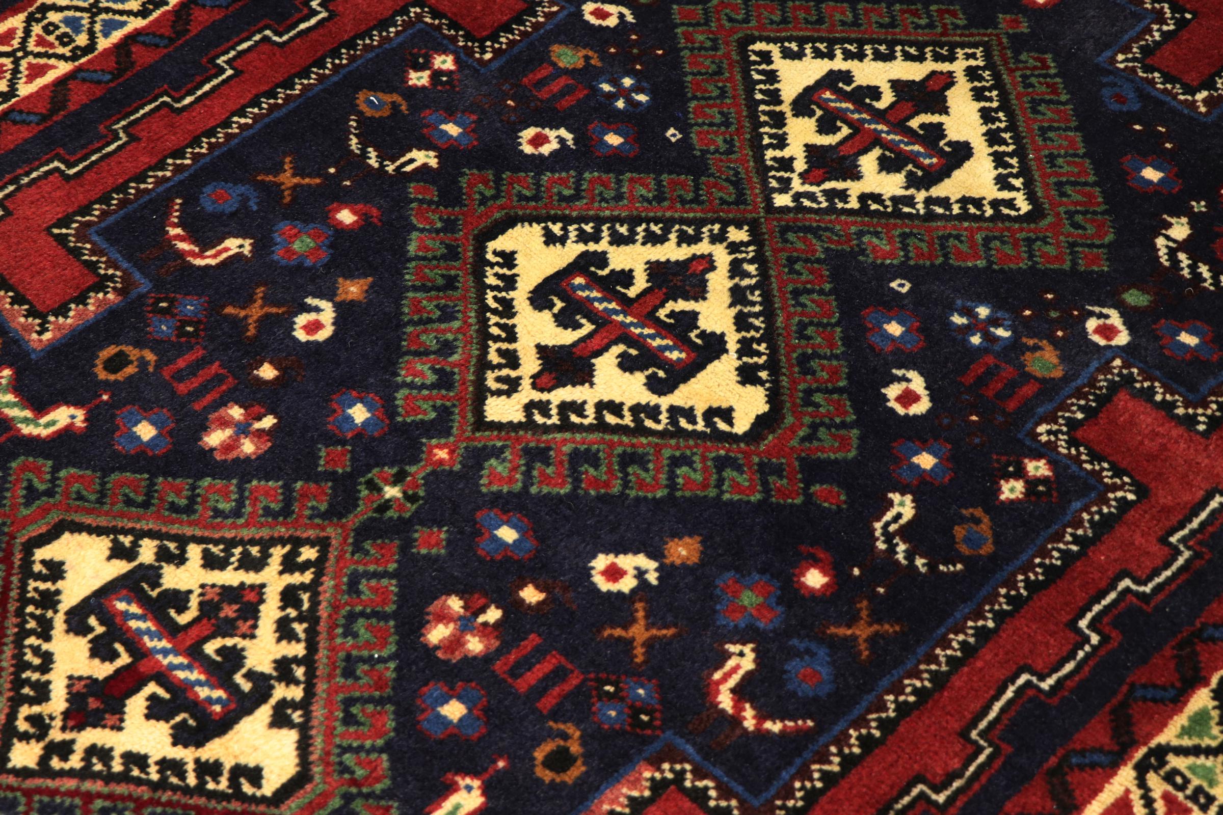 Esta alfombra pertenece a alfombras de pueblos y nómadas de Irán, antiguamente Persia. Este tipo de alfombra se anuda a mano en ciudades y pueblos más pequeños según la antigua tradición. Incluso los nómadas siguen anudando alfombras persas al aire libre. Las alfombras están anudadas sin un patrón y completamente desde la cabeza. Se caracterizan por los ornamentos clásicos, que están dispuestos en patrones rectos y geométricos. Gracias a su origen cultural-tradicional, estas alfombras tienen un carácter único que encarna la antigua Persia.