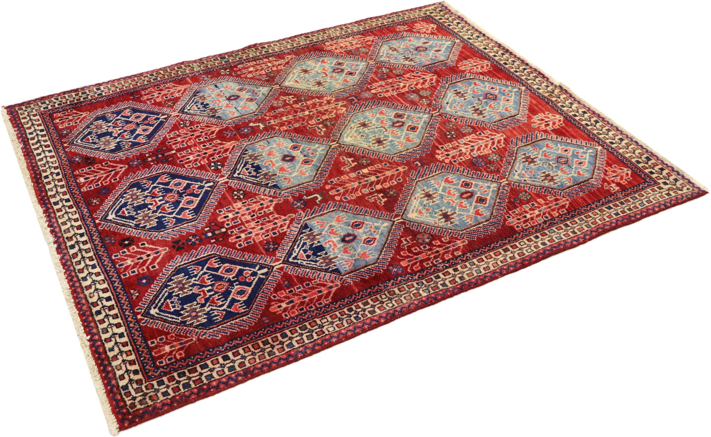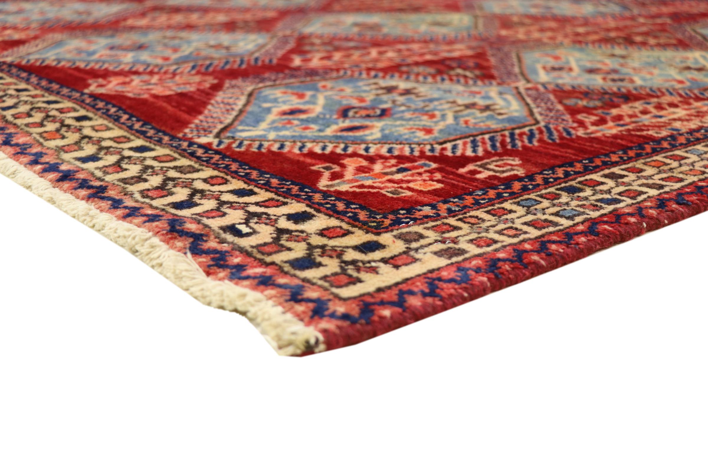 Esta alfombra pertenece a alfombras de pueblos y nómadas de Irán, antiguamente Persia. Este tipo de alfombra se anuda a mano en ciudades y pueblos más pequeños según la antigua tradición. Incluso los nómadas siguen anudando alfombras persas al aire libre. Las alfombras están anudadas sin un patrón y completamente desde la cabeza. Se caracterizan por los ornamentos clásicos, que están dispuestos en patrones rectos y geométricos. Gracias a su origen cultural-tradicional, estas alfombras tienen un carácter único que encarna la antigua Persia.