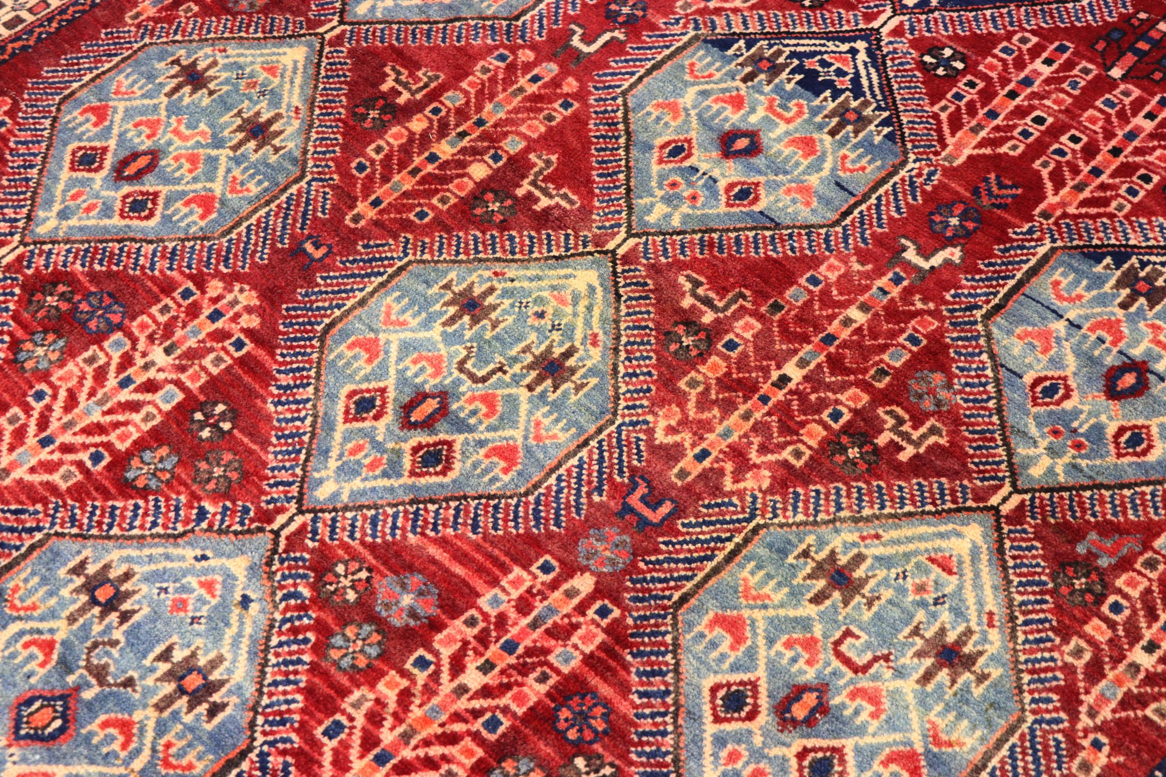 Esta alfombra, anudada por los nómadas Afshar, cautiva con sus colores rojos. Una auténtica alfombra persa de Afshar le otorga a todo lugar un toque oriental muy especial. El diseño geométrico atrae a cualquier amante de las alfombras persas. La lana utilizada en el terciopelo es de alta calidad y puede captar la atención de cualquier amante de las hermosas alfombras orientales. Adquiera hoy mismo esta hermosa alfombra persa antes de que se agote.